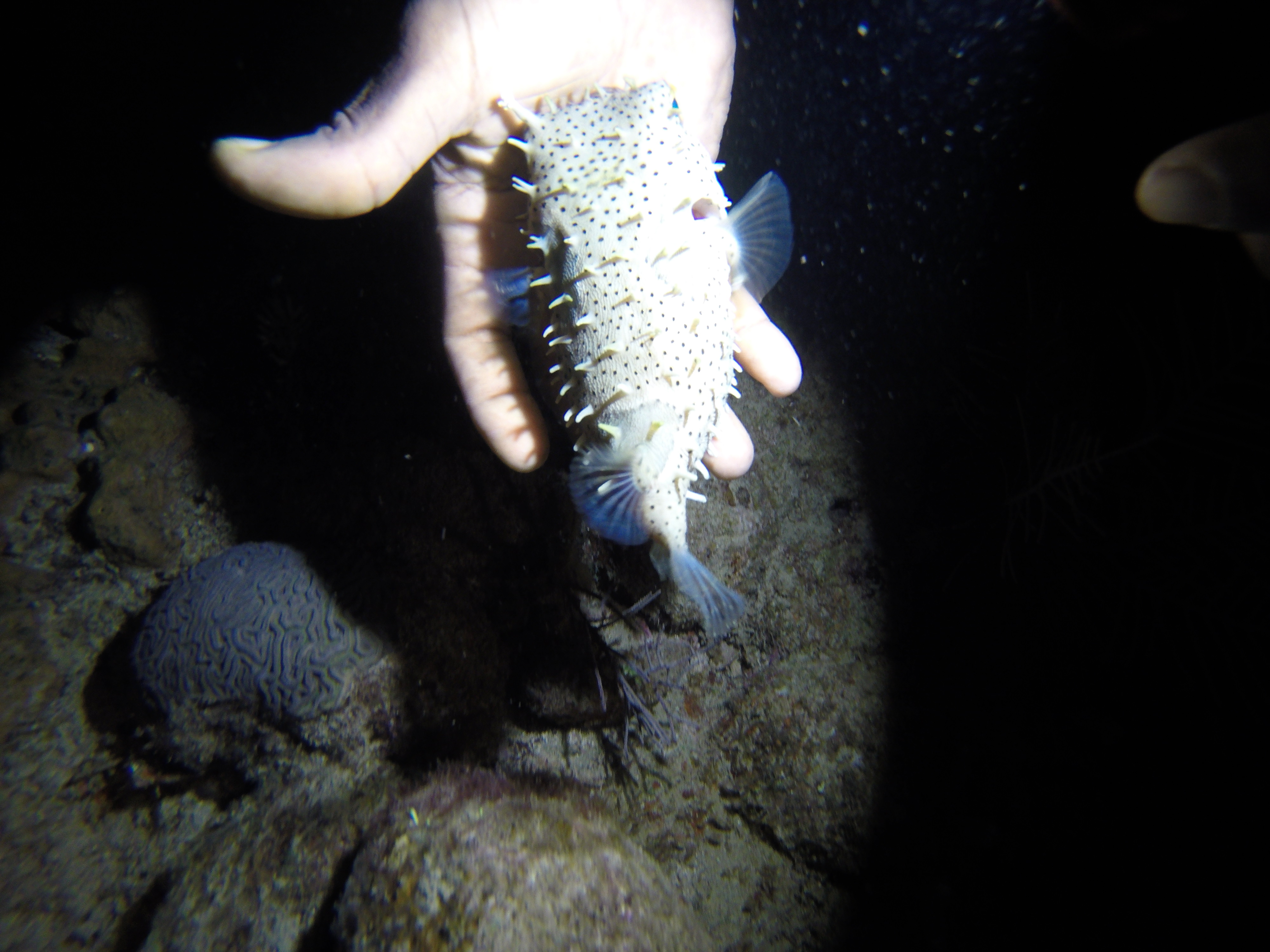 Am interessantesten war für mich das Nachttauchen. Bei völliger Dunkelheit ging es mit Taschenlampe ausgerüstet zurück ins Riff. Unter dem Licht der Lampe erscheinen viele Farben viel intensiver. Besonders die unter Sonnenlicht fehlenden Rottöne kehren zurück. Witzig sind auch die Fische, die am Boden schlafen. Viele sind wirklich im Tiefschlaf. Man kann sie anfassen und könnte sie sogar hochheben. Andere Meeresbewohner jedoch werden gerade dann wach, wenn die Sonne untergegangen ist. Zum Beispiel Muränen und große Hummer, aber ebenso kleine Quallen, die leuchten, wenn man sie berührt.