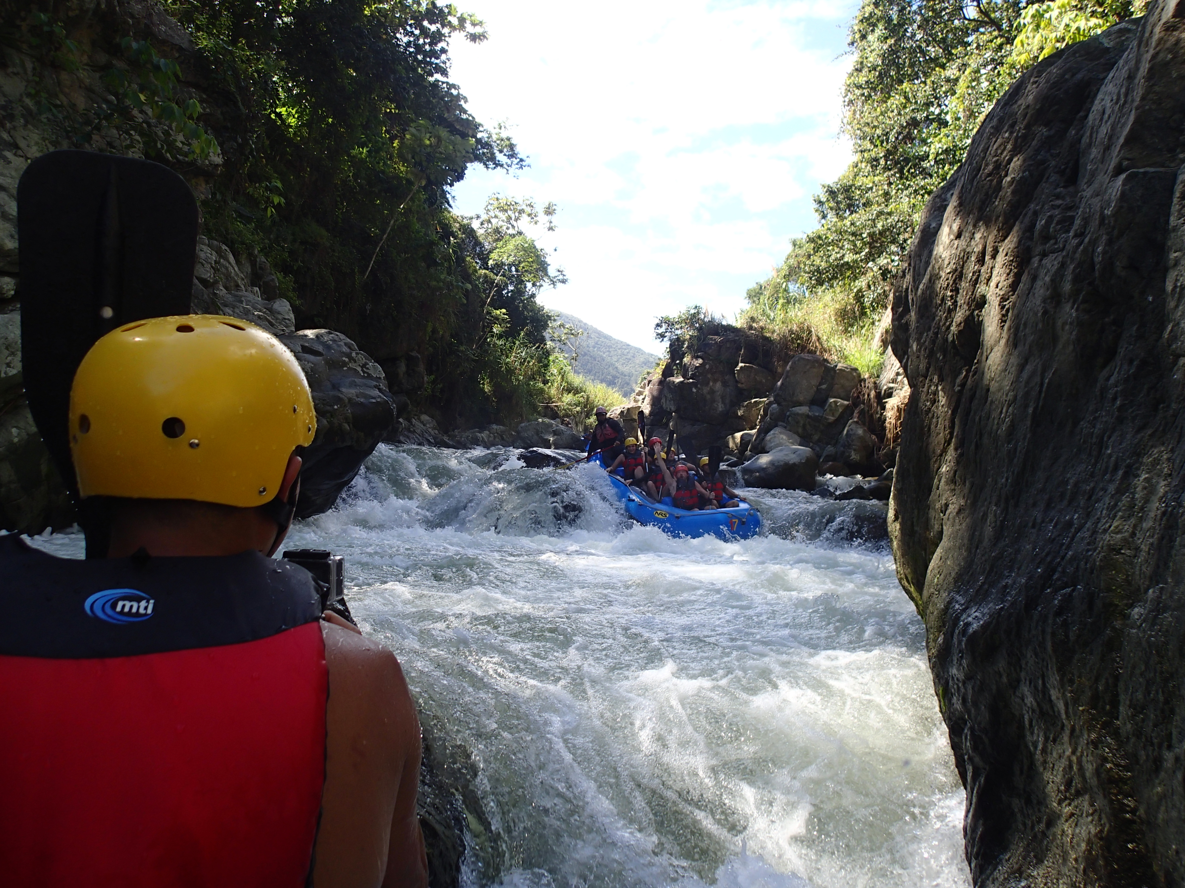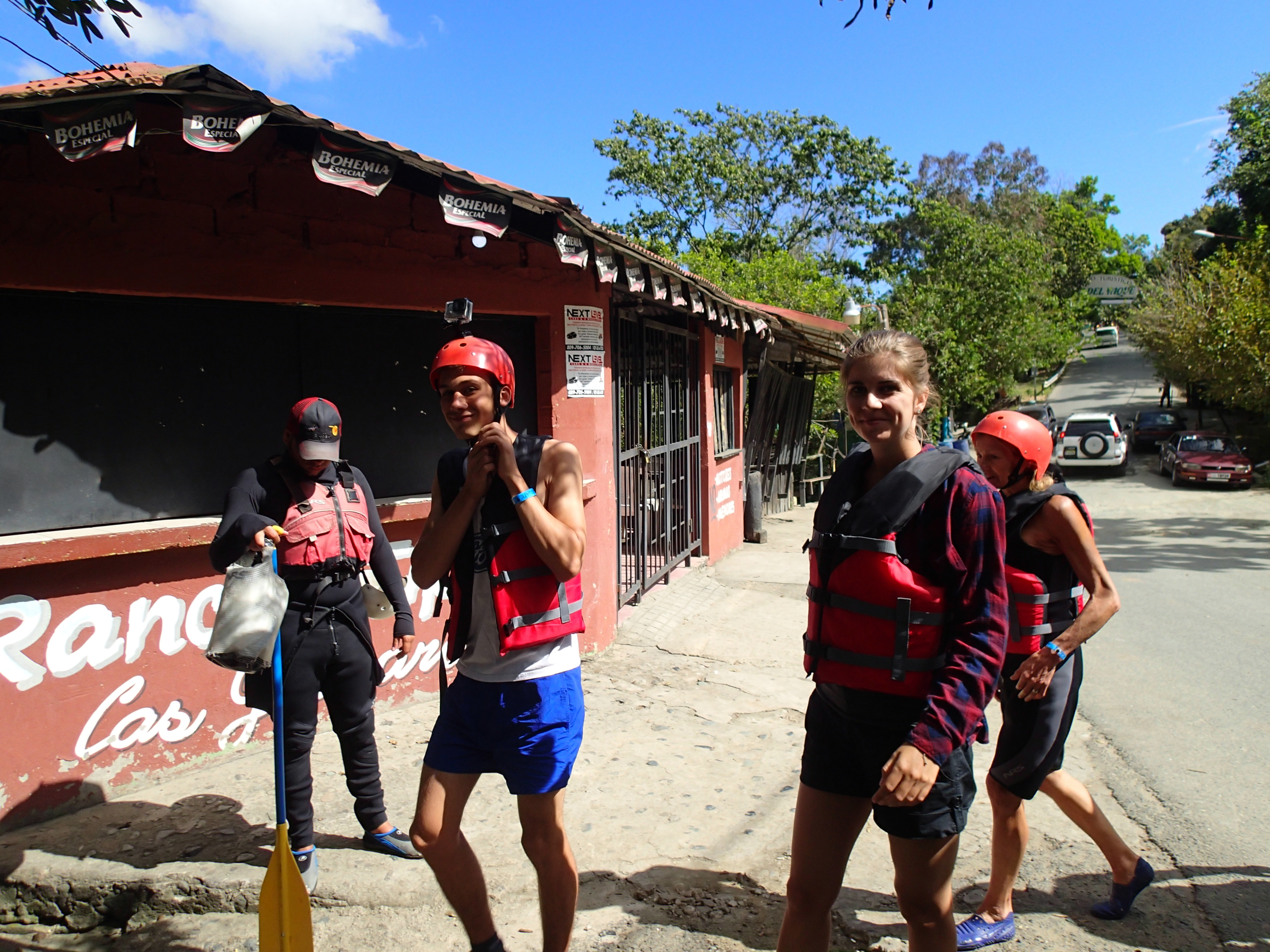 Auch die Woche, die seit meinem letzten Artikel vergangen ist, zog in schnellem Tempo an uns vorbei. Vor wenigen Tagen waren wir noch in Jarabacoa. Vom Paragliding habe ich bereits berichtet, aber auch in den Tagen danach haben wir sehr viel erlebt. Jarabacoa ist einer dieser Orte, in denen immer etwas los ist. Direkt am Tag nach unserem Rundflug haben wir zum Beispiel eine weitere, für mich komplett neue Sportart ausprobiert: das Rafting. In Jarabacoa treffen sich mehrere Flüsse, die in den nahegelegenen Bergen entspringen. Der „Rio Yaque del Norte“ ist einer davon, und nur wenige Kilometer vom Ort entfernt fließt er mit vielen Stromschnellen durch ein steiles Tal. Der Fluss hat hier eine sehr starke Strömung, und fällt über viele Stufen immer weiter ab. Ein idealer Fluss zum Raften! Wir haben an einer Tour teilgenommen, bei der man den Fluss in einem Schlauchboot hinabfährt. Mit einem lokalen Guide und drei weiteren Teilnehmern waren wir sechs Leute in einem Boot. Jeden Tag fahren mehrere Boote den Fluss hinab, aber alle in gutem Abstand zueinander, sodass man sich sehr gut auf den Fluss konzentrieren kann. Und das ist auch sehr wichtig, denn oft waren die Stromschnellen so stark, dass das ganze Boot in wilder Fahrt einfach mitgerissen wurde. An manchen Stellen konnte man schon fast von Wasserfällen sprechen, die wir hinabgestürzt sind. Wir haben zwar alle kräftig mitgepaddelt, aber oft waren wir einfach dem Fluss und unserem erfahrenen Guide (gleichzeitig Steuermann) ausgeliefert, der uns einigermaßen sicher durch die Wassermassen navigierte. Jedoch ohne vermeiden zu können, dass eine Mitfahrerin in einer starken Stromschnelle über Bord ging. Das Raften war ein großes Abenteuer für mich. Traurigerweise war genau an diesem Tag (mal wieder!) meine GoPro ausgefallen, sodass ich nicht filmen oder fotografieren konnte. Als Andenken habe ich mir den vom Touranbieter aufgenommenen Film gekauft. Hier auf dem Blog müsst ihr aber leider mit den wenigen Fotos vorliebnehmen, die eine Amerikanerin in unserem Boot aufgenommen hat. Natürlich meistens nur an den ruhigeren Stellen. Ihr müsst mir also glauben, wenn ich sage, dass es ein aufregendes Erlebnis war.