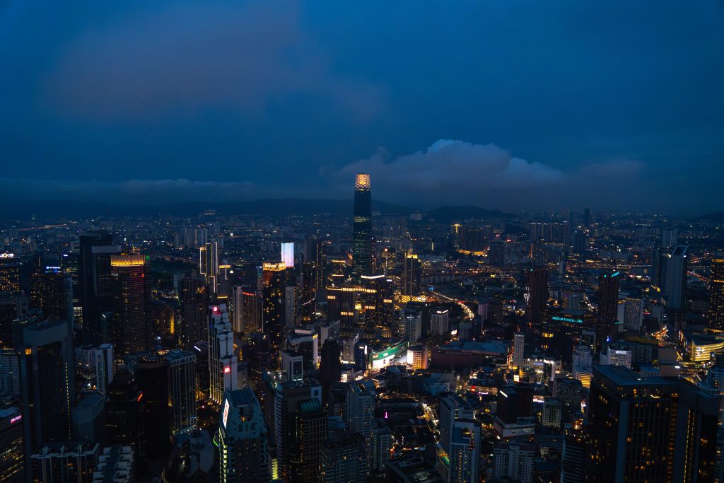 Am Abend, bei Dämmerung, besuchten wir außerdem den Fernsehturm der Stadt. Von der Aussichtsplattform im Freien bot sich ein weiterer spannender Blick auf die Stadt, im schönen Licht der blauen Stunde.