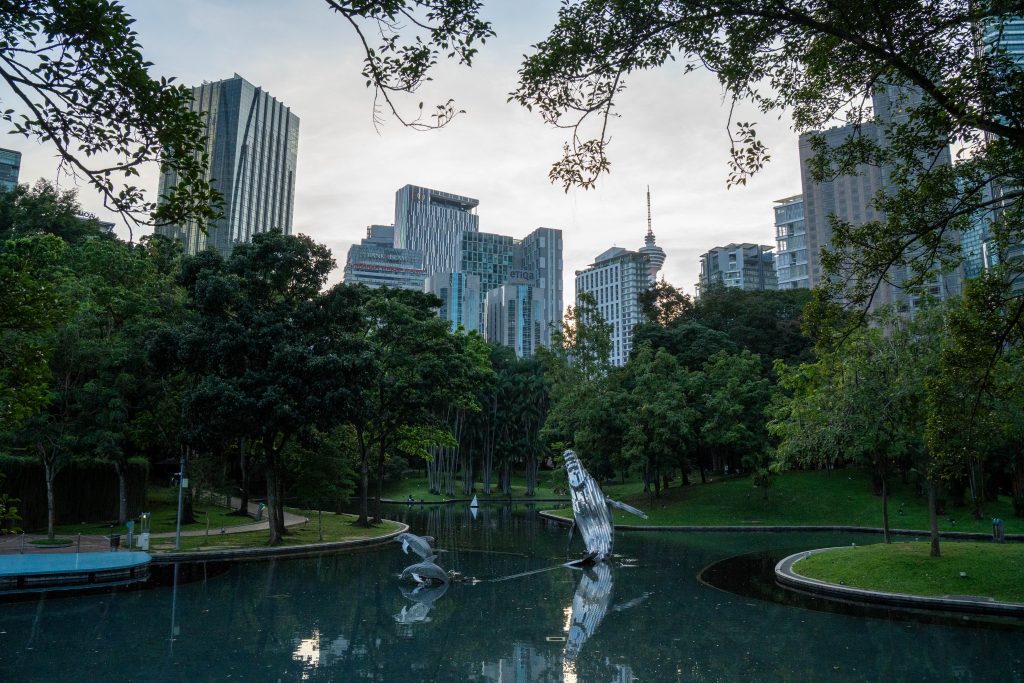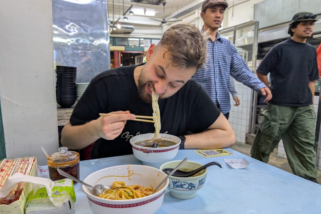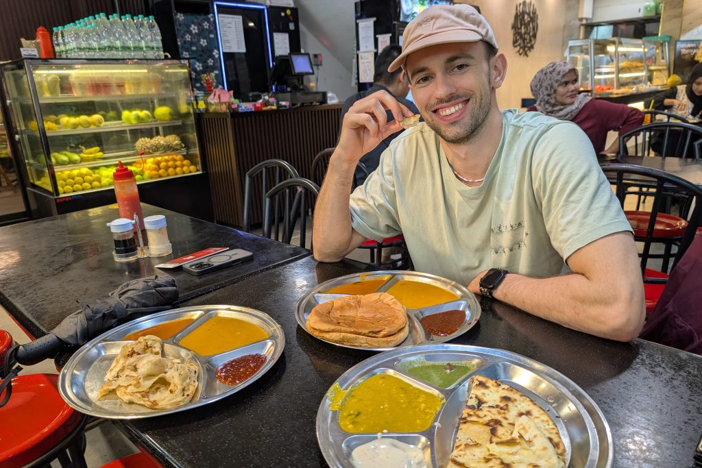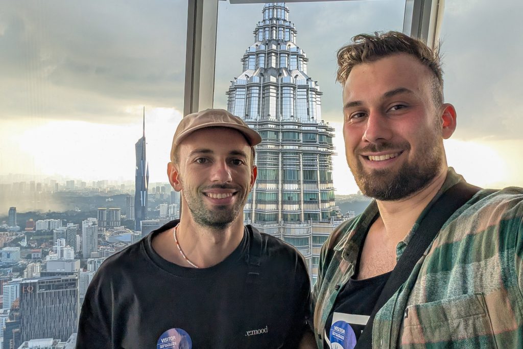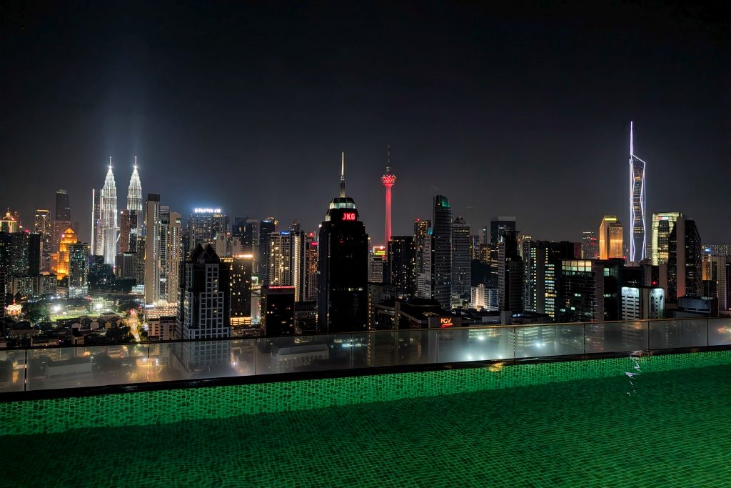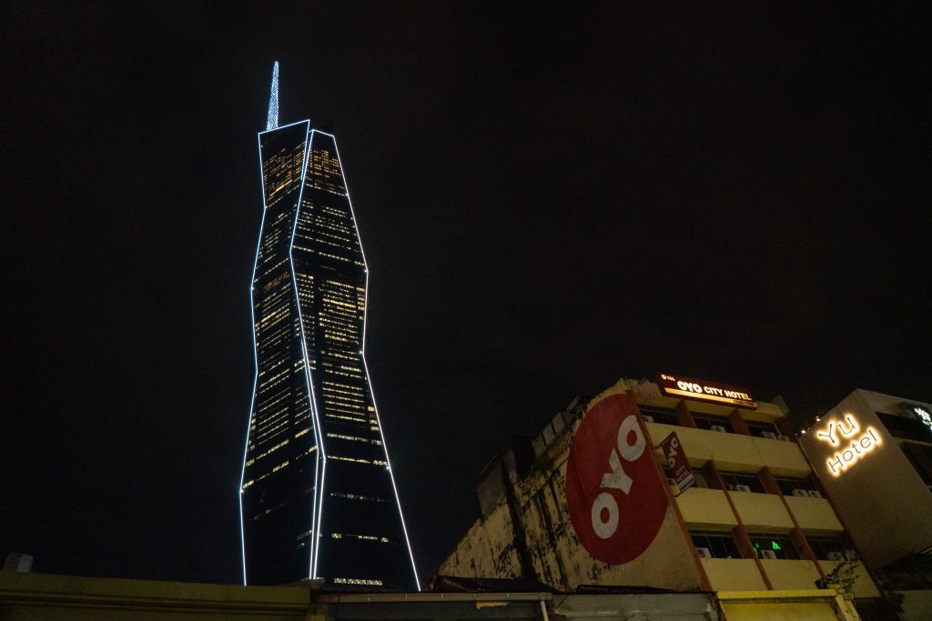 Per Taxi ging es zu Eric. Er wohnt in einem riesigen Hochhaus am Rande des Zentrums von Kuala Lumpur. Seit einigen Wochen arbeitet er für eine deutsche Produktionsfirma und dreht Filme in Südostasien, hauptsächlich für Galileo. Kurz nach meiner Ankunft gingen wir draußen essen. Und weil wir beide noch Energie hatten, wanderten wir bei Nacht durch die Stadt. Ich bekam einen ersten Eindruck von der gewaltigen Metropole. Dutzende hell erleuchtete Wolkenkratzer strecken sich in den dunklen Nachthimmel. Ikonisch sind die Petronas Twin Towers. Die detailreichen Glasriesen sind die höchsten Zwillingstürme der Welt. Und nicht weit entfernt steht das Hochhaus Merdeka 118, das zweithöchste Gebäude der Welt. Kuala Lumpur bei Nacht ist eine beeindruckende Kulisse voller greller Lichter.