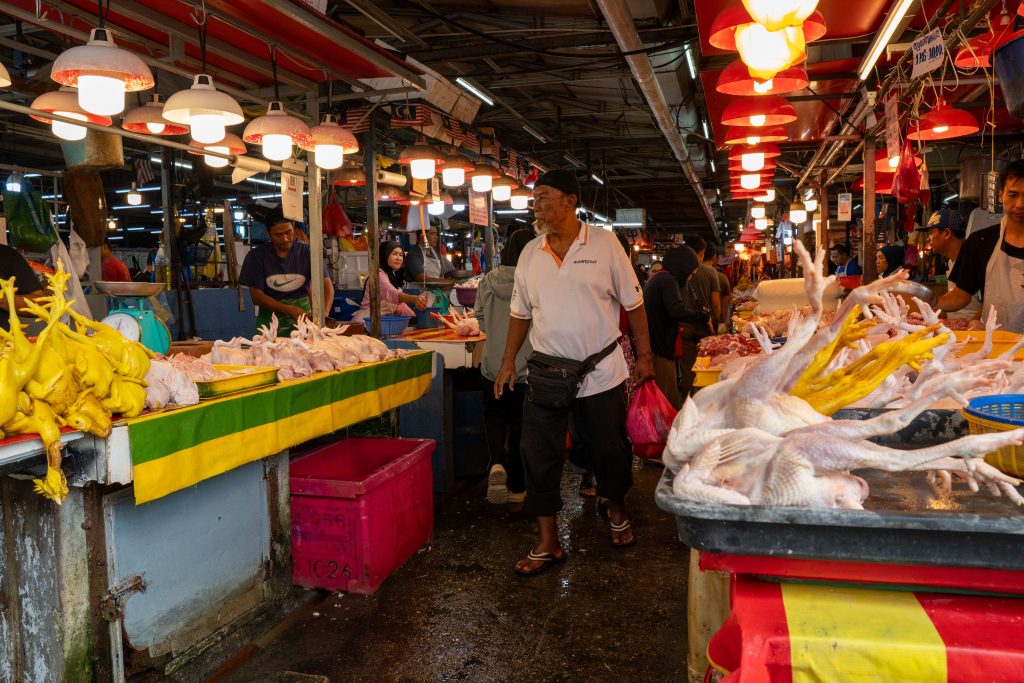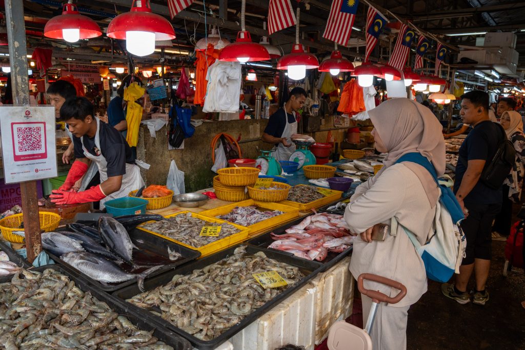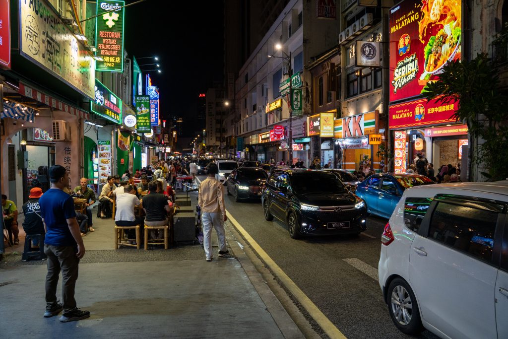 Bei Nacht erkundeten wir die Chinatown. In diesem Viertel leben wohl nicht nur Chinesen, sondern alle möglichen Ausländer, erzählte uns ein Taxifahrer. Er dagegen wohnt in einer Nachbarschaft, in die nur Einheimische ziehen dürfen. Viele Malaysier sind muslimisch. Doch in Chinatown spielt Religion kaum eine Rolle. Es gibt einige Bars und auf dem Grill liegt Schweinefleisch.