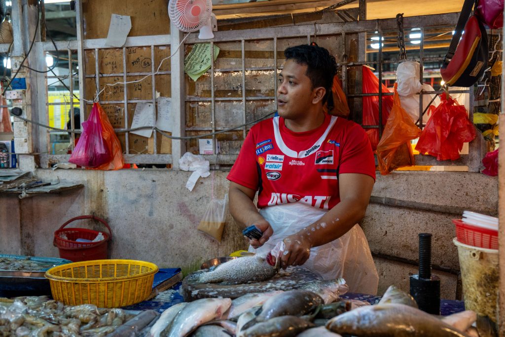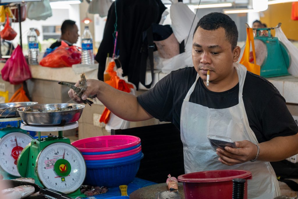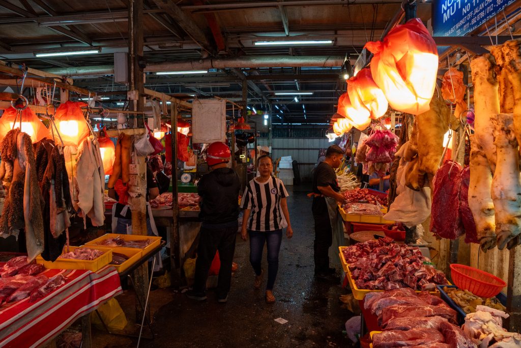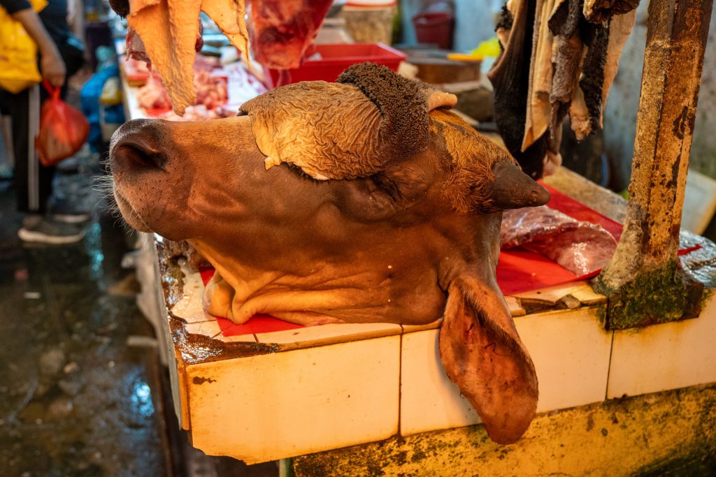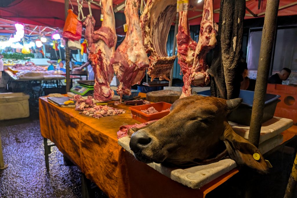 Ansonsten kann man unsere Unternehmungen als beinahe alltäglich bezeichnen. So erkunde ich eine neue Stadt ohnehin am liebsten. Wir besuchten einen lokalen Markt, wo es Fleisch, Fisch und Gemüse zu kaufen gab. Die Waren lagen meist ungekühlt auf großen Tischen. Hunderte Marktgänger streiften durch die engen Gassen zwischen den Ständen und bedienten sich in den Auslagen der Händler. Hier und da wurden die Hackmesser gezückt und ganze Hühner oder Fische zerlegt. Viele der Händler hatten lässig die Zigarette im Mund, während sie die Fleischwürfel in altes Zeitungspapier wickelten. Wir wateten durch Rinnsale aus Spülwasser und Essensresten, die langsam in die offenen Abflüsse mäanderten.