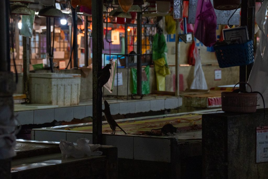 Dieser Markt, der sich bestimmt kaum von anderen in der Stadt unterscheidet, hatte zwei Gesichter. Denn nachts, wenn alle Menschen verschwunden waren, krochen Hunderte Ratten aus den Rohren. Die kleinen Nager flitzten überall herum: Sie fraßen die Reste auf dem Boden und den abgeräumten Tischen, zankten sich um den herumliegenden Müll und kletterten sogar bis ins Dach hinauf. Frühmorgens flüchteten sie zurück in die Kanalisation und die Händler breiteten erneut ihre Ware auf den Tischen aus.