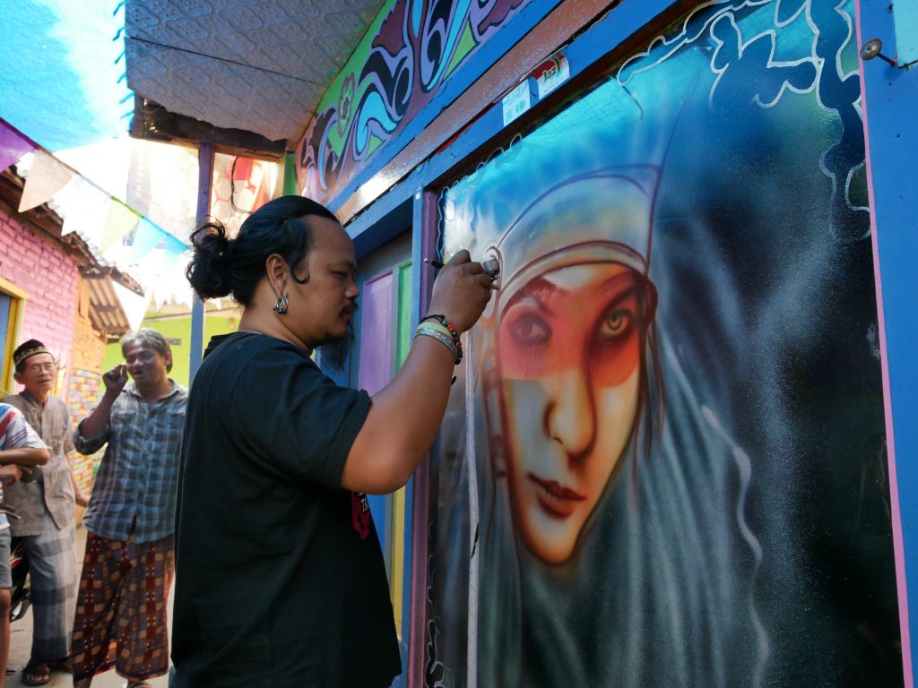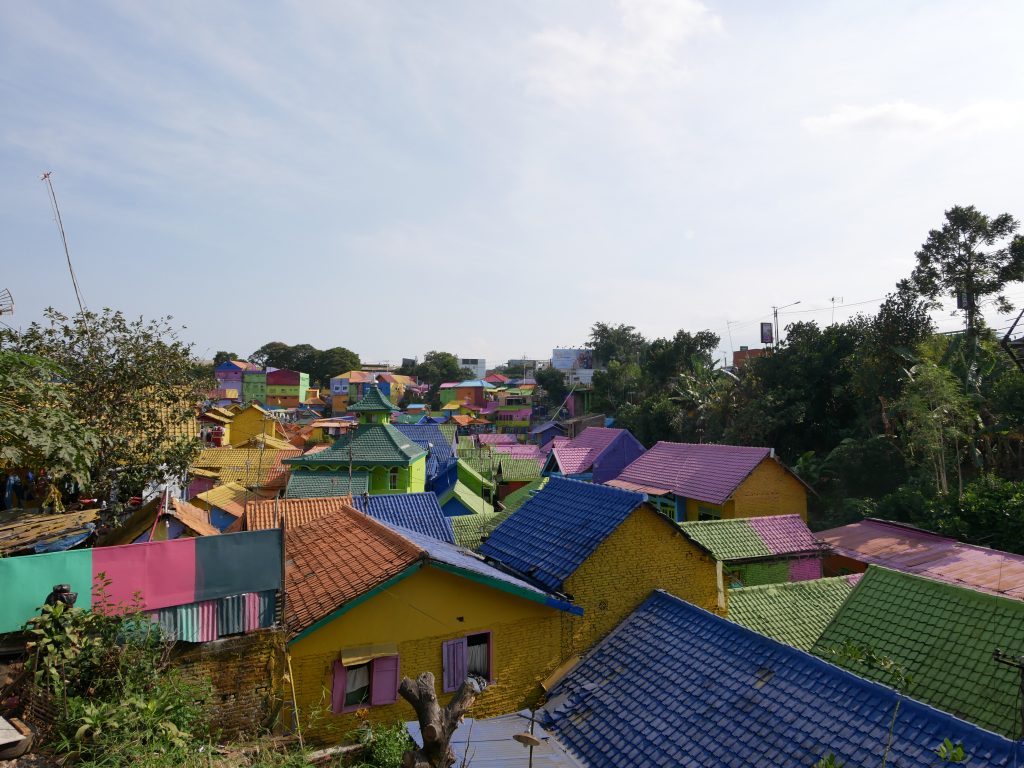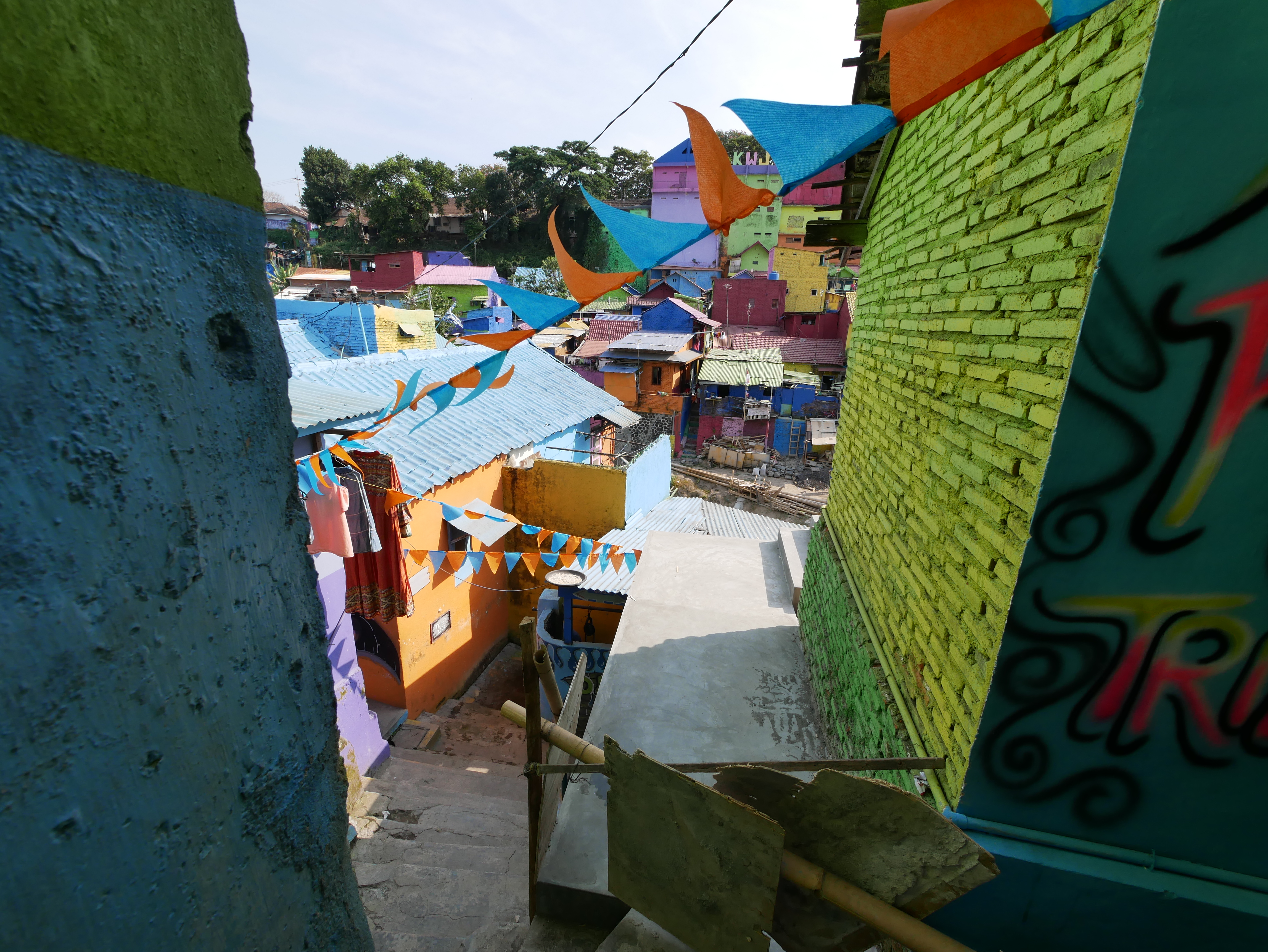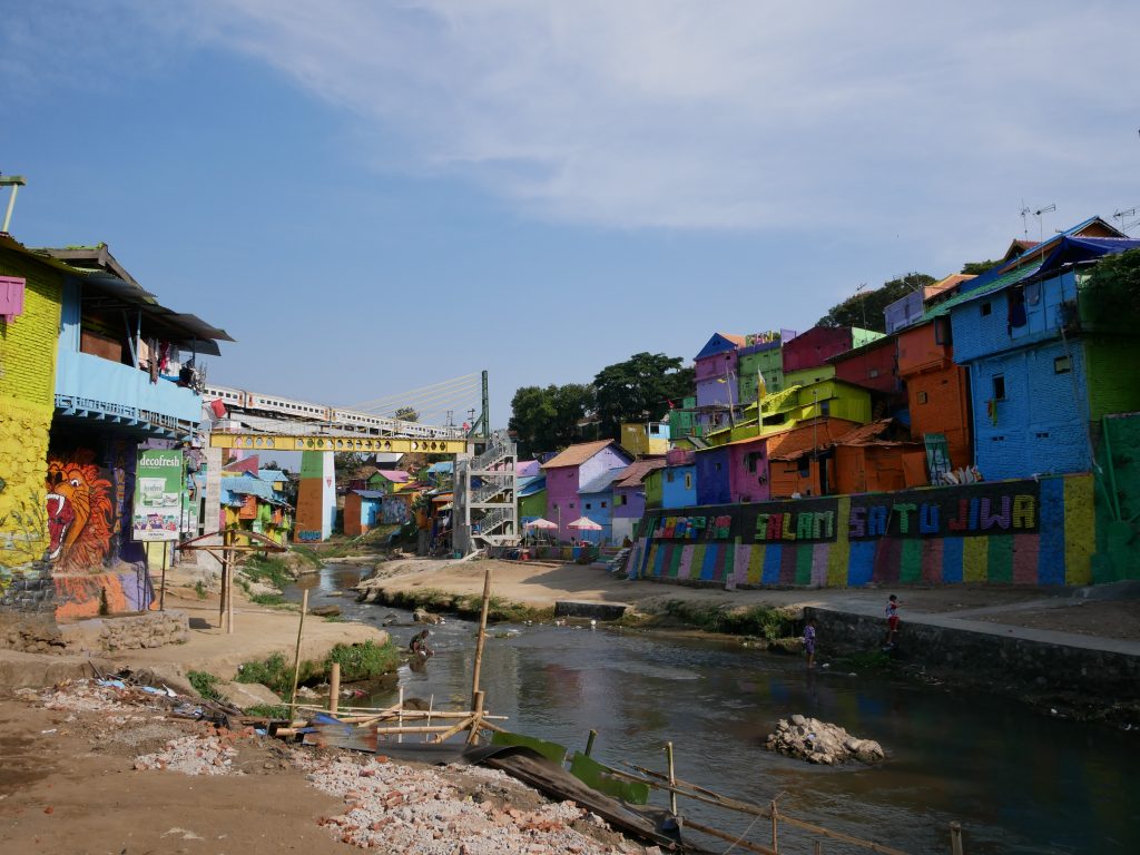 Am folgenden Tag brauchten wir erstmal eine Pause. Wir haben ausführlich die Stadt erkundet. Sie ist kleiner als Jakarta und Yogyakarta. Es gibt einige sehr schöne Ecken hier. Zum Beispiel einen Stadtteil am Fluss, in dem die Bewohner ihre kleinen Hütten sehr bunt angemalt haben. Hier schauten wir auch einem Sprayer bei der Arbeit zu und wurden von den Anwohnern mit Kaffee und Frühlingsrollen bewirtet.