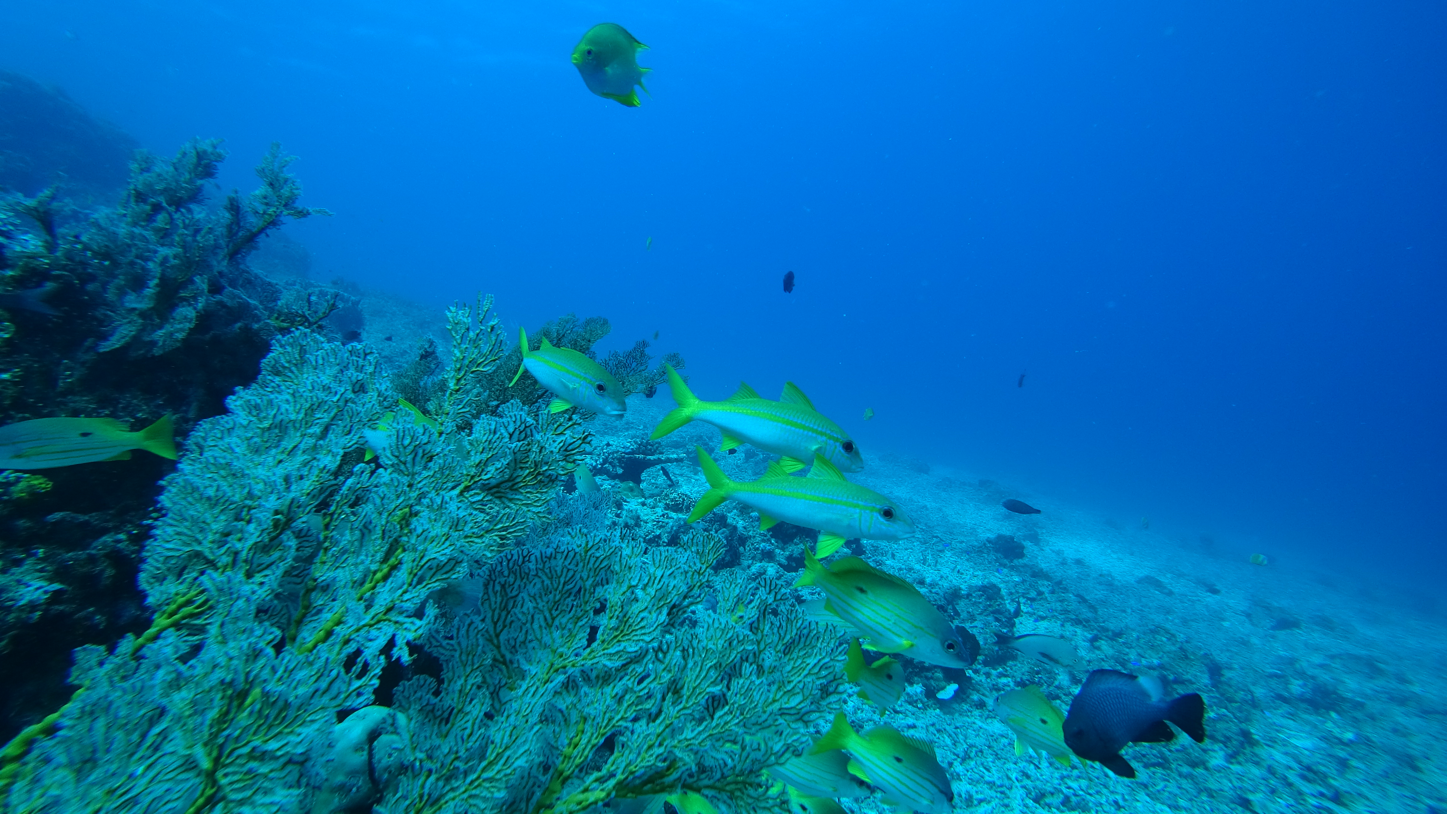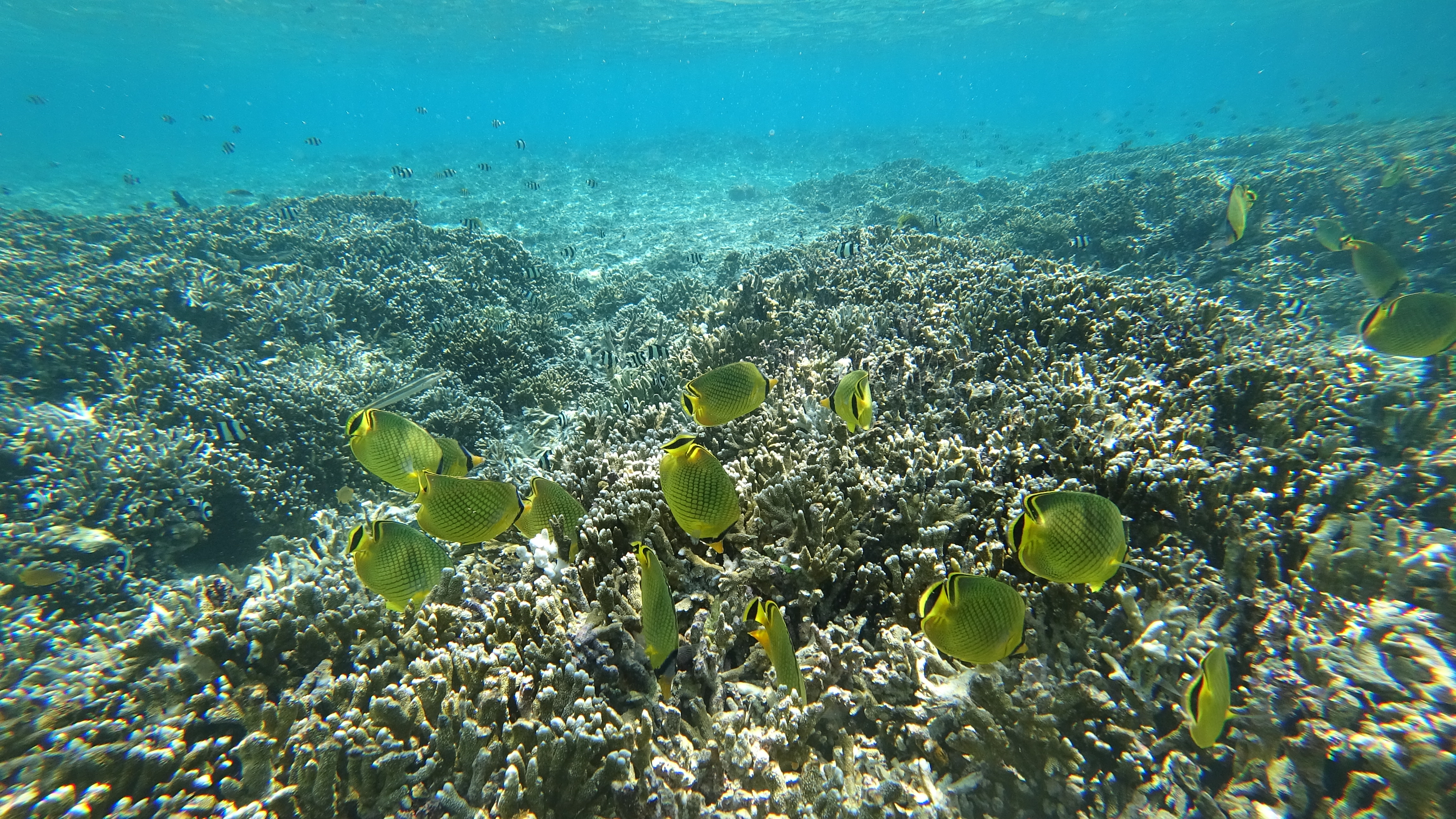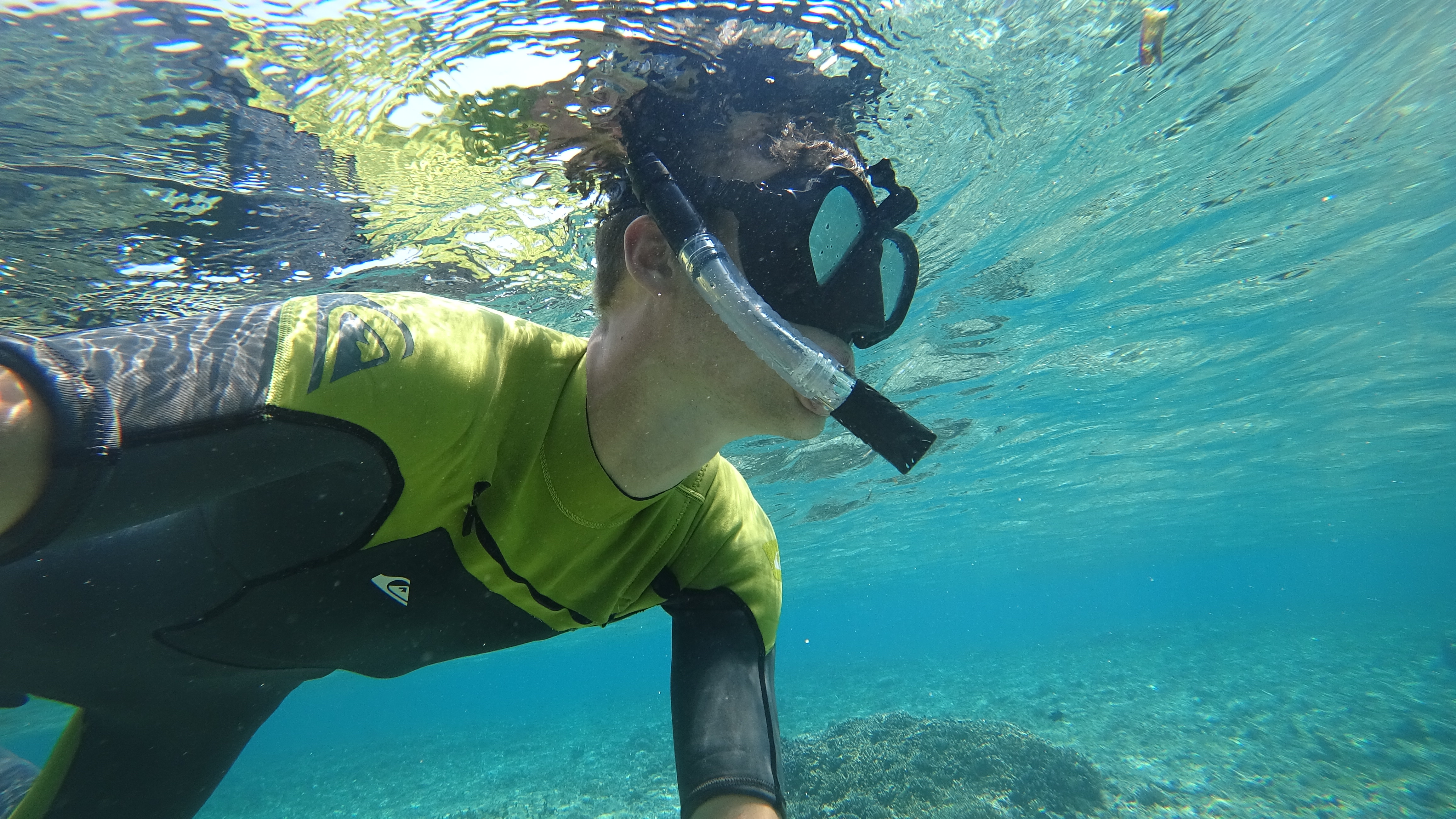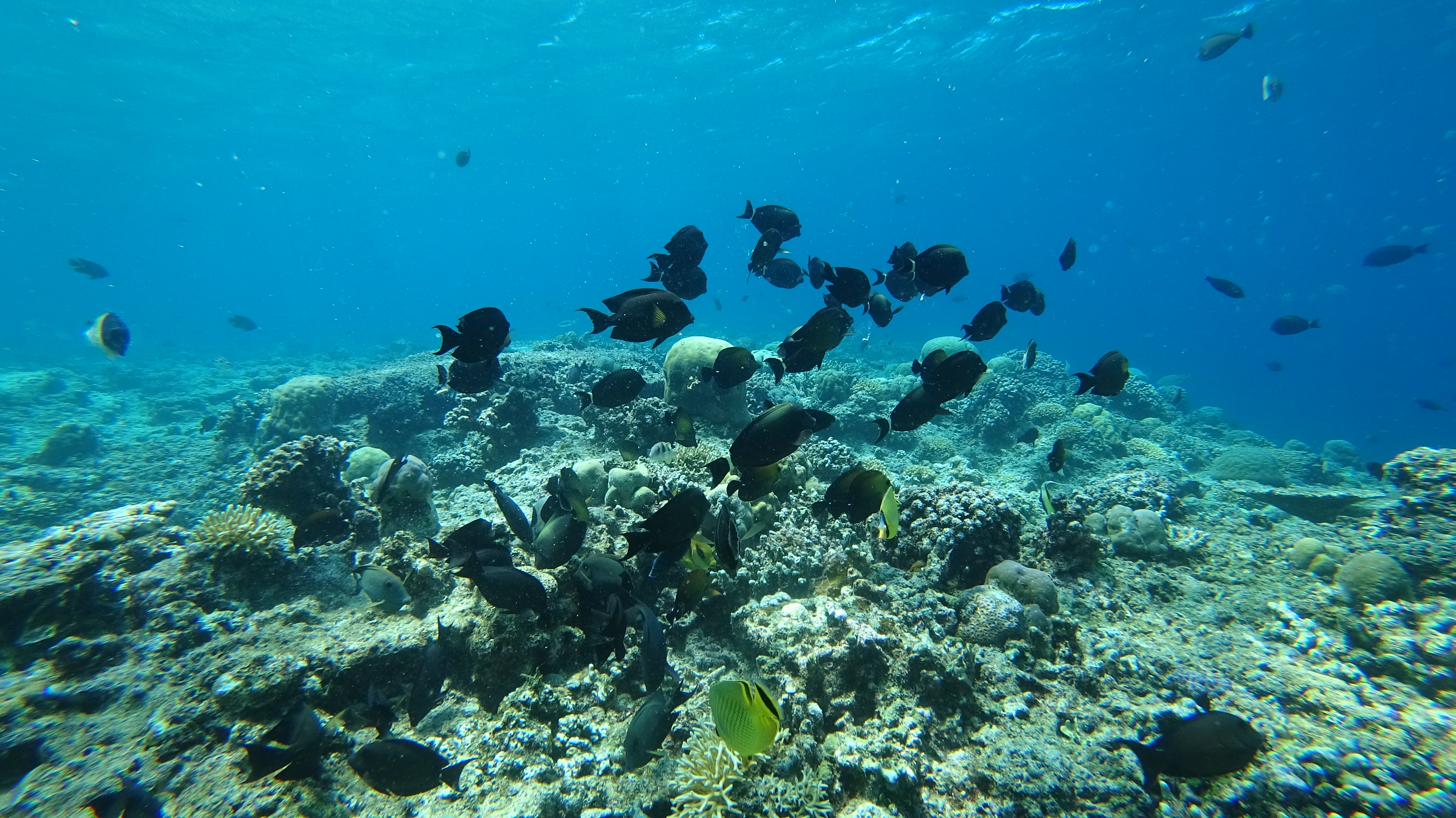 Am nächsten Morgen habe ich sogar einen Tauchgang gemacht, den ersten seit ungefähr sechs Monaten. Hier auf Meno gibt es eine sehr gute Tauchschule: Blue Marlin Dive. Hier kostet der Tauchgang circa 30 Euro. Mit dem Boot sind wir früh am Morgen Richtung Gili T gefahren, und waren dann zu viert für ungefähr eine Stunde unter Wasser. Auch hier waren die Korallen ähnlich bleich, aber unter Wasser gab es trotzdem viel zu sehen: Fischschwärme, Schildkröten, kleine Riffhaie und Oktopusse. Ich konnte endlich mal meine neue Kamera – die Sony X3000 – unter Wasser testen. Ich habe nur sehr wenig Fotos gemacht, und hauptsächlich Videos.