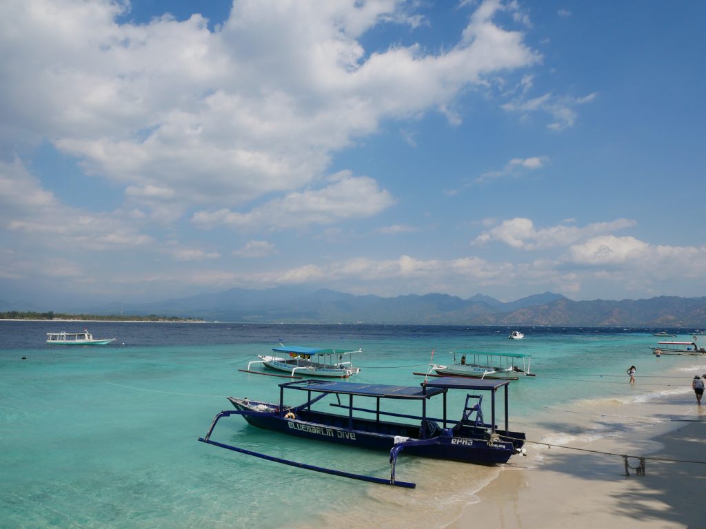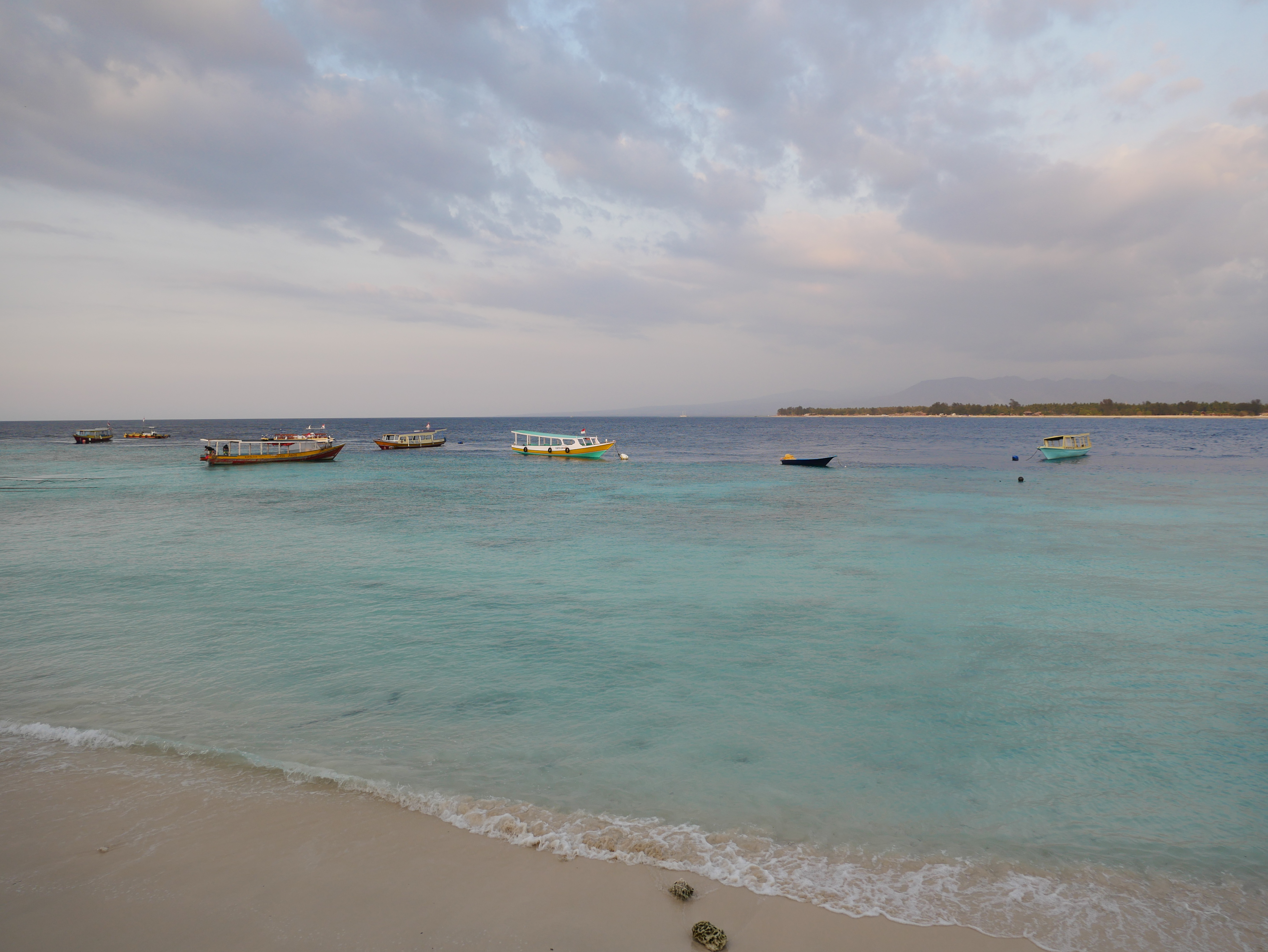 Aber am Mittwoch habe ich die Stadt vorübergehend verlassen. Ziel waren diesmal die Gilis, eine kleine Inselgruppe direkt vor Lombok. Die drei Inseln Gili Trawangan (Gili T), Gili Meno und Gili Air sind bei Backpackern sehr beliebt. Grund dafür sind vor allem die Ruhe und die entschleunigte Atmosphäre der Inseln. Die Inseln sind sehr klein, es gibt absolut keinen Straßenverkehr, dafür aber schöne, ruhige Strände und Kokospalmen.