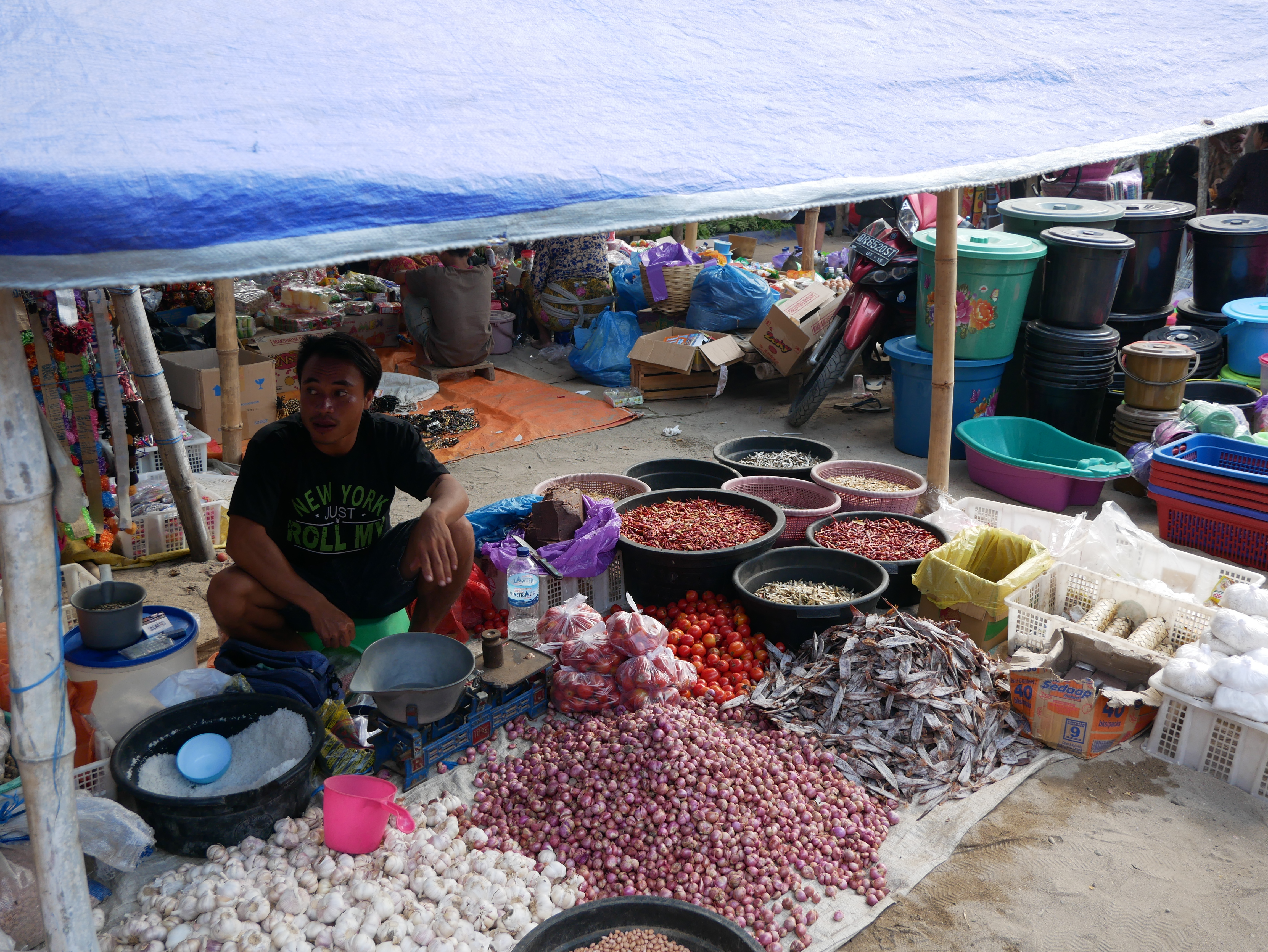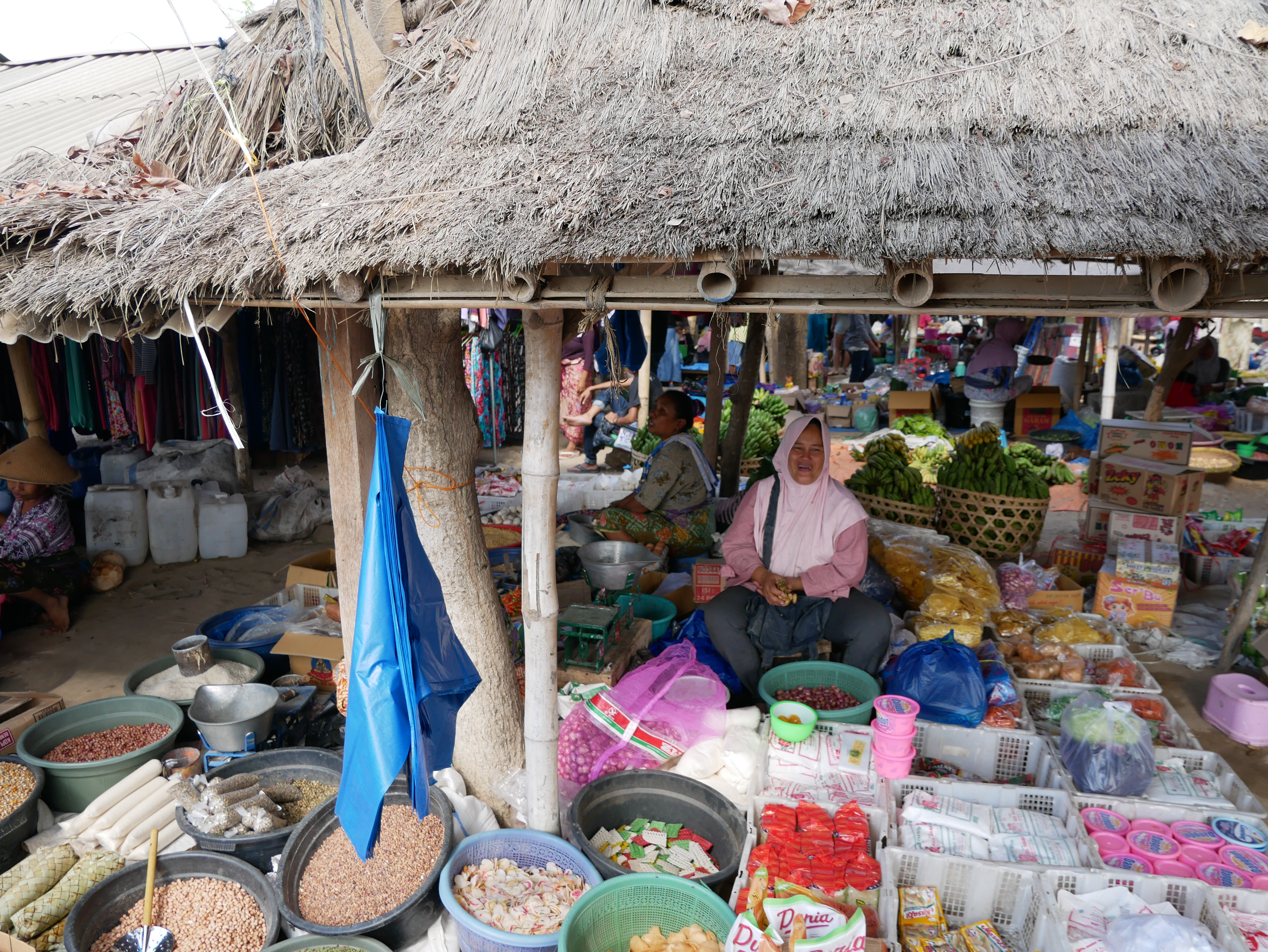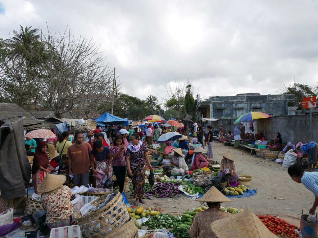 Am Sonntag hatten wir einen ganz besonderen Einblick in die indonesische Kultur. Das war vor allem unserer Rezeptionistin zu verdanken. Sie hat uns am Morgen in den lokalen Teil der Stadt geführt, wo gerade Sonntagsmarkt war.