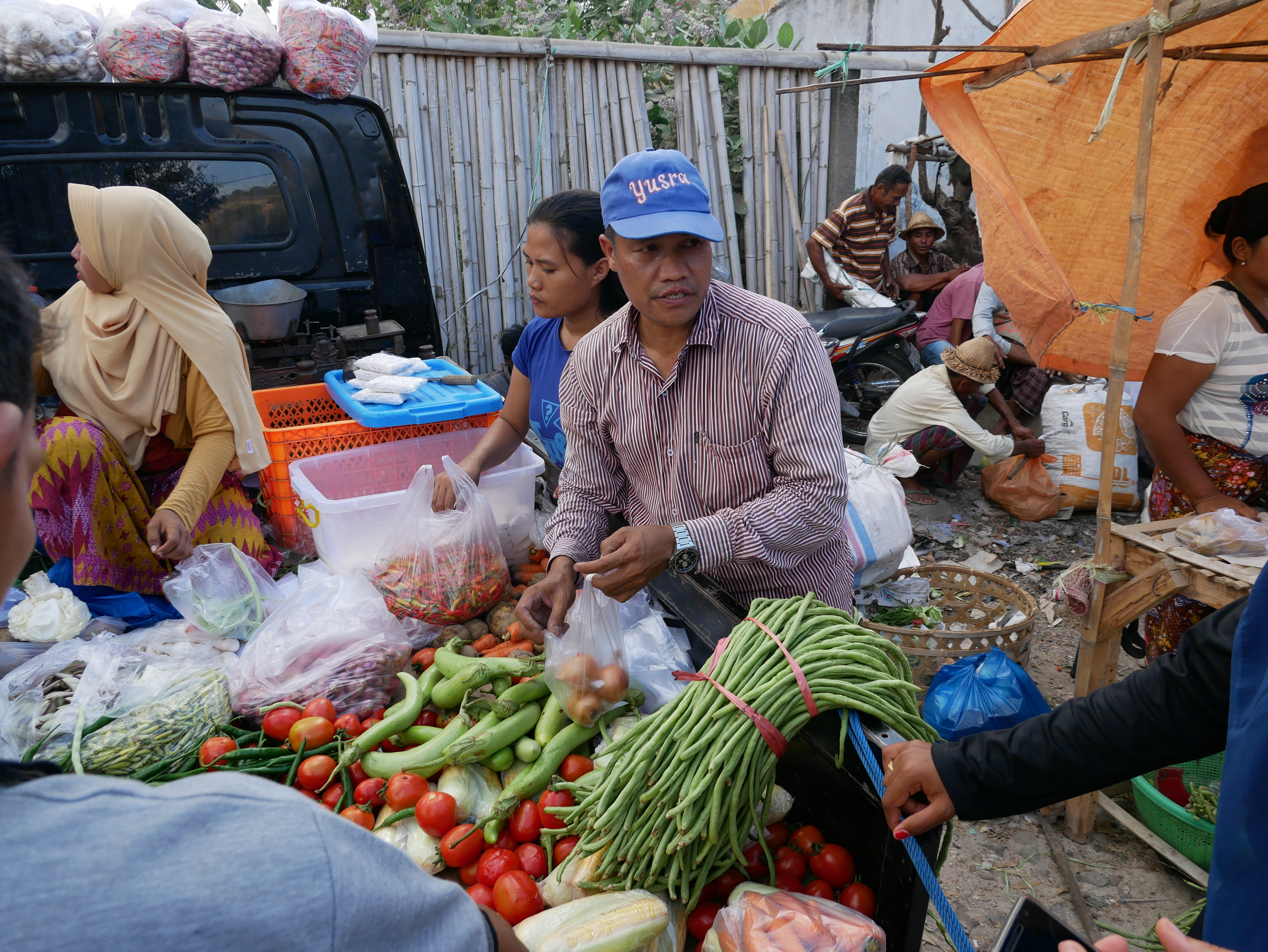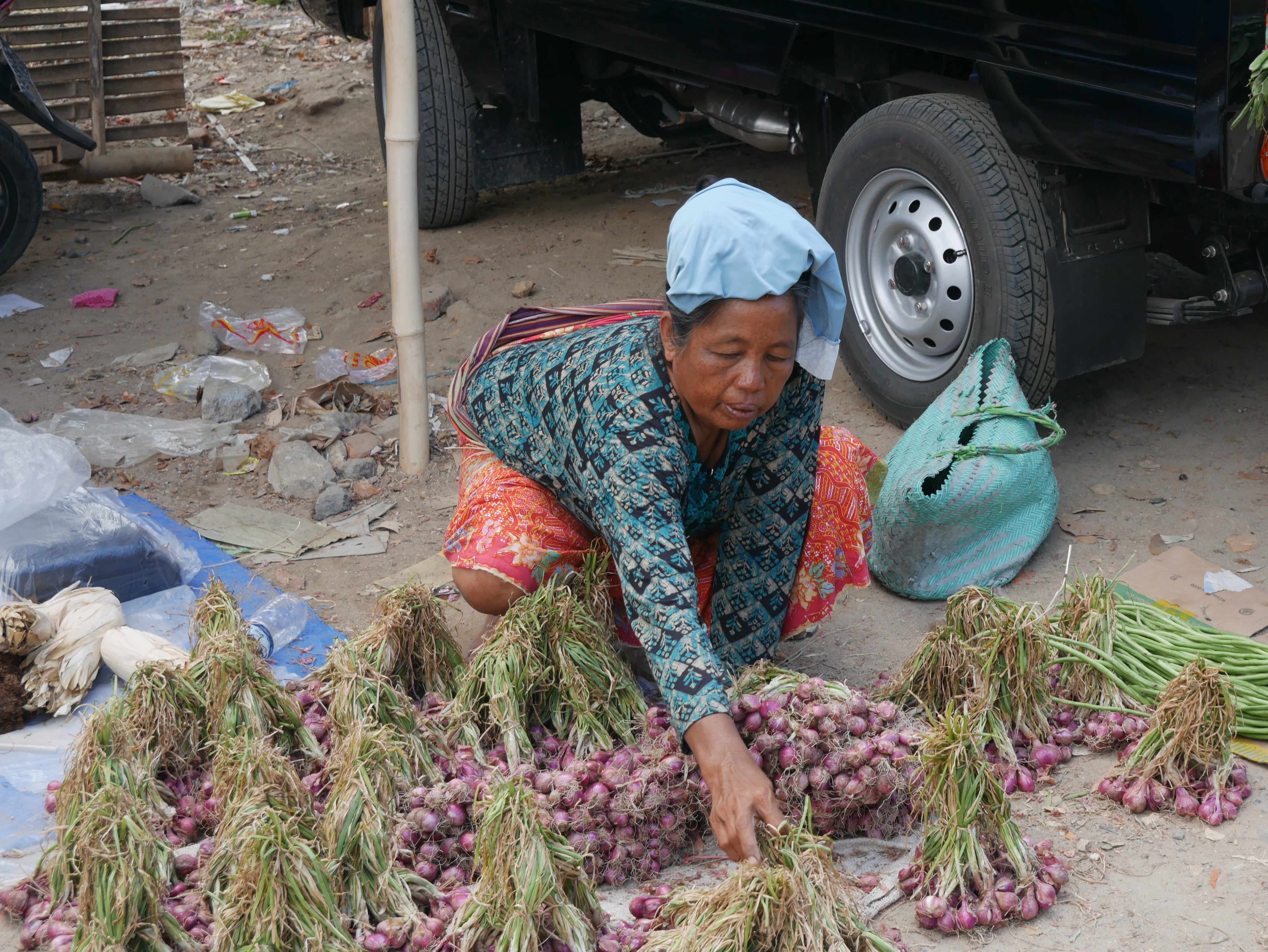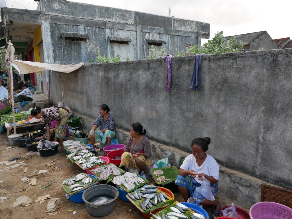 Am Sonntag hatten wir einen ganz besonderen Einblick in die indonesische Kultur. Das war vor allem unserer Rezeptionistin zu verdanken. Sie hat uns am Morgen in den lokalen Teil der Stadt geführt, wo gerade Sonntagsmarkt war.