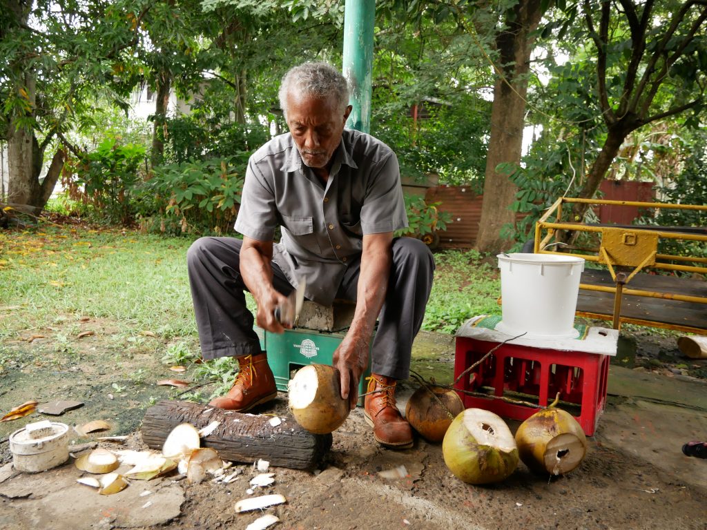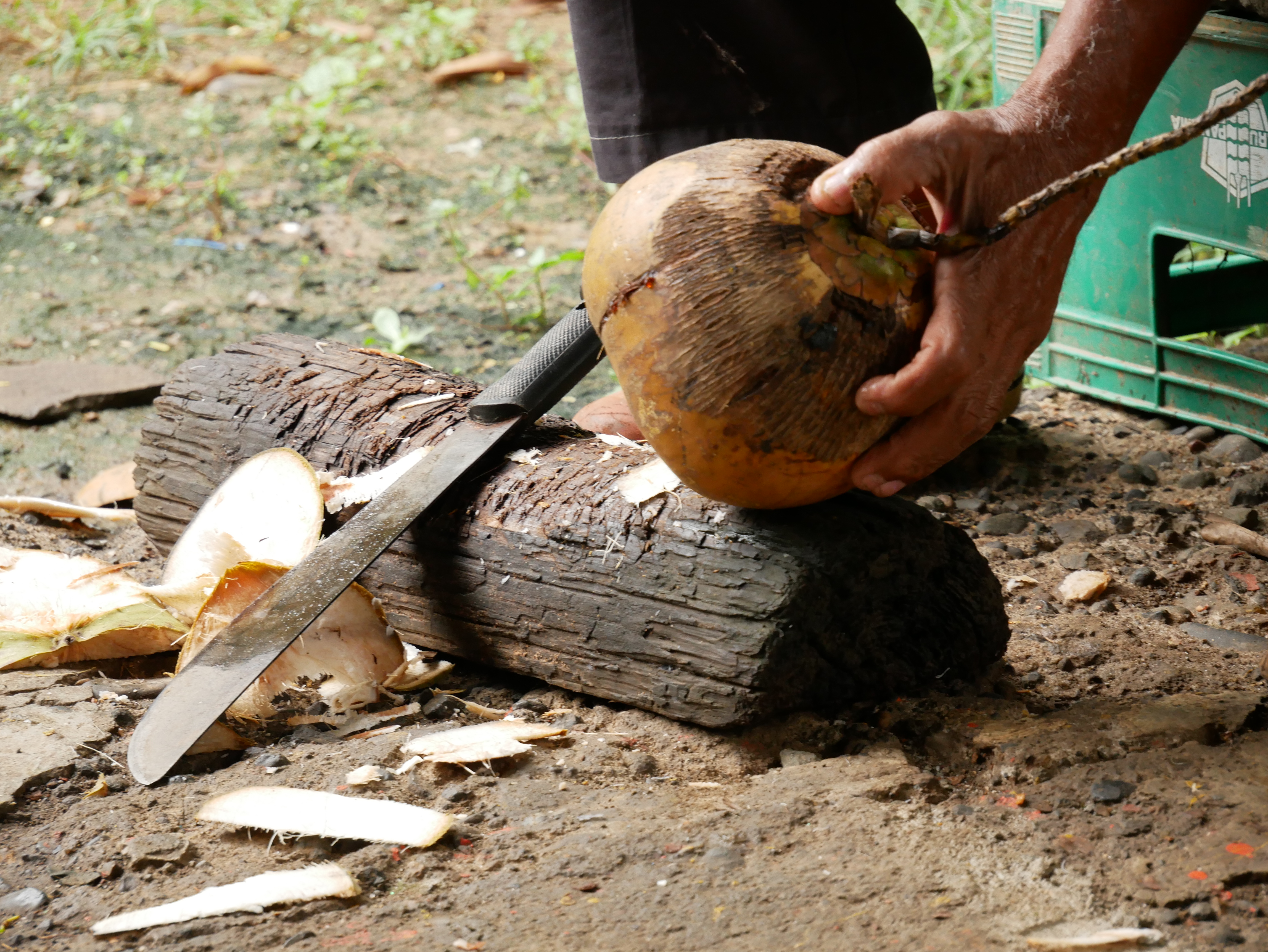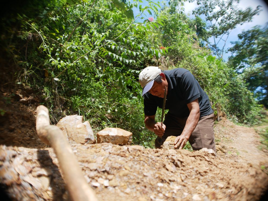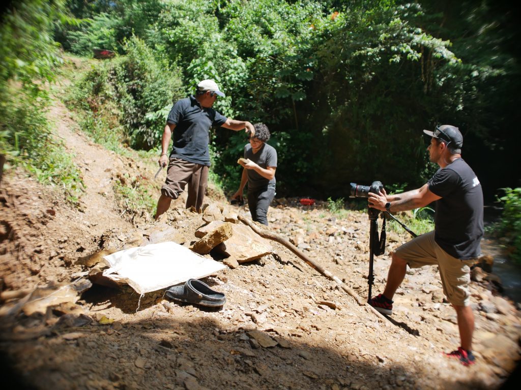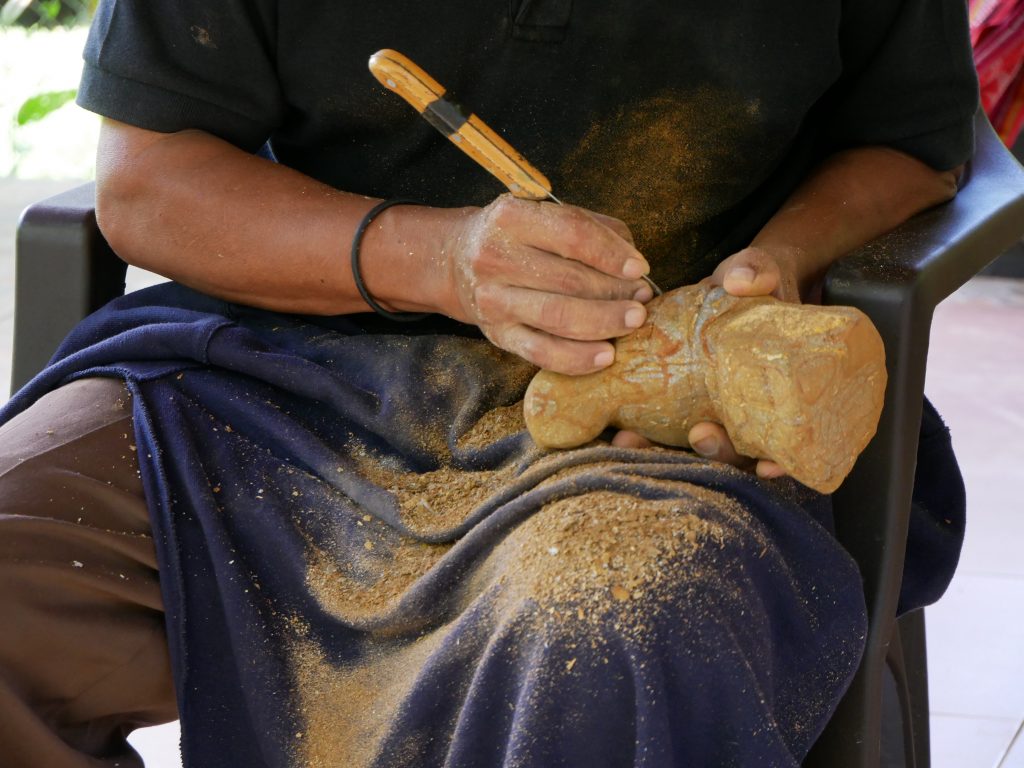Wir sind mit dem Geländewagen tiefer in den tropischen Wald hineingefahren, und haben in einem kleinen Dorf (circa 5 Häuser) gefilmt. Die Menschen hier verdienen ein wenig Geld, indem sie aus Speckstein Figuren schnitzen und diese an die Souvenirläden des Landes verkaufen. Der Stein wird hier mitten im Wald von Hand herausgeschlagen, und dann mit spitzen Messern in Form gebracht.