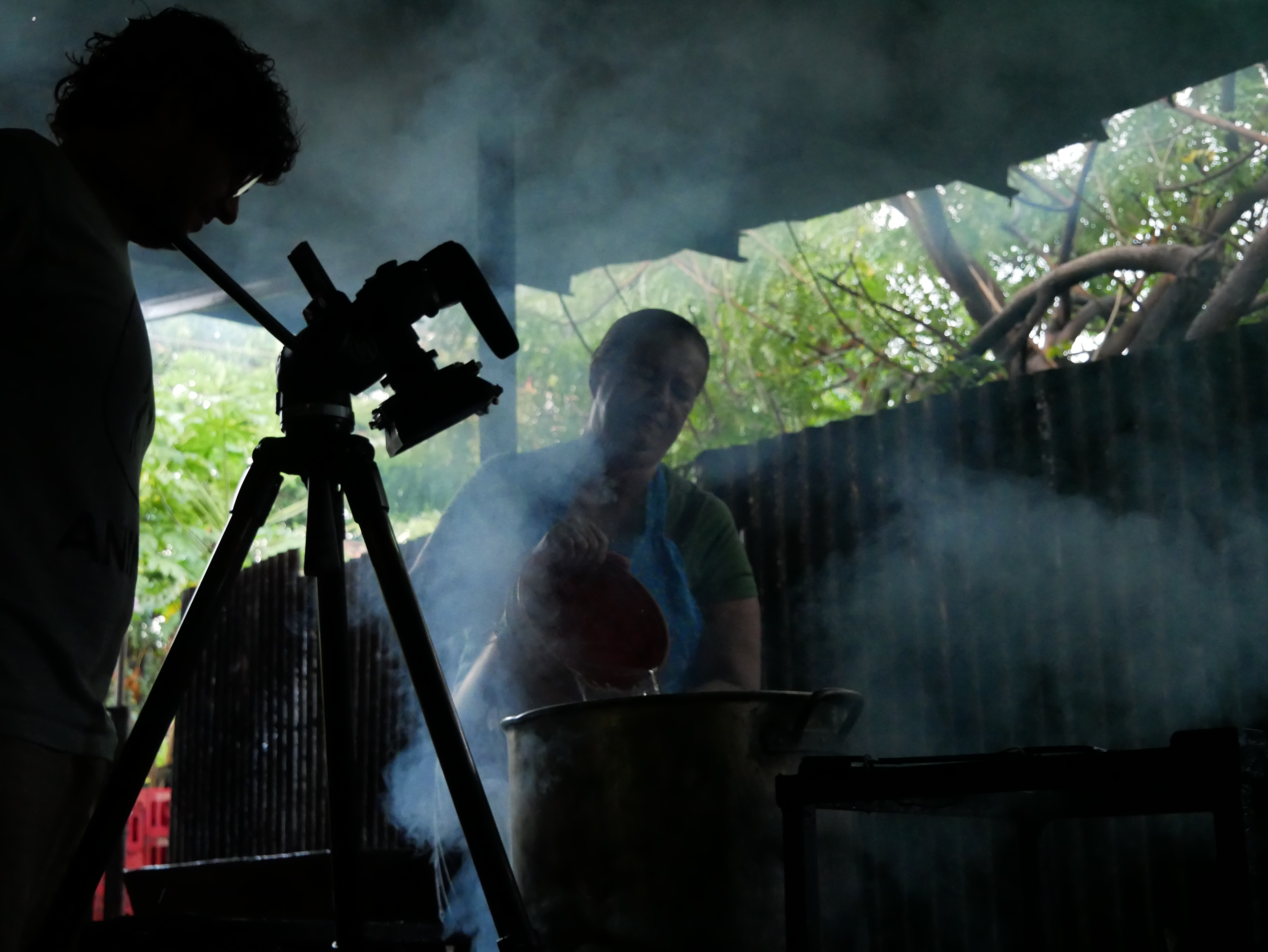 Fast mystisch wirkte auf mich der See „La Yeguada“. Er liegt mitten in den Bergen, und ist von einer wunderbaren Stille umgeben. Hier haben wir gedreht, weil viele Panamesen zur Erholung gern an den Ufern zelten. Der See gehört also, zumindest im Sommer, zu den beliebten Urlaubszielen der Stadtbewohner. Jetzt zur Regenzeit war keiner da, bis auf ein paar Vögel auf einem alten Sprungturm war absolut niemand hier. Wir haben für unseren Dreh selbst ein Zelt aufgestellt, und somit auch diese Episode überzeugend erzählen können.