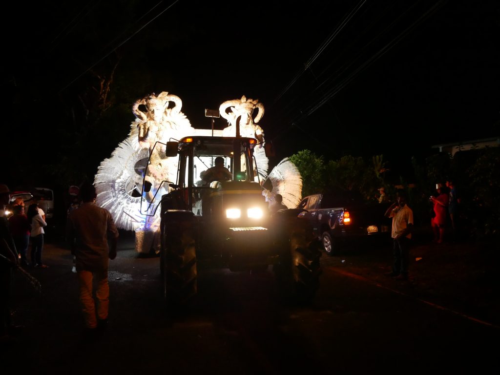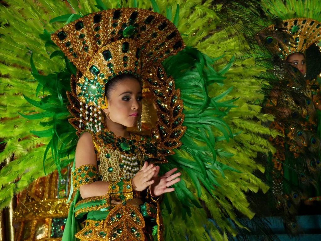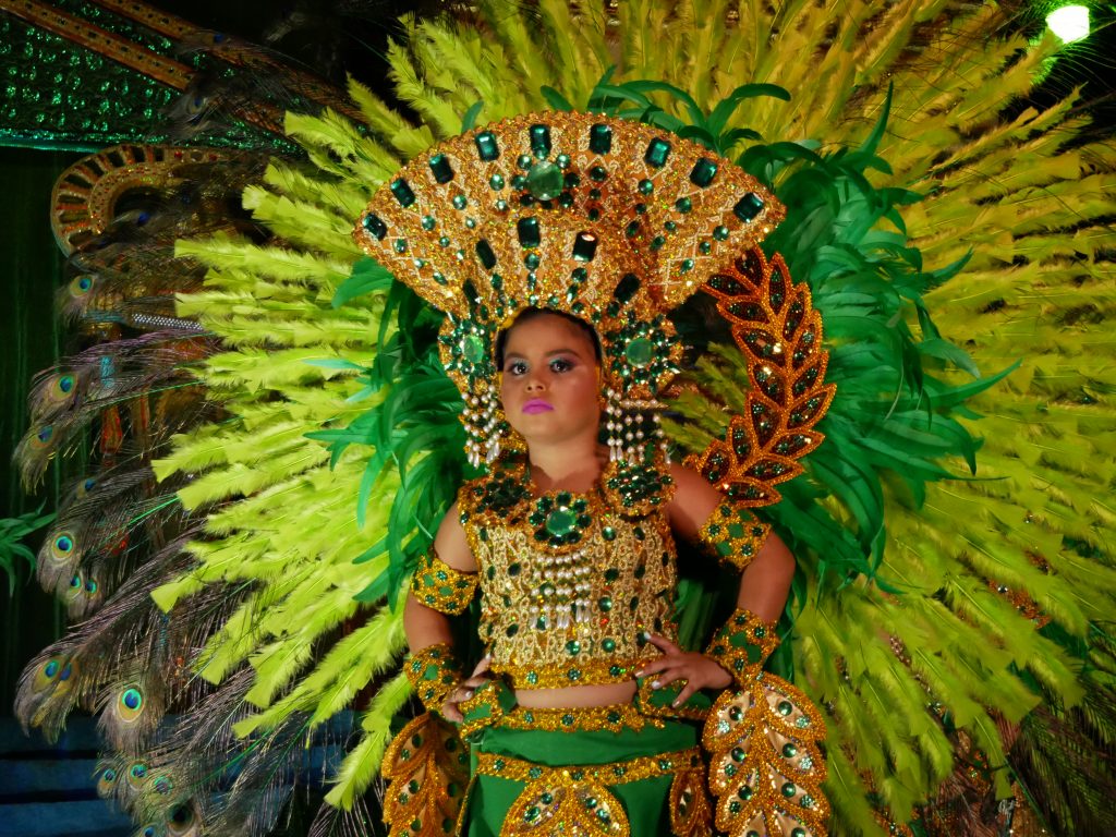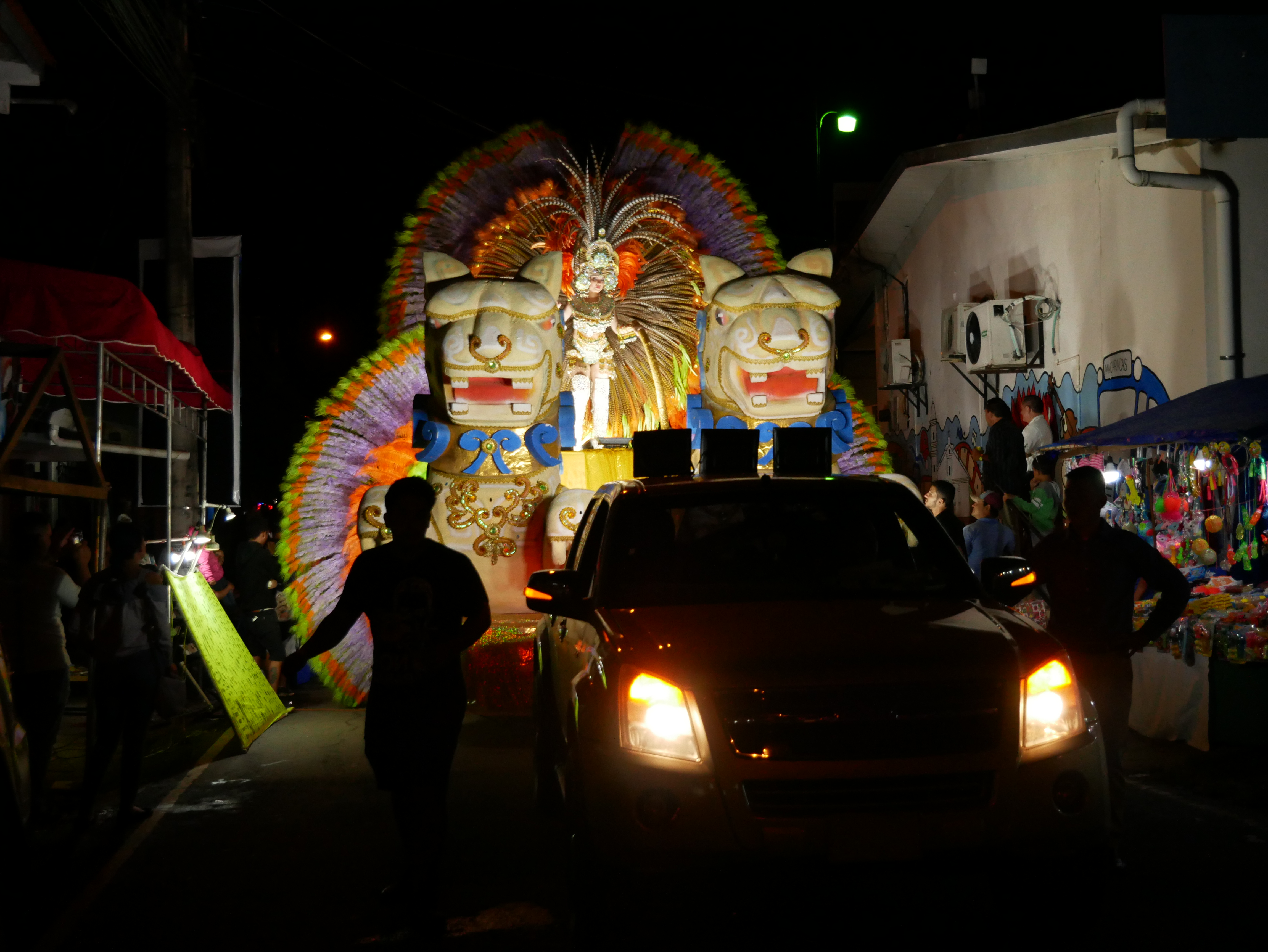 Im Anschluss daran begann ein weiterer Umzug. Auf den Anhängern von Traktoren wurden junge Mädchen durch die Stadt gefahren, die in sehr aufwendigen Kostümen steckten. Sie wurden als „Queen“ bezeichnet, und waren wohl so etwas wie die Schönheitsköniginnen der Stadt. Um ganz genau zu sein: Es gab eine wirkliche Queen, und die restlichen der anwesenden Mädchen – alle jünger – wurden wohl darauf vorbereitet, in den kommenden Jahren eingesetzt zu werden. Zwischen drei und 18 Jahren waren alle Altersstufen vertreten. Die Mädchen wurden von der Menge bejubelt, und immer wieder zündete man zu ihren Ehren Feuerwerke an. Auch an den folgenden Tagen wurden die Mädchen durch die Stadt gefahren, immer wieder in anderen Kostümen. Wir haben gefilmt, wie die aktuelle Queen traditionell eingekleidet wurde.