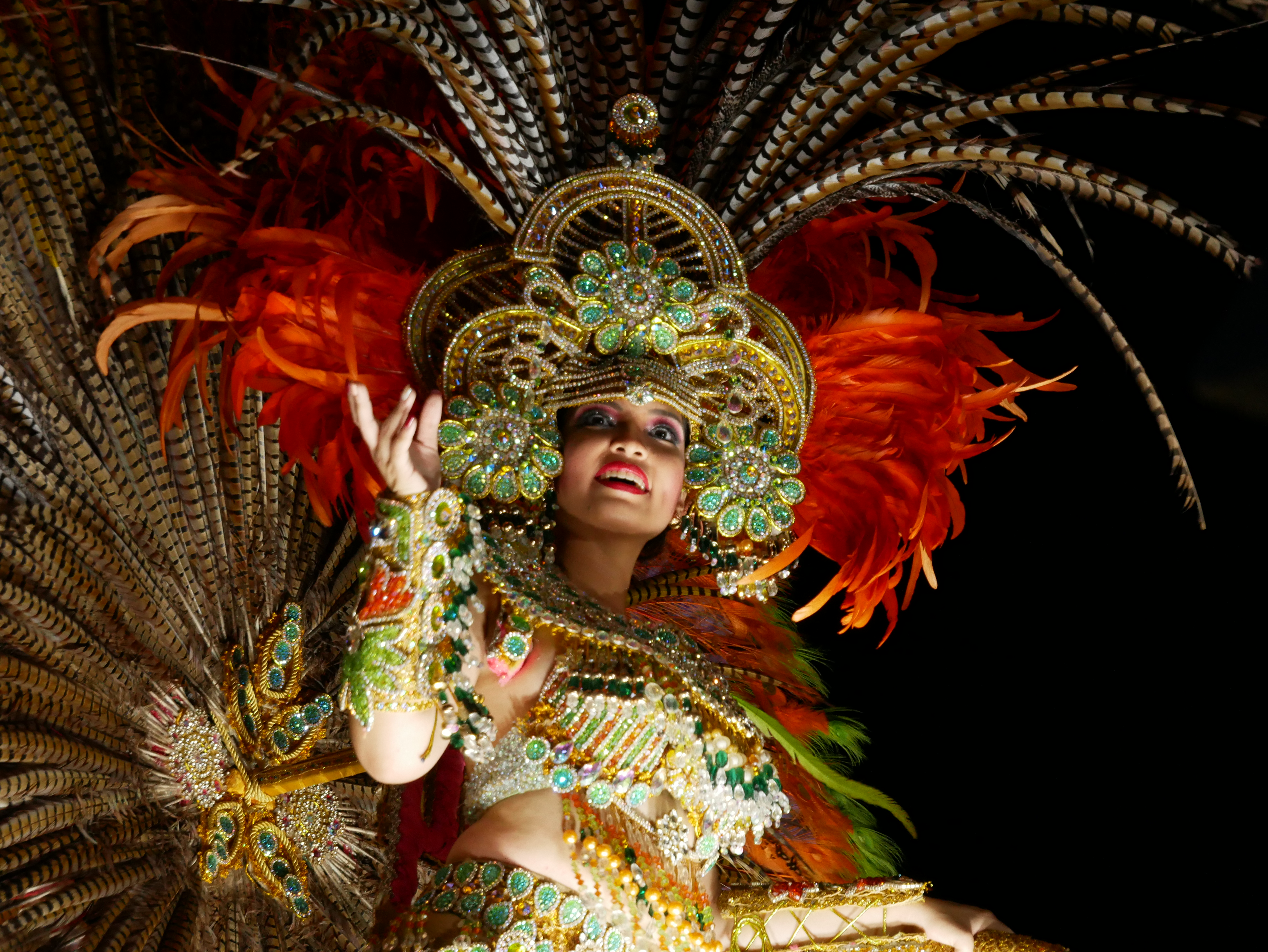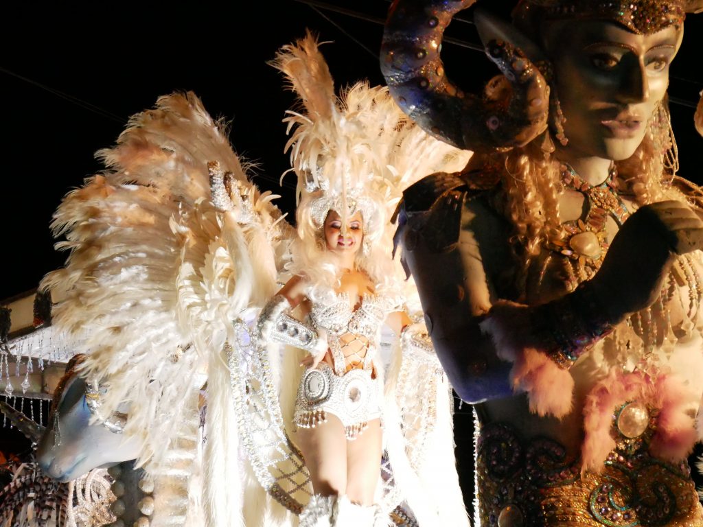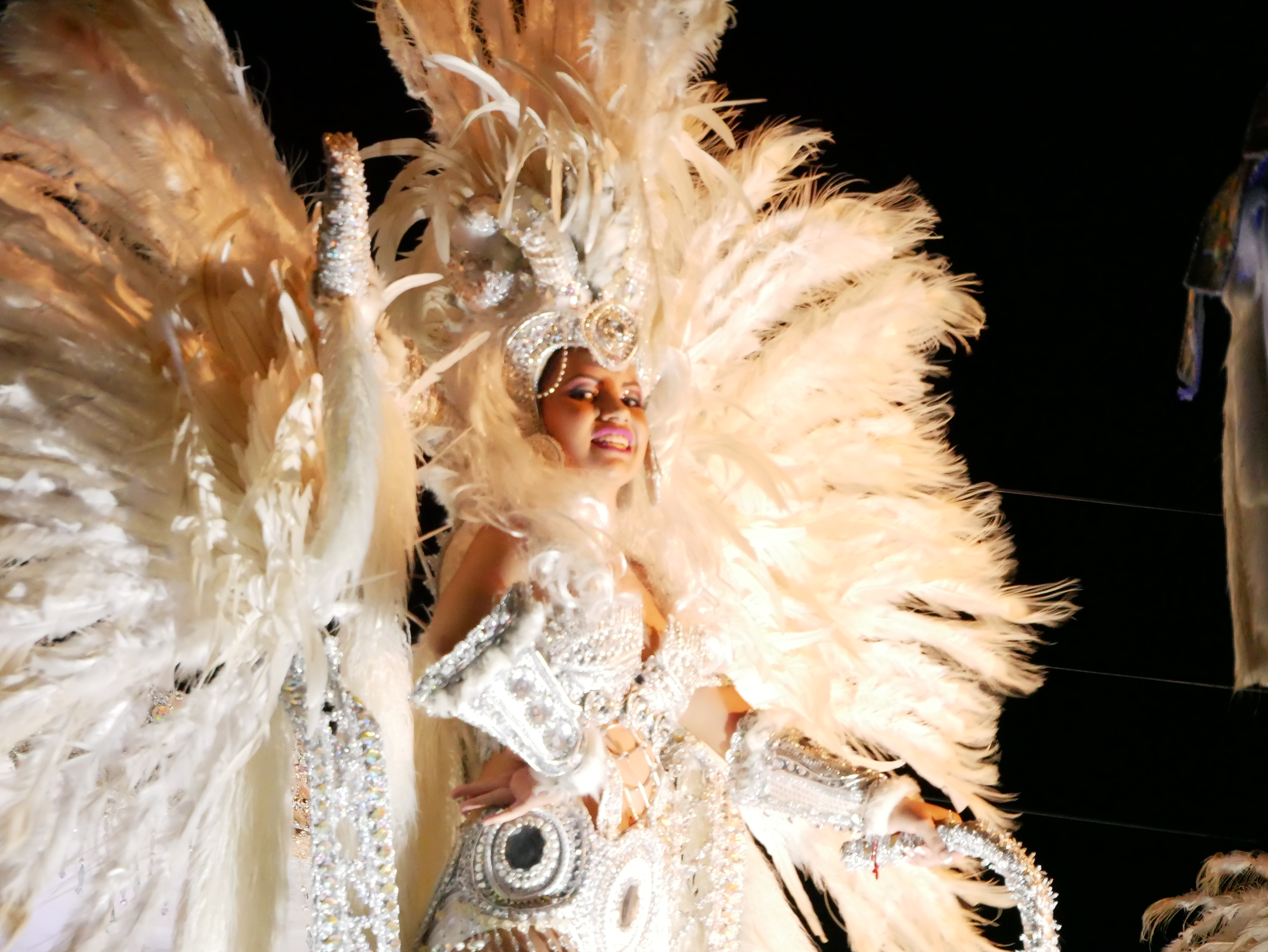 Im Anschluss daran begann ein weiterer Umzug. Auf den Anhängern von Traktoren wurden junge Mädchen durch die Stadt gefahren, die in sehr aufwendigen Kostümen steckten. Sie wurden als „Queen“ bezeichnet, und waren wohl so etwas wie die Schönheitsköniginnen der Stadt. Um ganz genau zu sein: Es gab eine wirkliche Queen, und die restlichen der anwesenden Mädchen – alle jünger – wurden wohl darauf vorbereitet, in den kommenden Jahren eingesetzt zu werden. Zwischen drei und 18 Jahren waren alle Altersstufen vertreten. Die Mädchen wurden von der Menge bejubelt, und immer wieder zündete man zu ihren Ehren Feuerwerke an. Auch an den folgenden Tagen wurden die Mädchen durch die Stadt gefahren, immer wieder in anderen Kostümen. Wir haben gefilmt, wie die aktuelle Queen traditionell eingekleidet wurde.