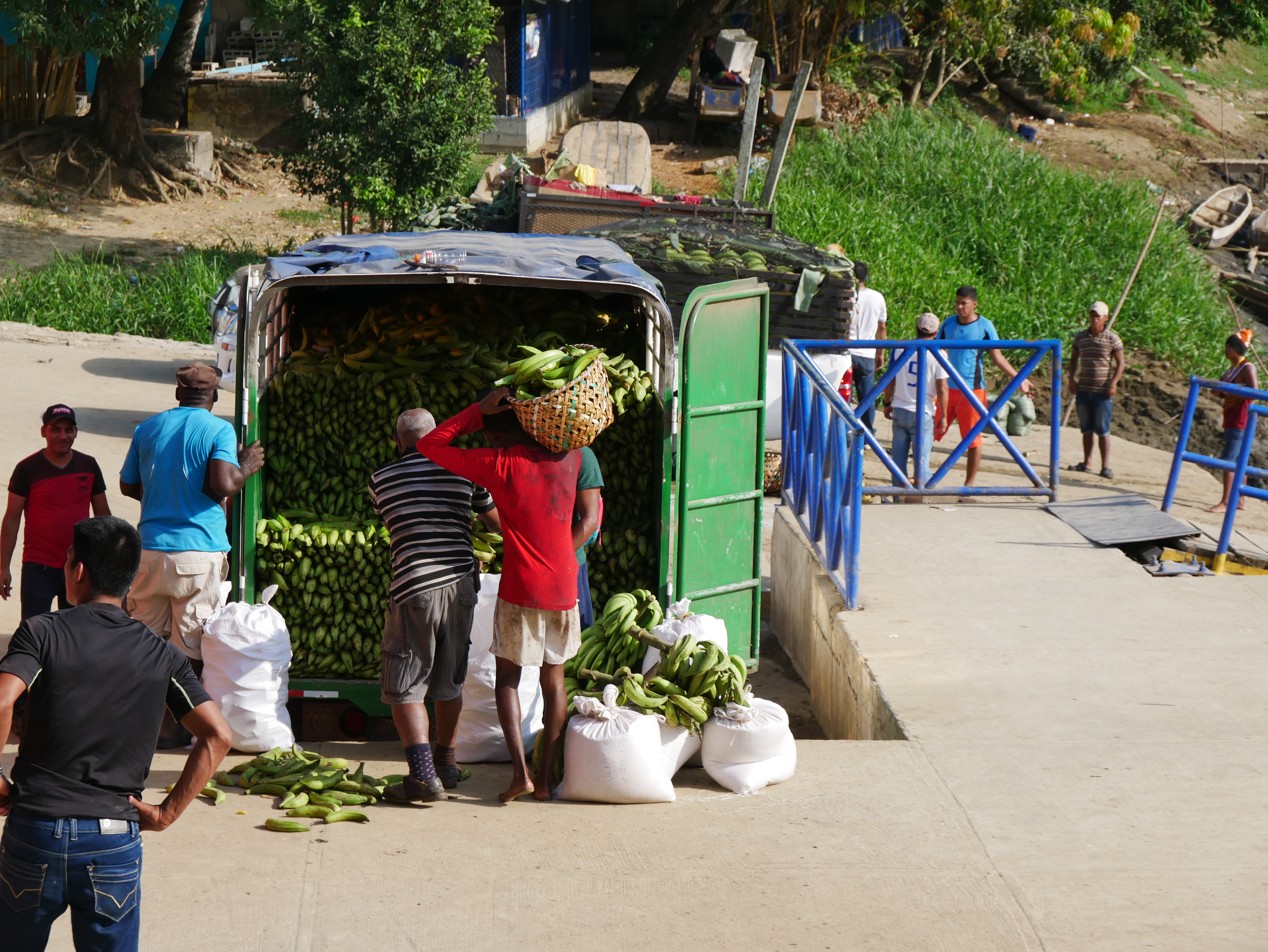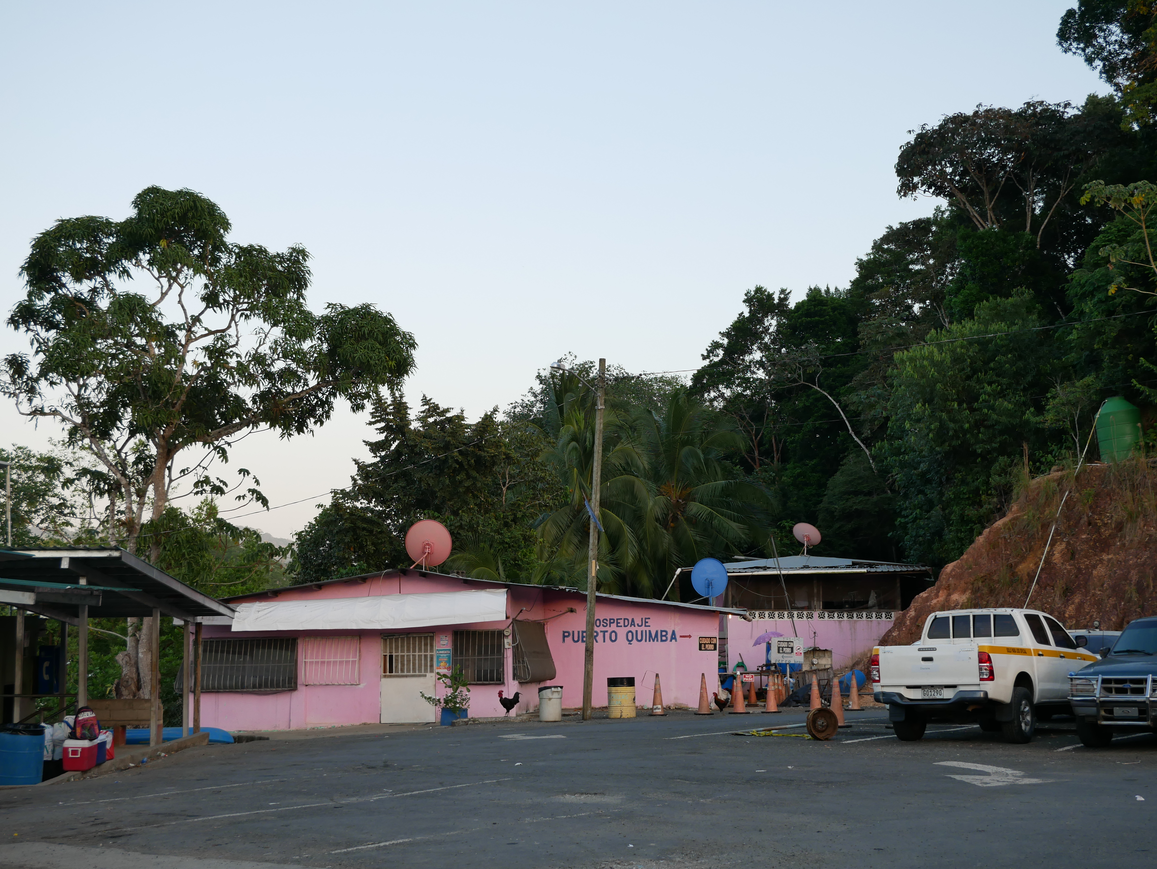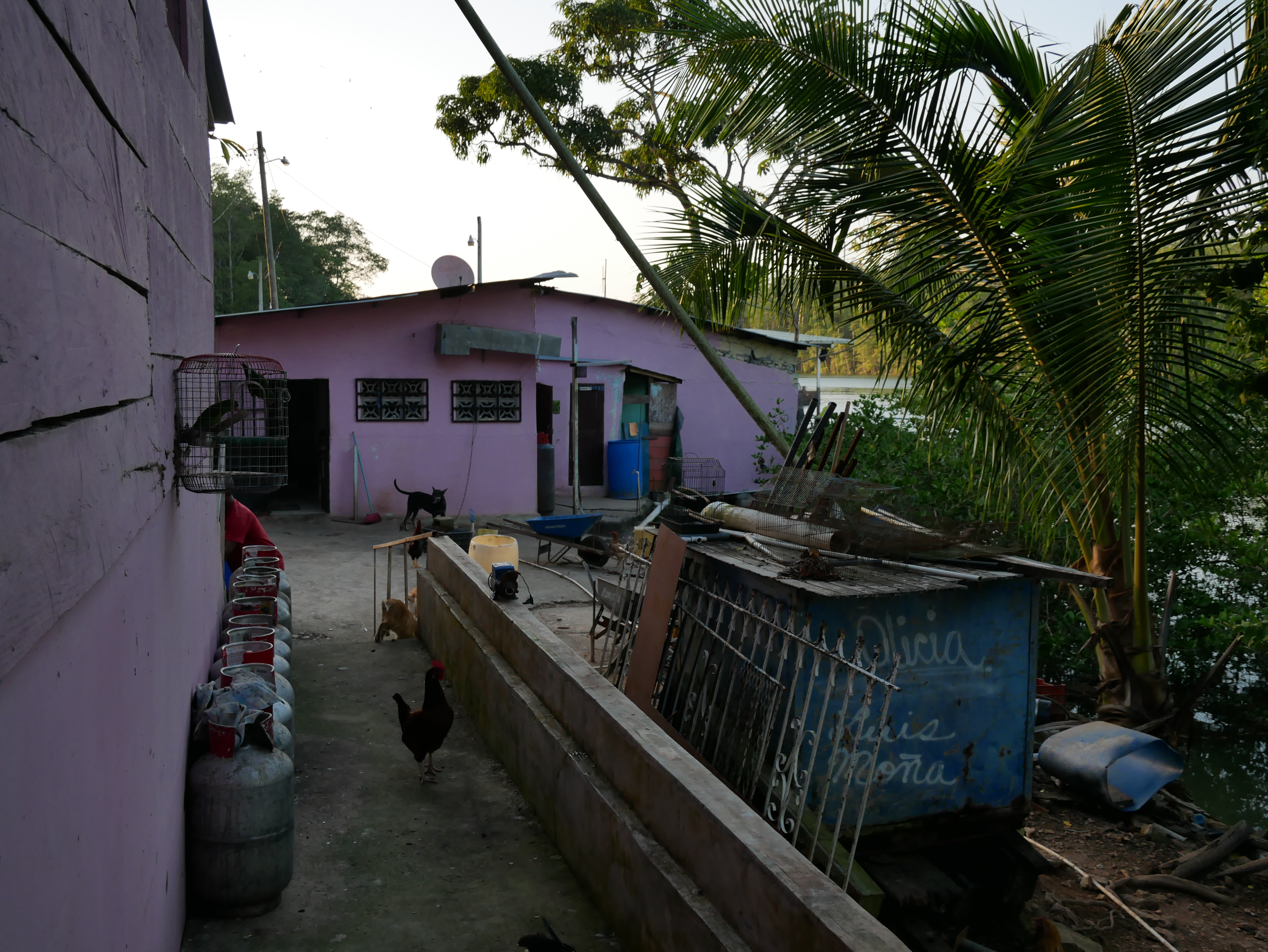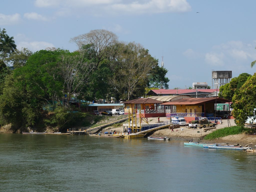Nachdem wir am Samstag erfolgreich unser Apartment zurückgegeben hatten, machten wir uns am Sonntag sehr früh auf den Weg. Mit Solartes Hilfe hatte ich die Anreise geplant. Zuerst ging es mit einem öffentlichen Bus für neun Dollar von Panama bis nach Meteti. Das ist die vorletzte Stadt am Highway, die letzte vor Yaviza. Schon auf dieser Fahrt merkten wir, dass eine Reise nach Darién im Jahr 2018 nicht mehr so schwierig war. Wir wurden zwar an der Grenze von der Senafront aus dem Bus geholt, die Registrierung ist aber inzwischen recht einfach und vor allem schnell. Innerhalb von zehn Minuten hatten wir unsere Reisepläne erklärt und wurden in die Liste der anwesenden Reisenden eingetragen, alles sehr unkompliziert. Die erste große Erleichterung für uns. Und ein Zeichen, dass wir den Darién wohl überschätzt hatten. Von Metiti aus ging es für zwei Dollar nach Puerto Quimba, einem Drei-Häuser-Dorf an einem Ausläufer des San-Miguel-Golfes. Der Ort dient als Hafen und Zugangspunkt in die vielen kleinen Ortschaften in diesem weitverzweigten Netz aus Wasserstraßen. Hier haben wir eine letzte Nacht in einem Bauernhof/ Imbiss/Hostel übernachtet, bei einer sehr netten panamesischen Familie.