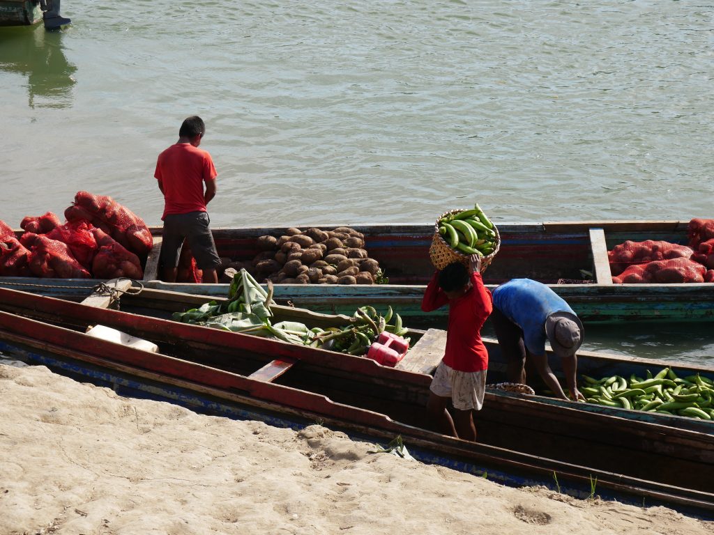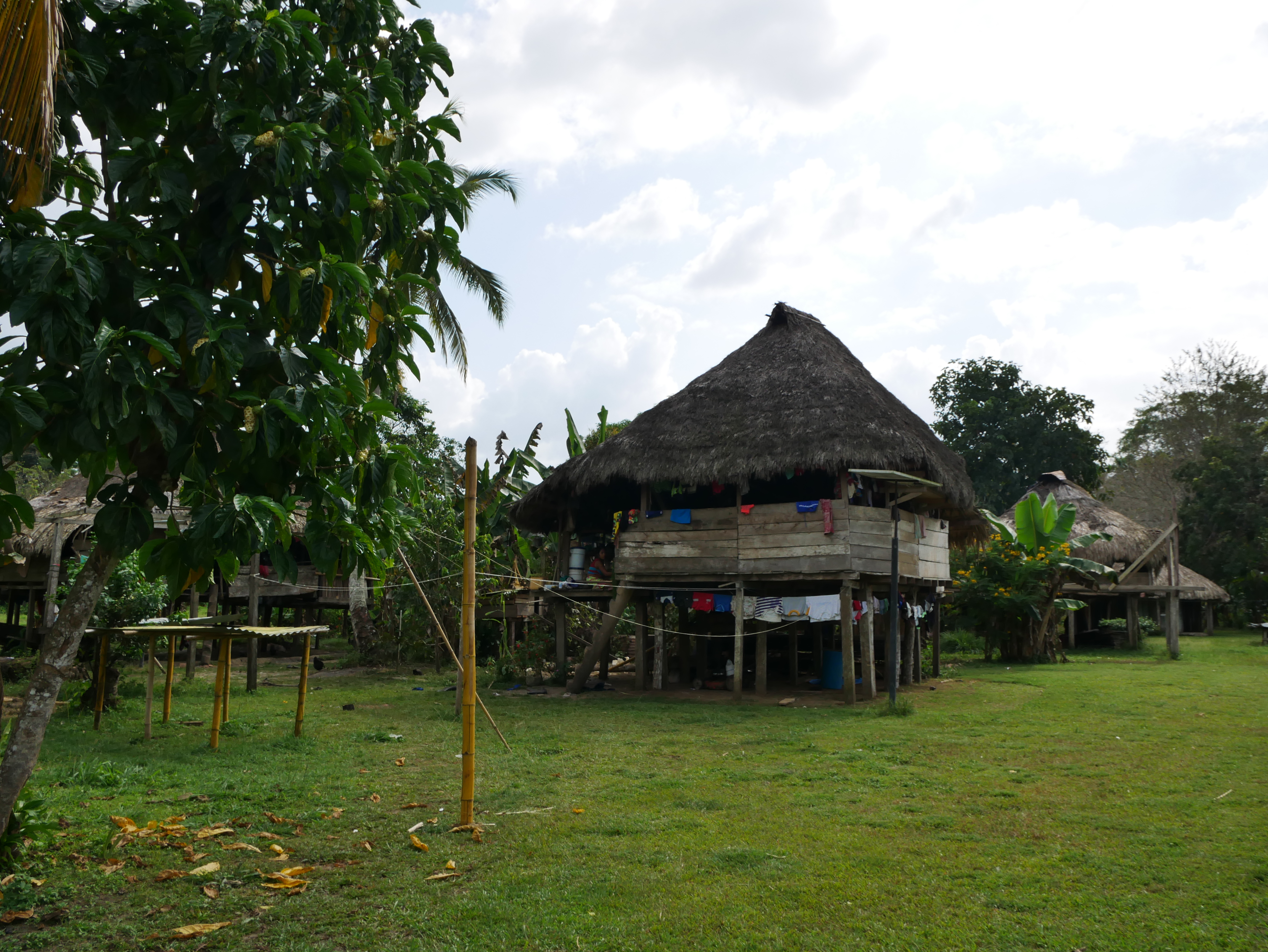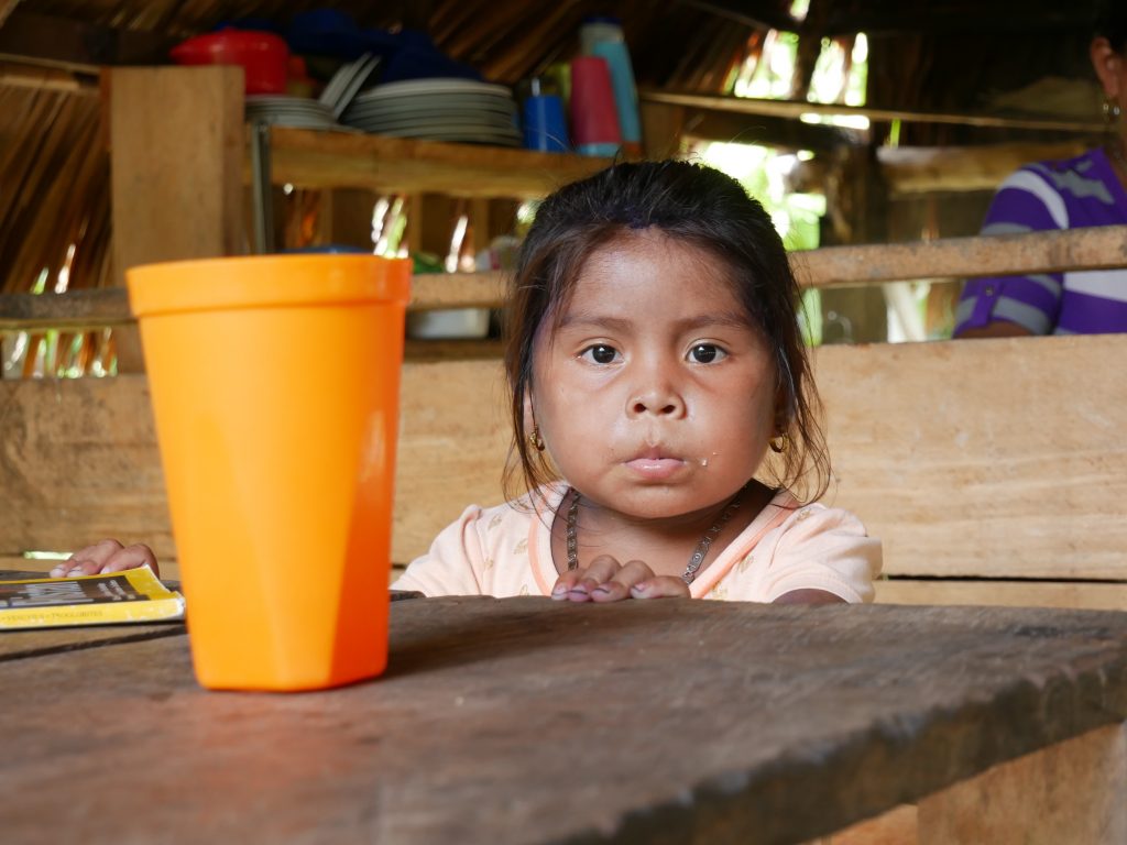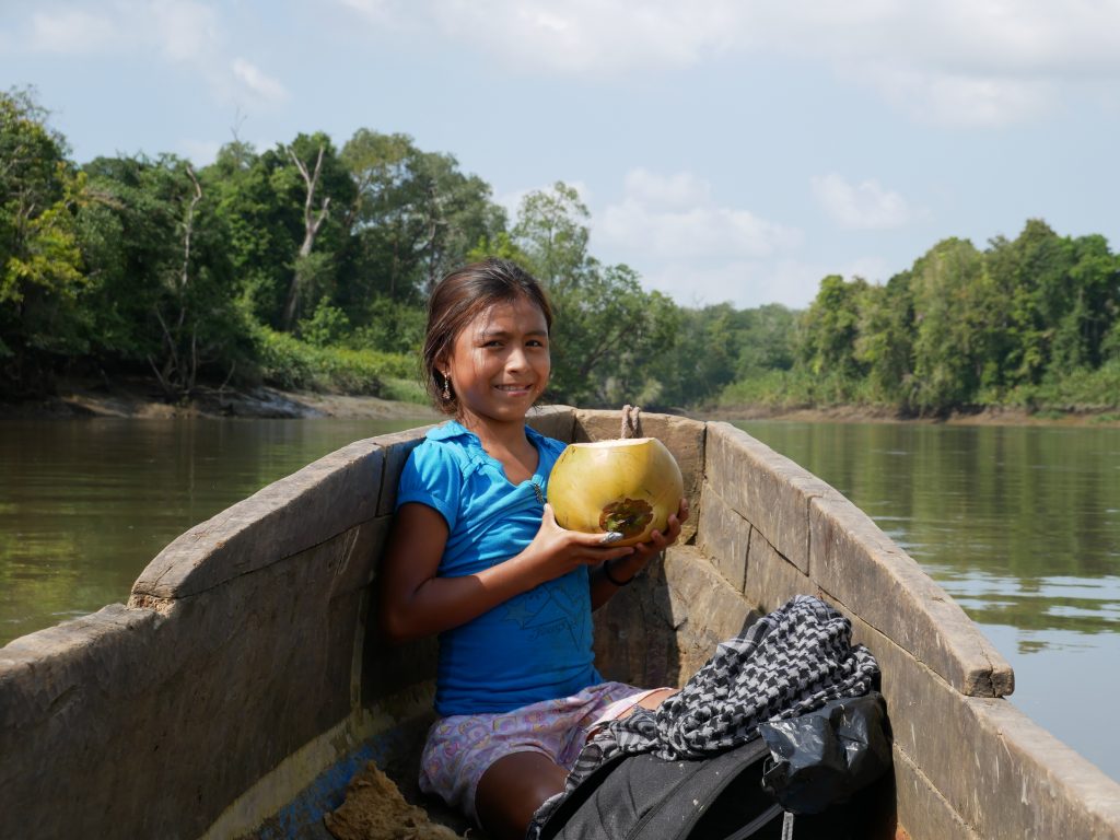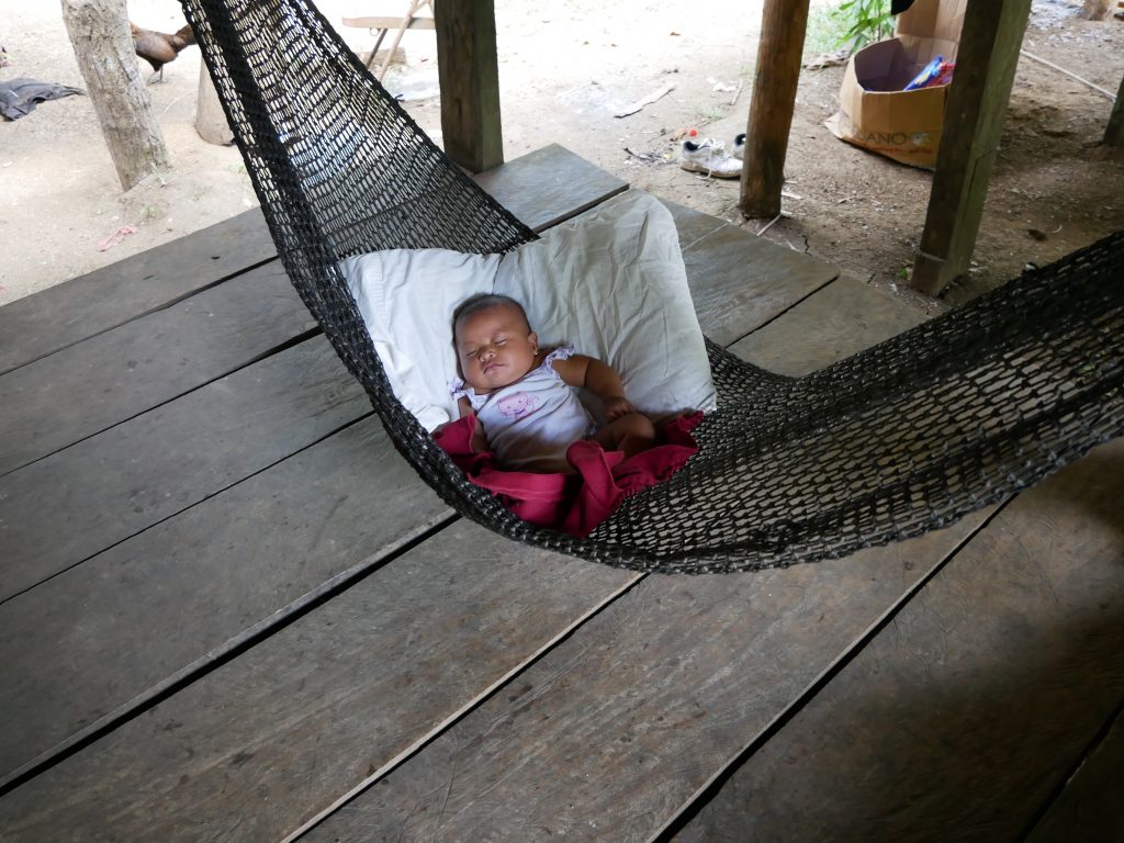 Rutillo nahm uns freundlich in Empfang und führte uns in sein Dorf. Er war es auch, der sich die nächsten Tage um uns kümmerte. Rutillo und seine ganze Familie umsorgten uns wirklich liebevoll. Besonders seine elfjährige Tochter Bernilda war sehr aufgeschlossen und verbrachte viel Zeit mit uns. Das Dorf besteht aus sehr einfachen Holzhütten und einer kleinen Grundschule sowie zwei Kirchen. Auch hier waren die christlichen Missionare also „erfolgreich“, auch wenn die Art und Weise des ausgelassenen Singens, Tanzens und Betens der Dorfbewohner die eigenen kulturellen Wurzeln mit einfließen lässt.