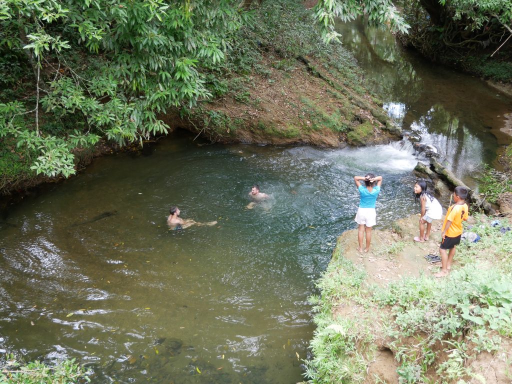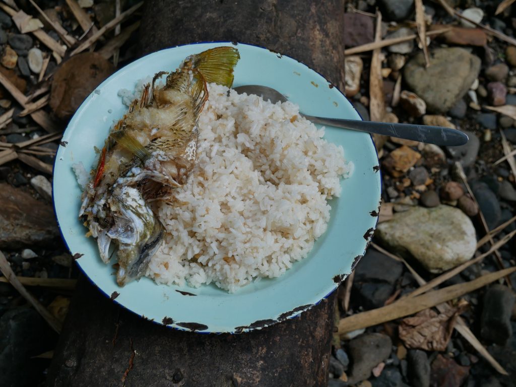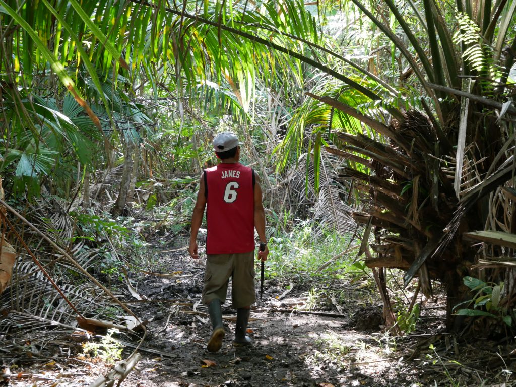 Rund um das Dorf liegen ein paar Plantagen. Hier entdeckten wir schon am ersten Tag eine zwei Meter lange Schlange, die aber sofort Reißaus nahm. Flüsse, dichte Wälder und ein Sumpf umgeben das Dorf. Dort haben wir Krabben gejagt, als Köder fürs Fischen.