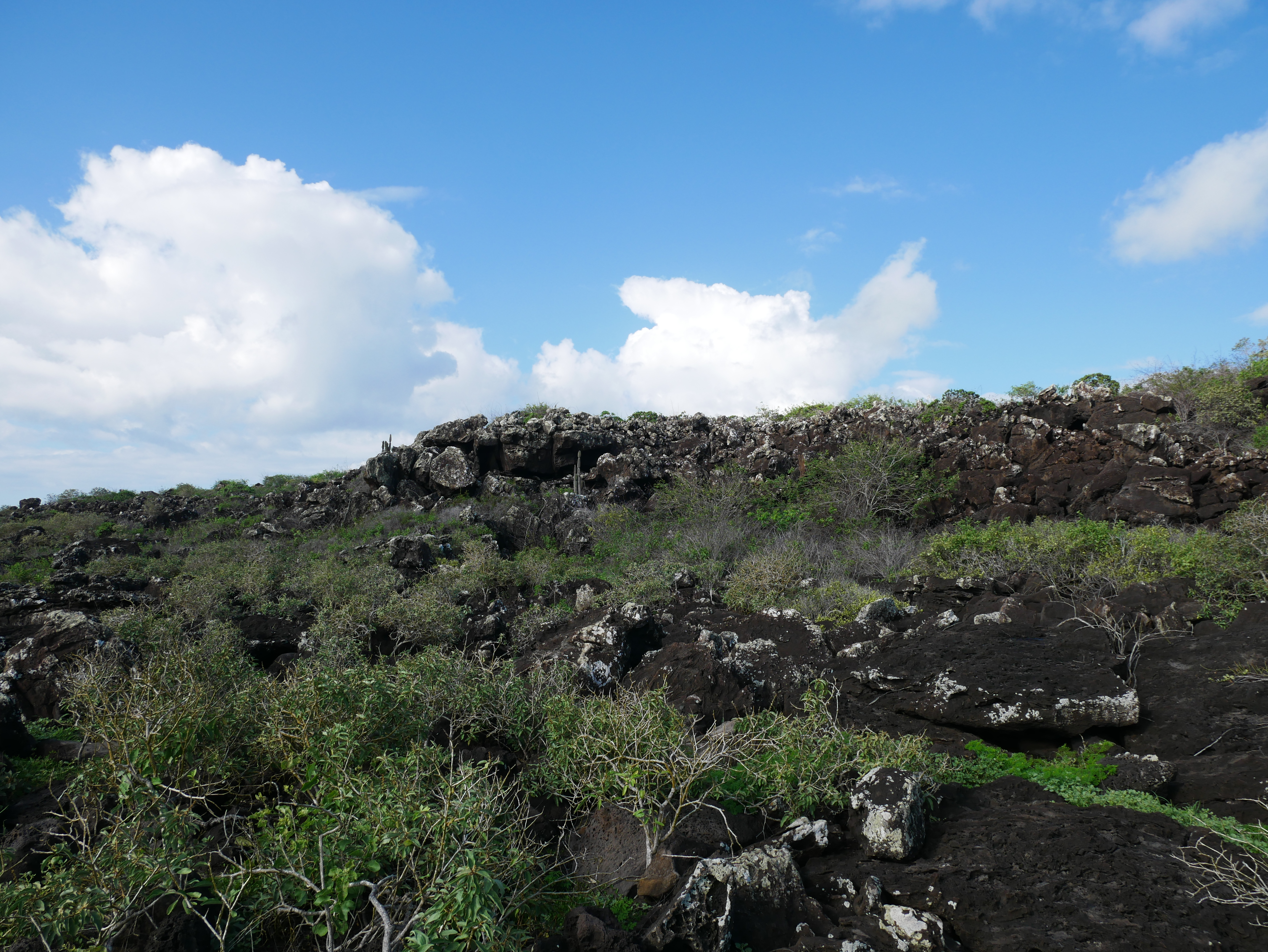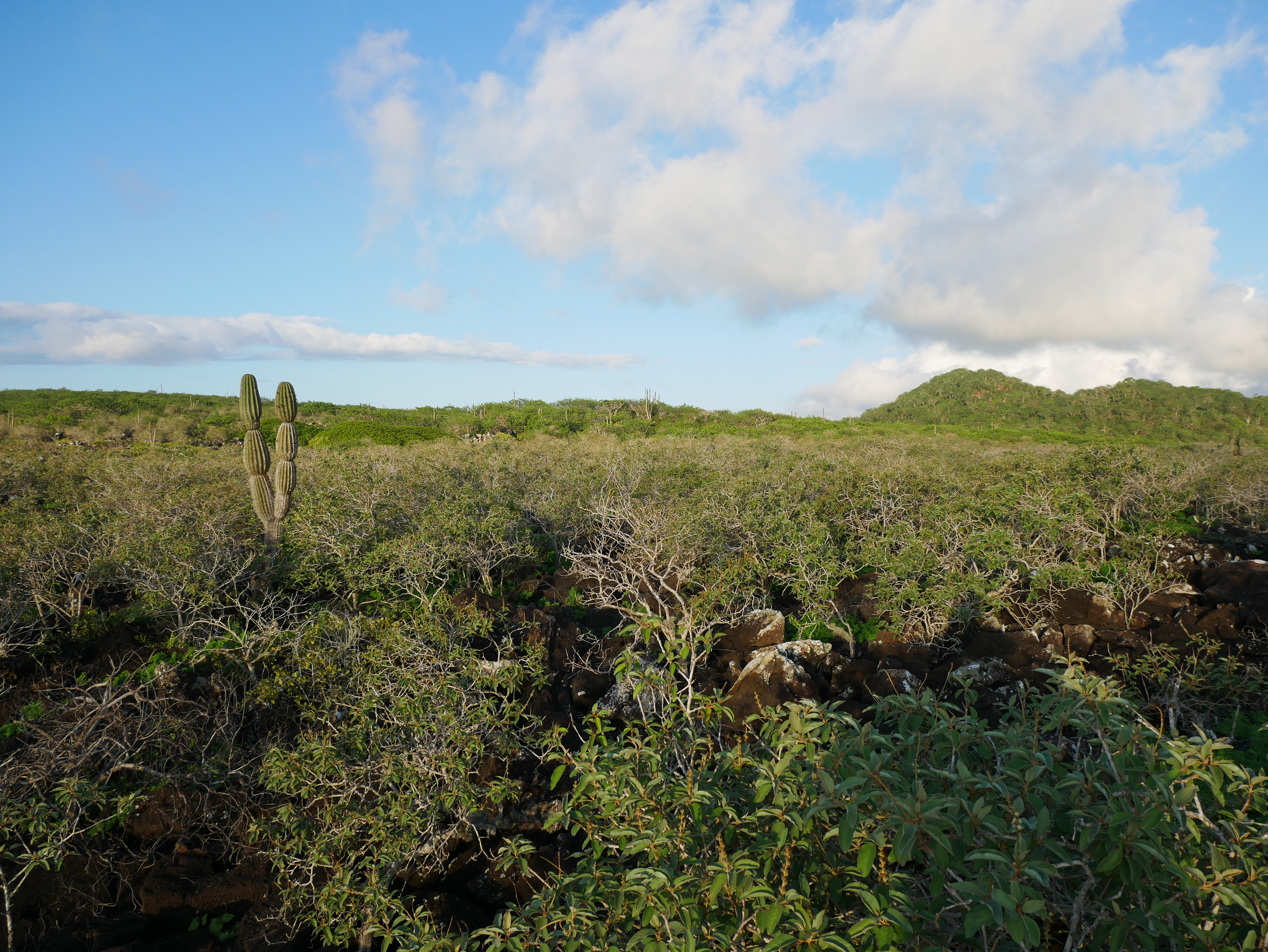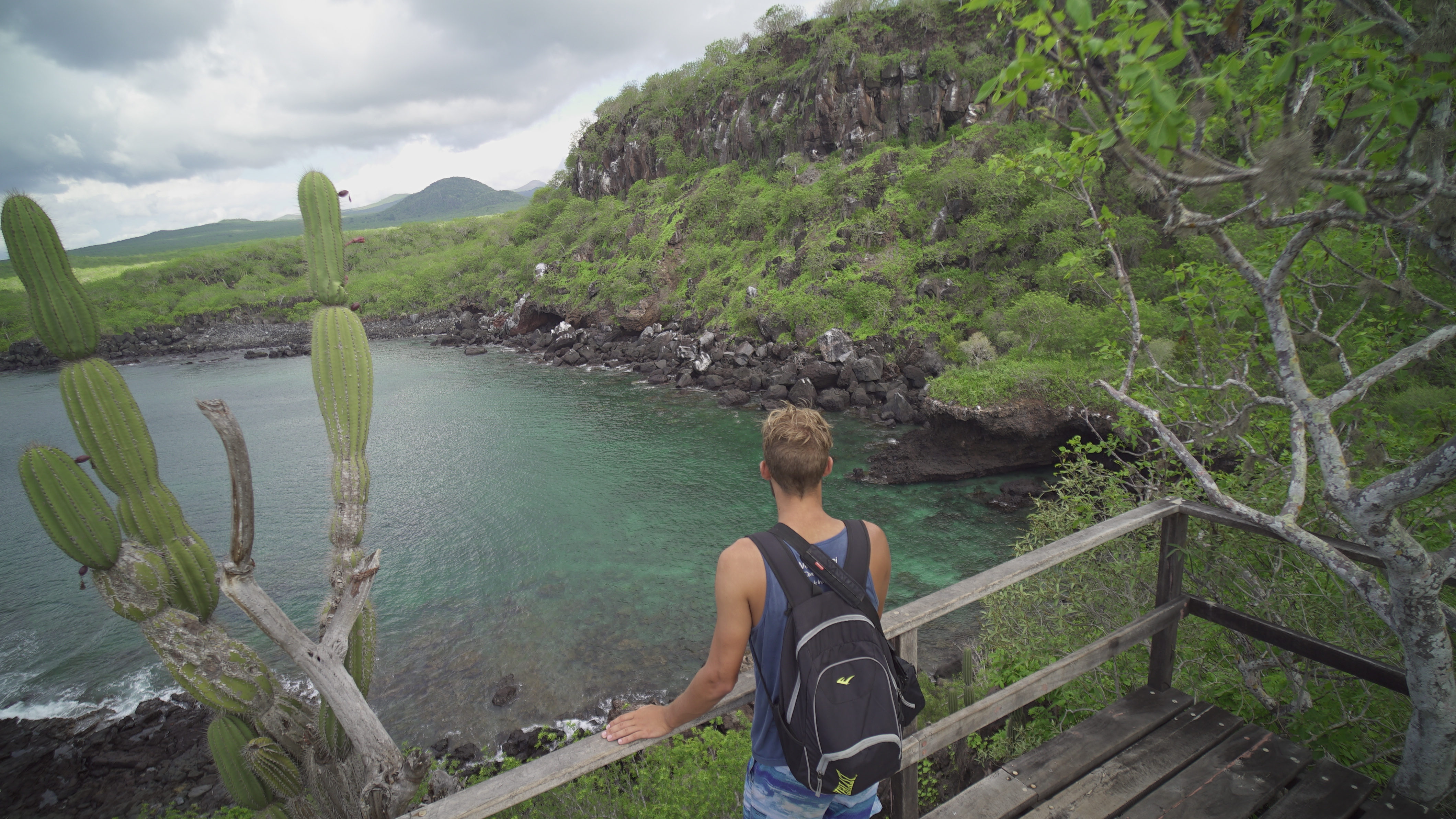 Von Baquerizo Moreno verläuft eine Straße ins Inland der Insel. Diese Straße führt zu diversen Attraktionen wie der Lagune El Junco, einer Schildkrötenaufzuchtstation und dem Strand Puerto Chino. Aber leider gibt es keine Busse, und so gut wie keine Einheimischen, mit denen man per Anhalter fahren könnte. Die einzige Option für Touristen ist also, ein Taxi zu mieten. Und das ist ziemlich teuer. Eine Tour zur El Junco Lagune und zurück (Dauer circa zwei Stunden) kostet 35 Dollar. Wenn man die Straße bis zum Ende abfahren möchte, und sich die verschiedenen Stopps anschauen will, zahlt man deutlich mehr. Eric und ich wollten eigentlich nur El Junco besuchen, aber nicht so viel Geld ausgeben. Wir haben also gezielt andere Taxis angehalten, die bereits Menschen transportierten, und gebeten, uns bei der Lagune rauszuwerfen. Auf diese Weise kamen wir für fünf Dollar pro Person bis zur Lagune, und zum selben Preis zurück in die Stadt.