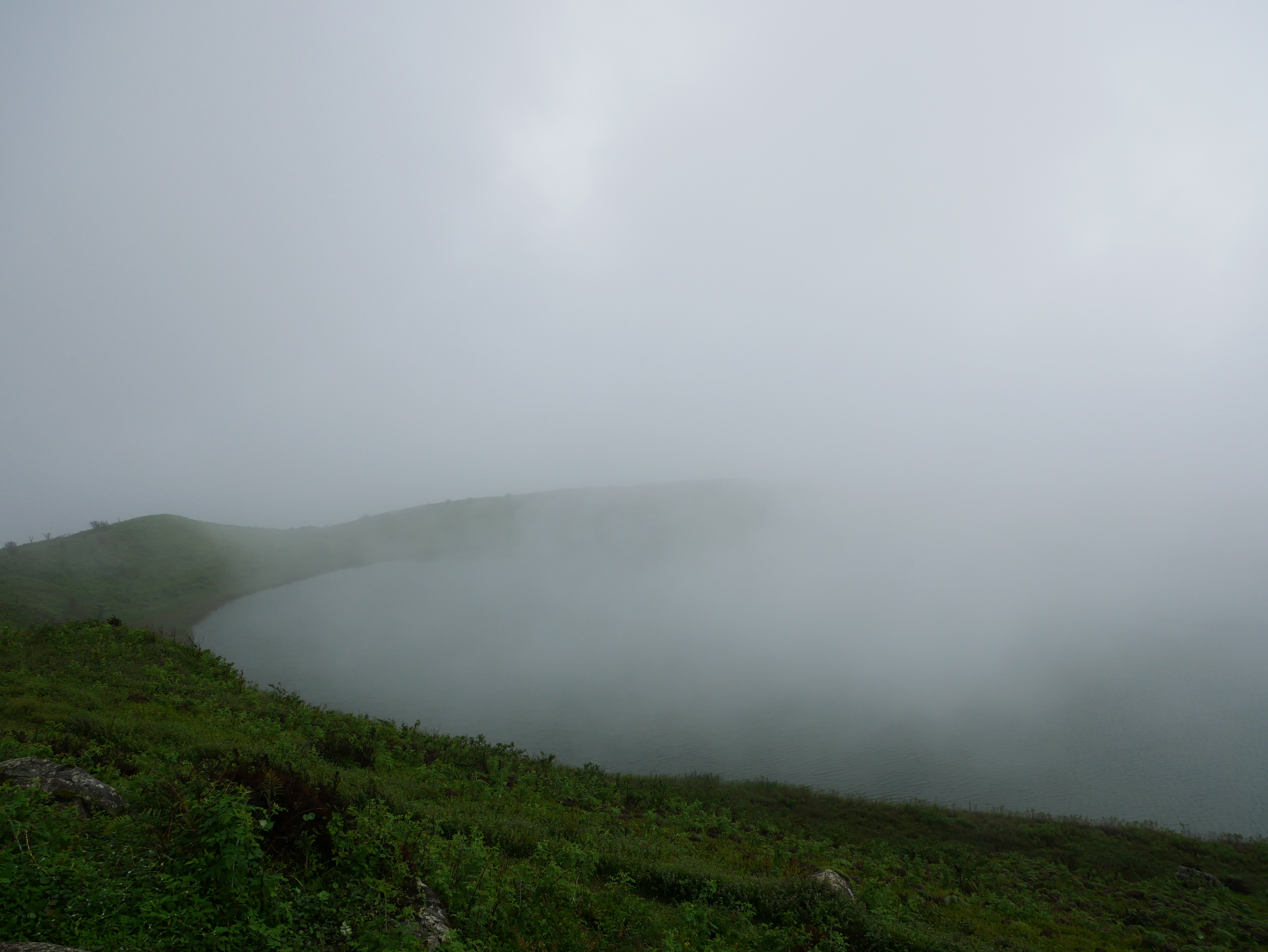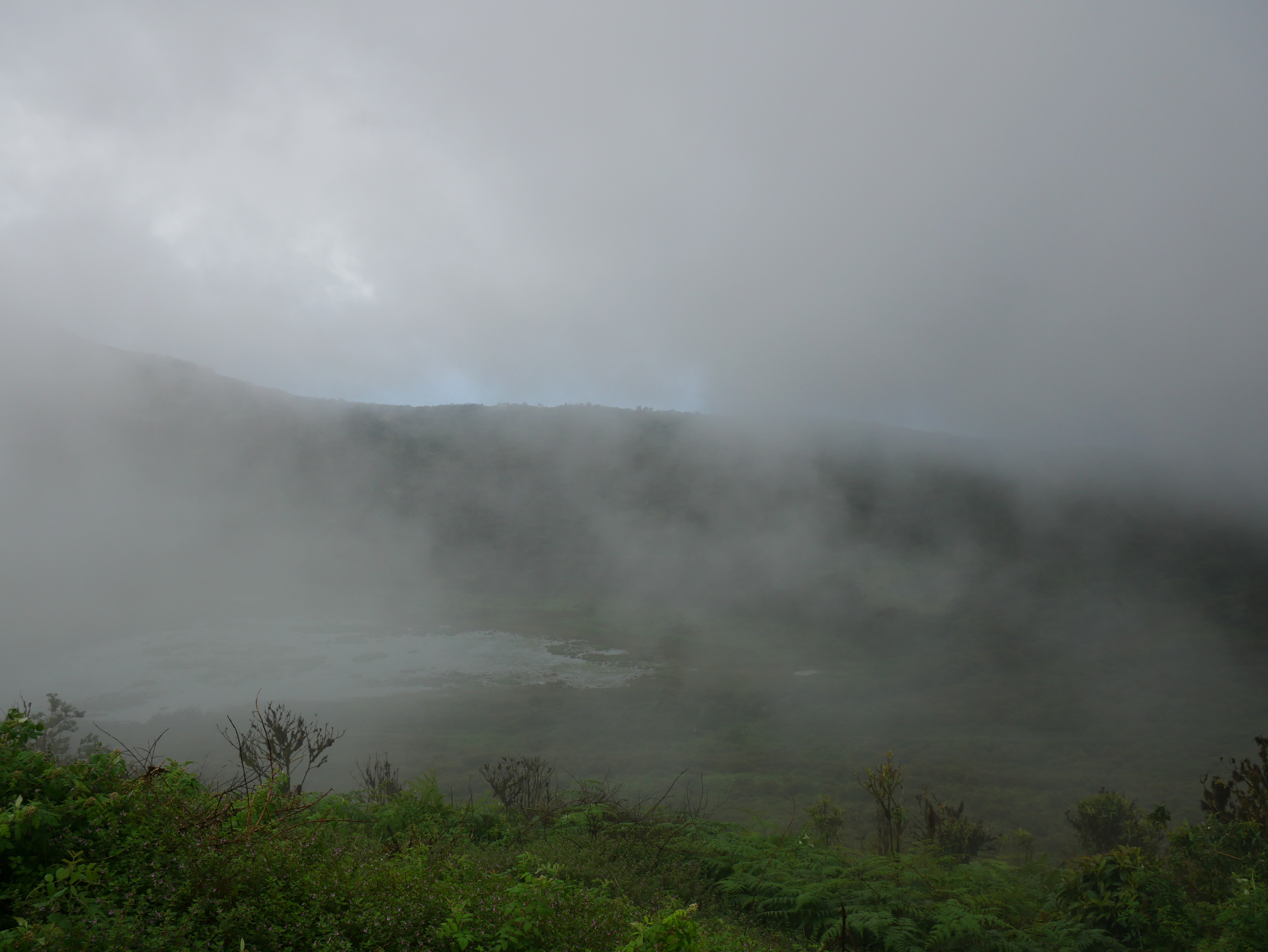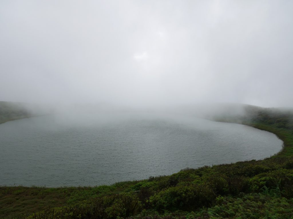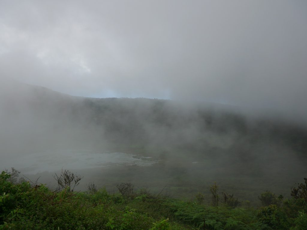 El Junco ist eigentlich ein Vulkankrater, der mit Süßwasser gefüllt ist. Der offizielle Name „El Junco Lagoon“ ist somit eigentlich irreführend, denn es handelt sich um einen Kratersee. Von der Straße aus läuft man circa zehn Minuten eine Treppe den Berg hinauf, und schon nach kurzer Zeit erreicht man den Kraterrand. Ein kleiner Weg führt hinunter zum Ufer des Sees, und innerhalb einer halben Stunde kann man auch den gesamten Krater einmal umrunden. Die Wanderung war sehr schön, allerdings war es hier oben so neblig, dass wir eigentlich nur durch die Wolken gelaufen sind, und kaum freien Blick auf den See oder die Insel hatten. Trotzdem hat es mir gut gefallen, denn hier herrscht eine extreme Ruhe. Wir haben aber auch festgestellt, dass gegen Mittag immer mehr Menschen ankamen. Man sollte also versuchen, so wie wir, schon sehr früh da zu sein.