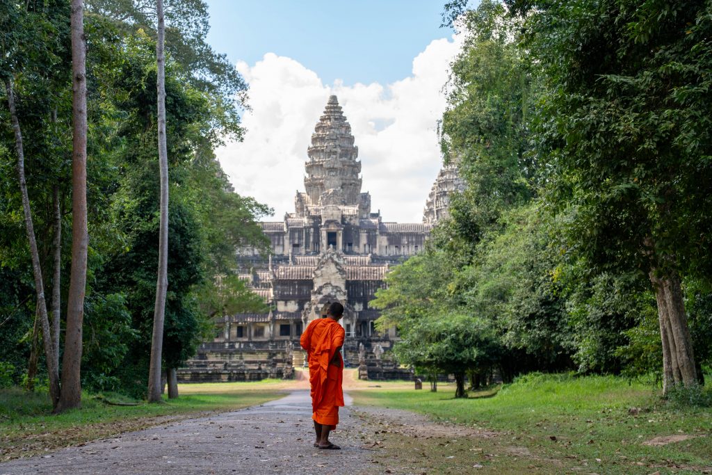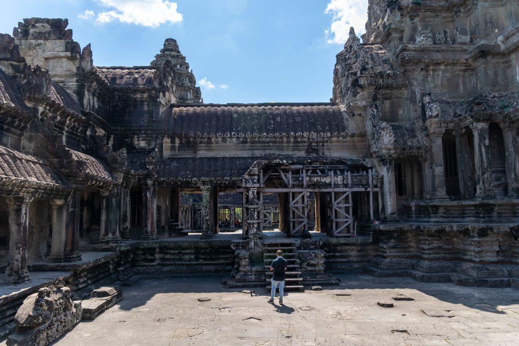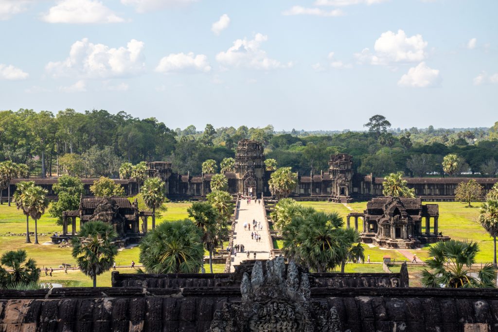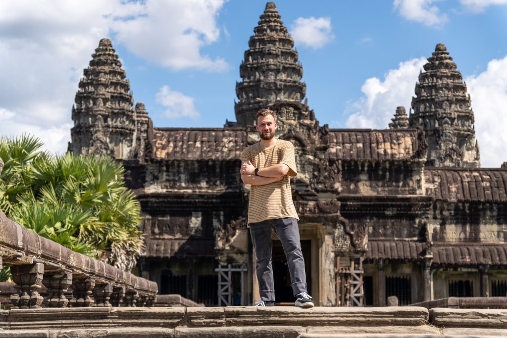 An einem Dienstagnachmittag kam ich in Kambodscha an. Es war ein kurzer Flug von Kuala Lumpur nach Siem Reap. Erst hatten wir den Golf von Thailand überquert und dann konnte ich aus der Luft schon die ersten Eindrücke von Kambodscha gewinnen. Das kleine Land in Südostasien würde ich nun einen Monat lang bereisen. Ich sah den gewaltigen Tonle Sap von oben, einen riesigen See mit hunderten Inseln und kleinen Fischerdörfern. Der Flieger setzte auf und ich war da. Zu Fuß lief ich durch den offenen Flughafen und spürte sofort die trockene Hitze auf der Haut und in den Lungen. Ich freute mich auf die kommenden Wochen. Beginnen wollte ich meine Reise in Siem Reap, dem wohl touristischsten Ort in einem ansonsten wenig besuchten Land. Hier zieht ein gigantischer Tempel rund ein bis zwei Millionen Gäste pro Jahr an. Angkor Wat wird oft als das weltgrößte religiöse Bauwerk bezeichnet. Auch ich wollte die Anlage unbedingt sehen.