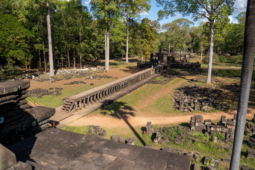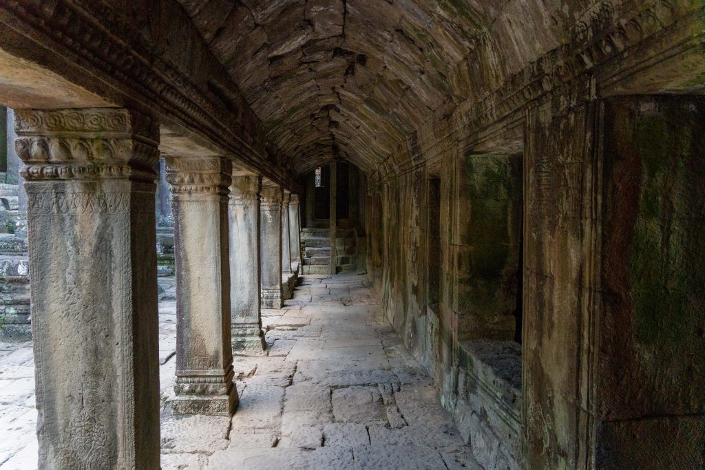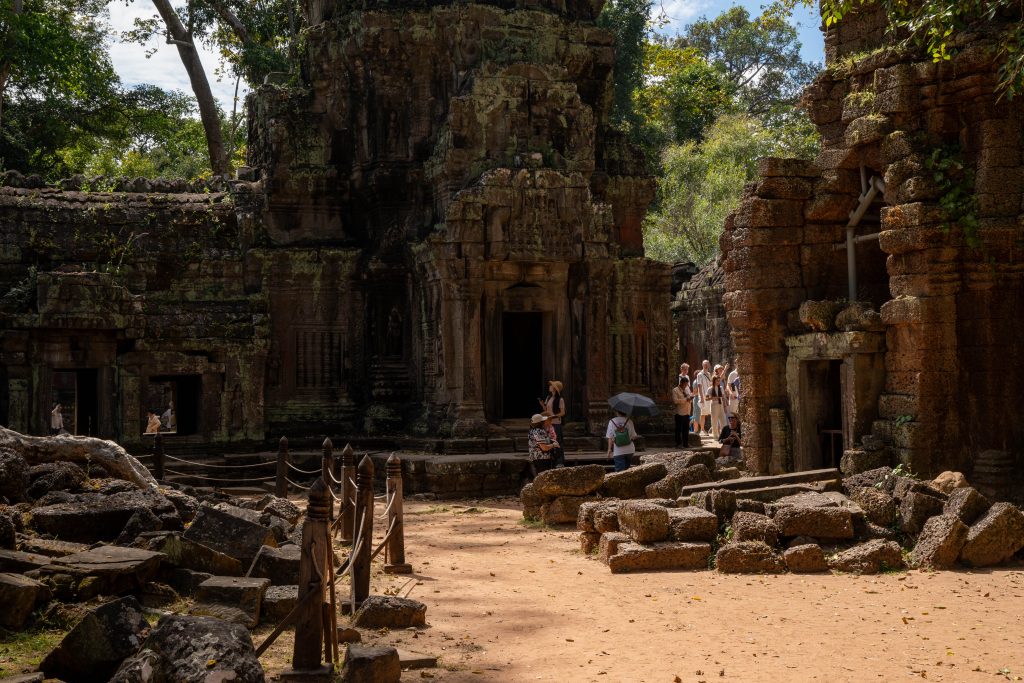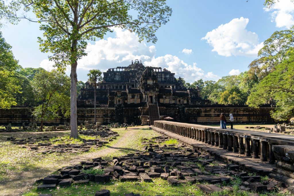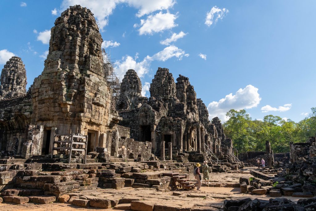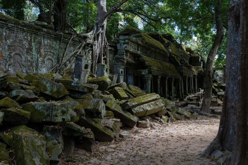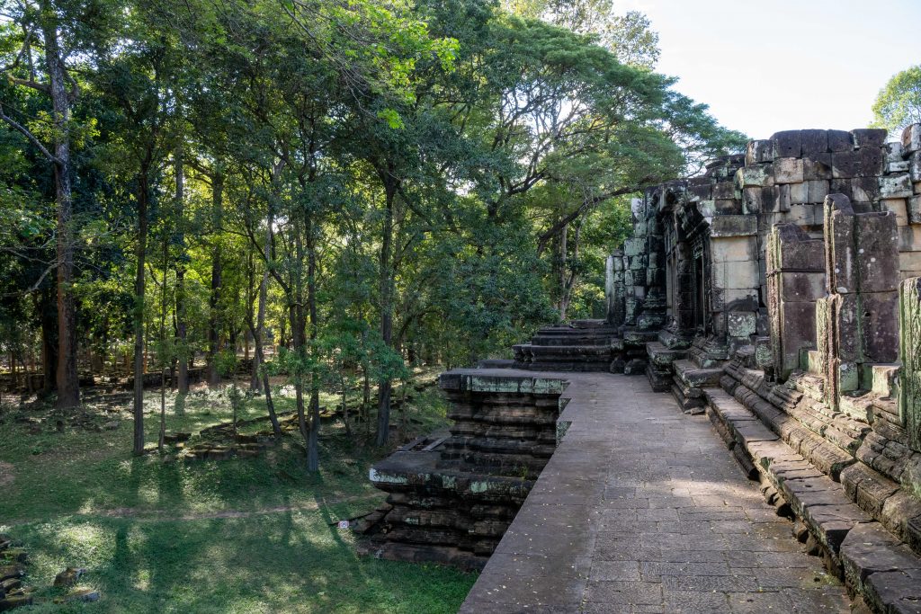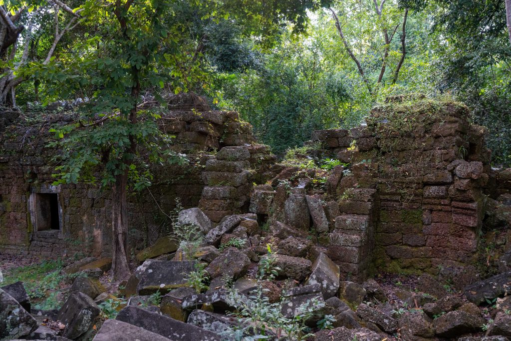 Den Rest des Tages nutzte ich, um weitere Tempel zu besuchen. Ganz in der Nähe befindet sich der Bayon Tempel, der wiederum von weiteren Bauwerken umgeben ist. Die Strukturen hier sind deutlich verfallener. Zwischen den Bäumen stapeln sich Trümmerhaufen eingefallener Mauern und Türme. Doch die einstige Pracht ist nach wie vor erkennbar und man kann Archäologen beobachten, die die Steinhaufen sortieren und wohl nach und nach wieder aufbauen werden.