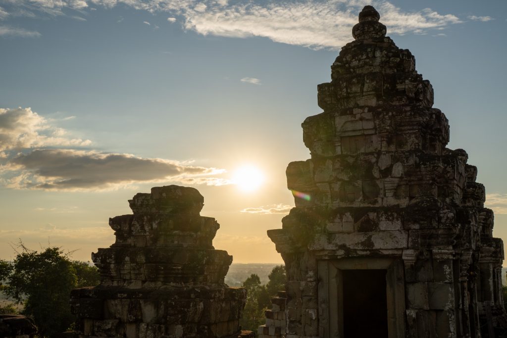 Zum Sonnenuntergang ließ ich mich dann von den Massen mitreißen und kletterte, so wie dutzende andere Menschen, auf den Phnom Bakheng. Es ist der wohl bekannteste Sunset Point in Siem Reap. Doch es waren so viele Menschen versammelt, dass ich nach drei Minuten umkehrte und mir das goldene Abendlicht stattdessen in einem einsamen Reisfeld ansah. Zurück ging es bei Dämmerung durch kleine Dörfer Richtung Siem Reap. Es war ein wundervoller erster Tag. Mich begeisterten nicht nur die Tempel, sondern auch die schönen Begegnungen mit den Menschen.