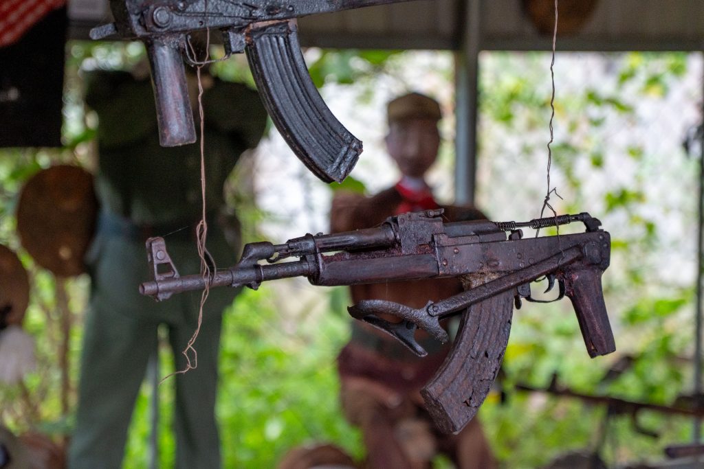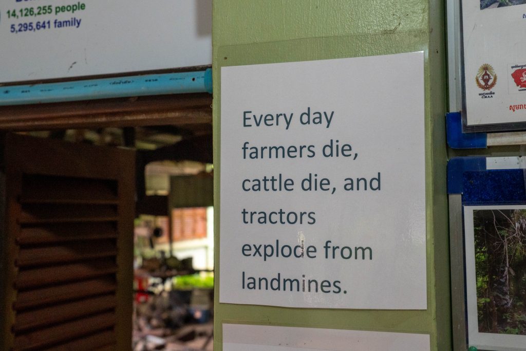 Das Landminenmuseum wurde von Aki Ra errichtet. Seine Geschichte verdeutlicht den Schrecken von damals. Er ist circa 1970 geboren, aber ganz genau weiß er es nicht. Als er noch ein Kind war, kamen in Kambodscha die Roten Khmer an die Macht. Khmer, so heißt die größte Bevölkerungsgruppe des Landes. Rot, denn die Rebellen wollten einen kommunistischen Bauernstaat errichten und erklärten Intellektuelle, Stadtbewohner, Brillenträger, Weitgereiste und Menschen mit weichen Händen zum Feindbild. Jeder, der nicht dem Ideal eines bildungslosen und folgsamen Bauern entsprach, war verdächtig. In grausamen Vernichtungslagern wurden zwischen 1975 und 1979 fast zwei Millionen Menschen getötet, rund ein Viertel der Bevölkerung. So auch die Eltern von Aki Ra. Er selbst wurde in ein Camp der Rebellen verschleppt, die ihn zwangen, an den Landesgrenzen Minen zu vergraben. Die Roten Khmer kämpften gegen die vietnamesische Armee. Tatsächlich wurde Aki Ra wenig später vom Gegner gefangen genommen, jedoch nicht umgebracht, da er immer noch sehr jung war. Aber auch die Vietnamesen zwangen ihn, Minen zu vergraben. Im Alter zwischen 10 und 20 Jahren schlug er sich durch den dichten Dschungel und verlegte tausende Sprengfallen. Heute ist er eine wichtige Figur in der Minenräumung des Landes. Denn 1991 wechselte er die Seiten und begann, die Minen wieder auszugraben. Anfangs unbezahlt und im kleinen Stil, doch inzwischen leitet er eine NGO, die großflächig betroffene Gebiete bereinigt. Noch heute liegen nach seiner Schätzung rund sechs Millionen Landminen in Kambodscha. Immer noch werden Menschen Opfer der grausamen Sprengfallen. Das Museum erzählt Aki Ras Geschichte. Und ich traf ihn sogar selbst. Aufgrund einer Erkrankung hat er seine Einsätze bis Anfang 2026 unterbrochen. Sehr lange unterhielt ich mich mit ihm. Aki Ra ist ein Mann, der sein Schicksal akzeptiert hat. Ich glaube, dass ein solcher Horror in jedem Menschen tiefe Spuren hinterlässt. Er schreibt in einem Buch, dass er auch heute noch unter Albträumen leidet. Als Kind gehorchte er den Zwängen der Mörder seiner Eltern. Irgendwann glaubte er die Propaganda der Roten Khmer sogar selbst. Minen wurden seine Freunde, so sagt er. Aki Ra benutzte sie auch zum Fischen oder Jagen. Doch er beobachtete ebenfalls, wie unschuldige Dorfbewohner den Tod erlitten. Diese Begegnungen lösten in ihm Schuldgefühle aus, die schließlich zur Motivation seiner heutigen Arbeit wurden. Die ersten Minen grub er einfach mit dem Taschenmesser und Stöcken aus. Dabei kam ihm die Ortskenntnis zugute. Er wusste genau, wo er die Minen finden würde. Er sammelte sie und verbrannte sie jeden Abend im Lagerfeuer, so sagte er mir. Die Regierung stoppte ihn im Jahr 2007 und forderte, dass er Sicherheitsstandards umsetzt. Das tut er nun, wenngleich er feststellt, dass er jetzt sehr viel langsamer vorankommt. Die größte Angst in seinem Leben, so sagte er mir im Gespräch, verspürt er bei der Bearbeitung all der Dokumente, die er täglich ausfüllen muss. Als ich ihn traf, saß er am Laptop, übte Lesen und Schreiben.