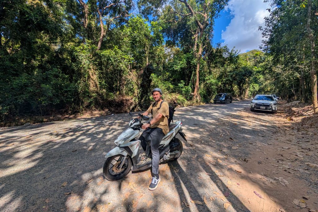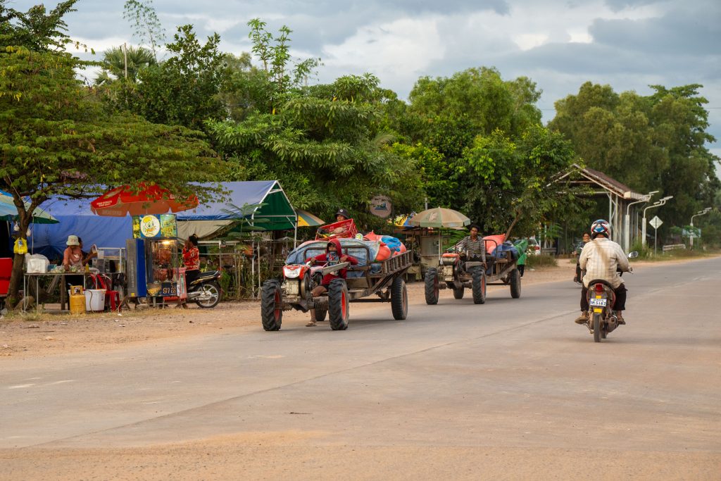 Per Taxi ging es zum Hotel am Rande von Siem Reap. Mein Fahrer war der erste Einheimische, dem ich begegnete. Ich fragte ihn eine Stunde lang aus. Gelernt habe ich unter anderem, dass Siem Reap wie zu erwarten auf den Tourismus angewiesen ist und die Corona-Pandemie hier für viele Menschen existenzbedrohend war. Er hat in dieser schweren Zeit angefangen, palettenweise gebrauchte Kleidung aus der Hauptstadt Phnom Penh heranzuschaffen und über eine Facebookseite zu verkaufen. So kam er durch, ist aber bis heute verschuldet. Es war ein erster Einblick in das Leben der Menschen in einem Land, in dem der jährliche Bruttoverdienst unter 3.000 US-Dollar liegt. Auf den Feldern sah ich Bauern und zwischendrin immer wieder Seen, in denen Menschen bis zum Hals im Wasser standen, um Netze zu verlegen. Es herrschte geschäftiges Treiben, besonders, als wir endlich die Stadt erreichten. Mein Hotel war ruhig gelegen, weit entfernt vom touristischen Zentrum des Ortes. Kaum angekommen nahm ich schon meinen Motorroller in Empfang und war startklar für die nächsten Tage.