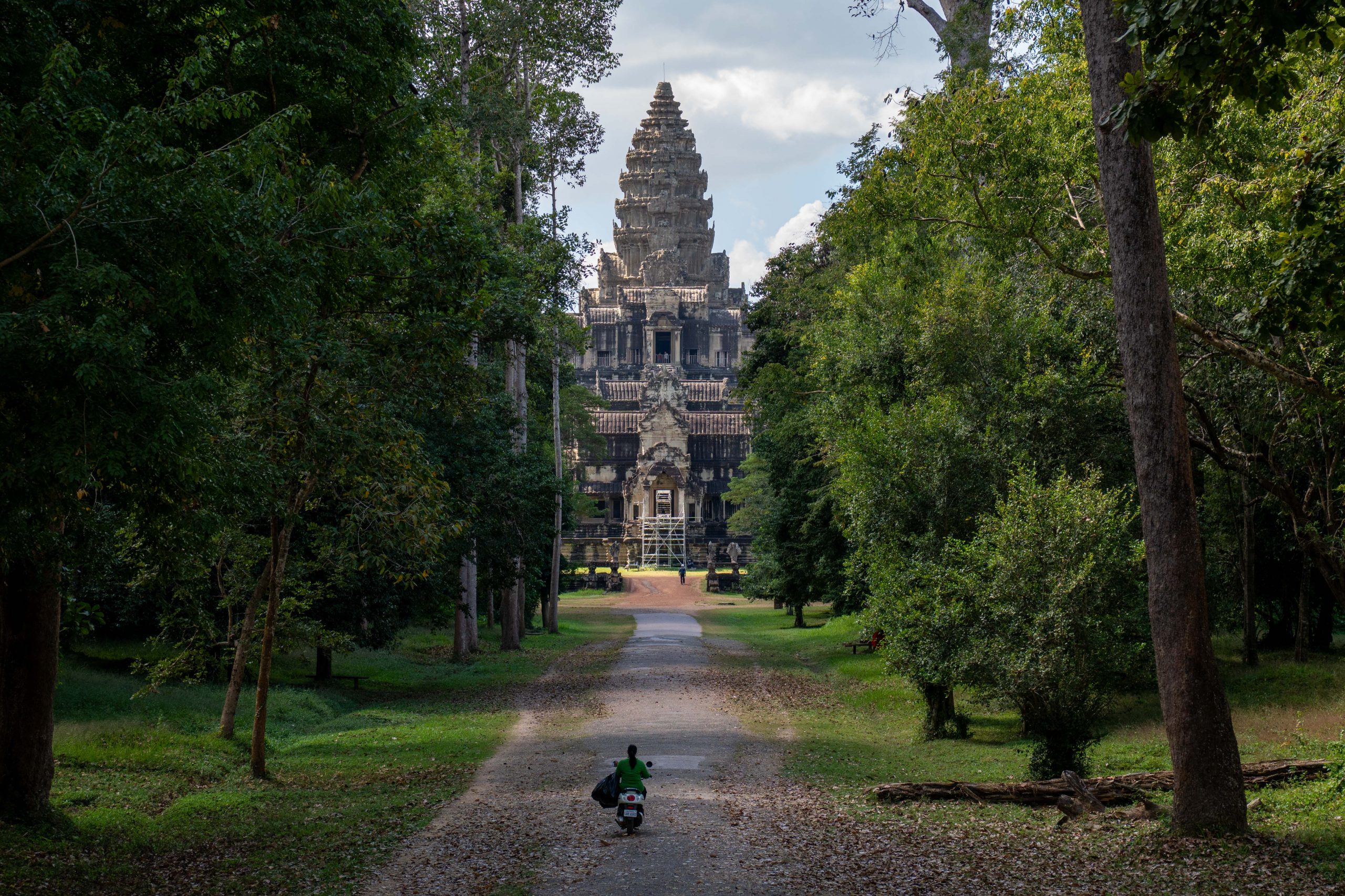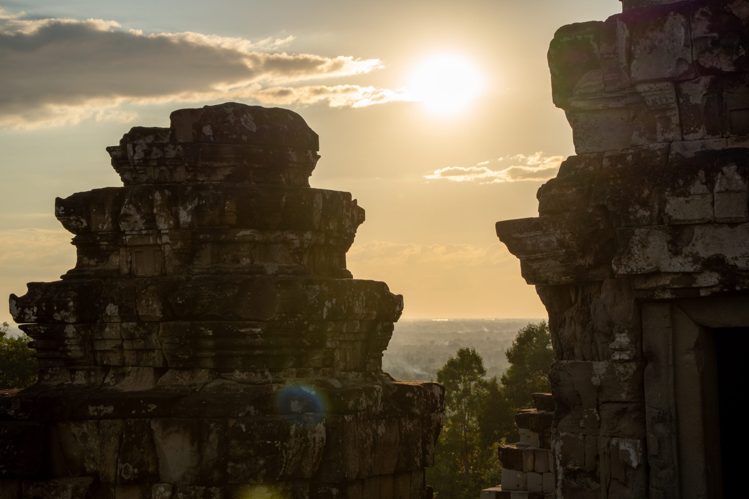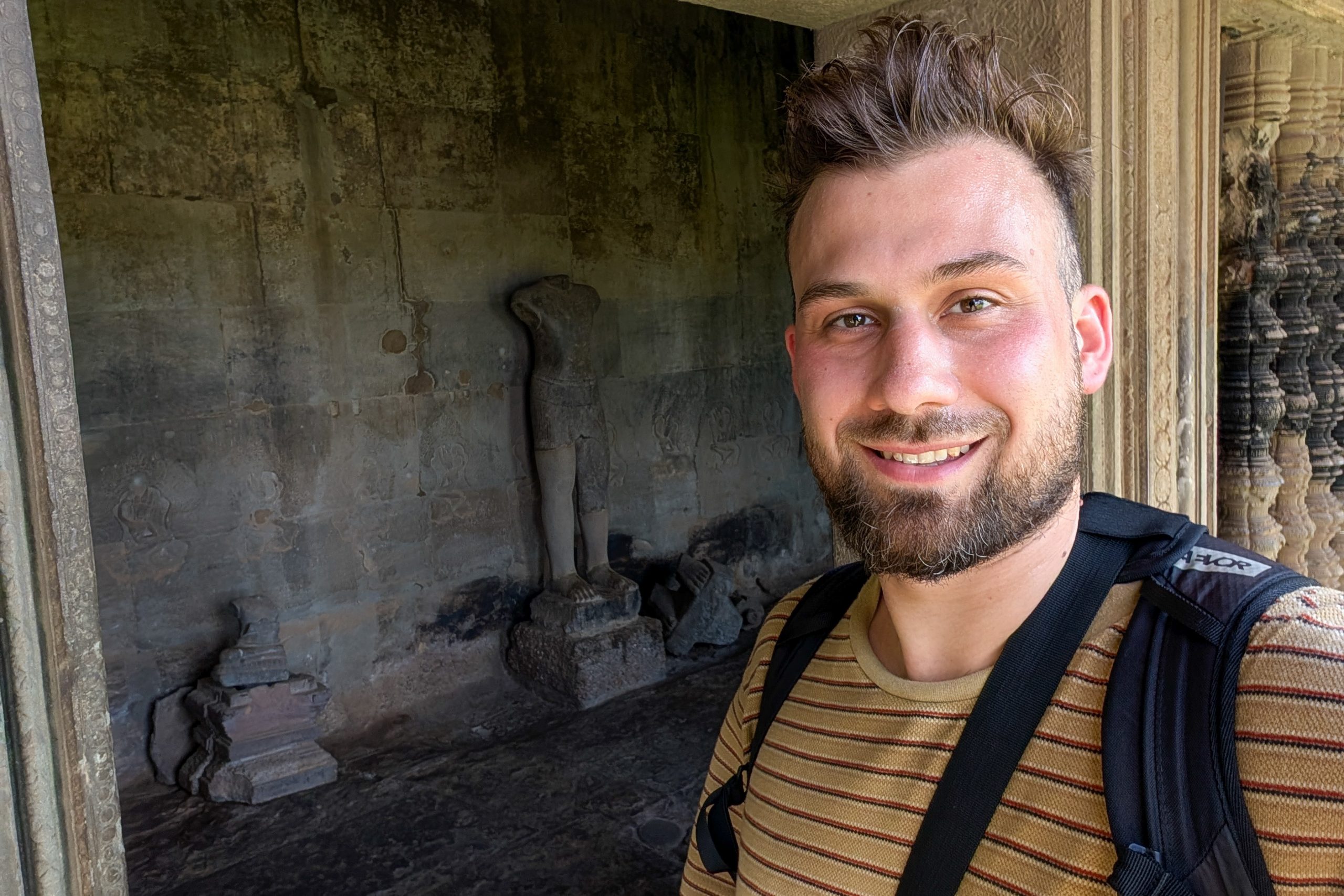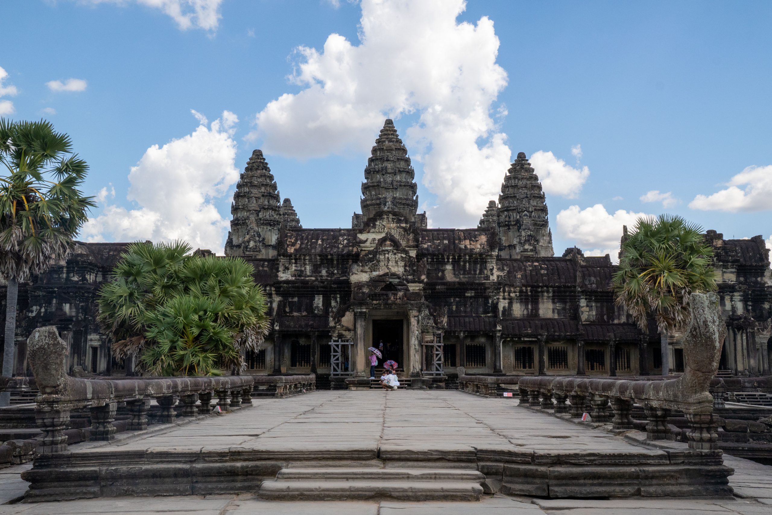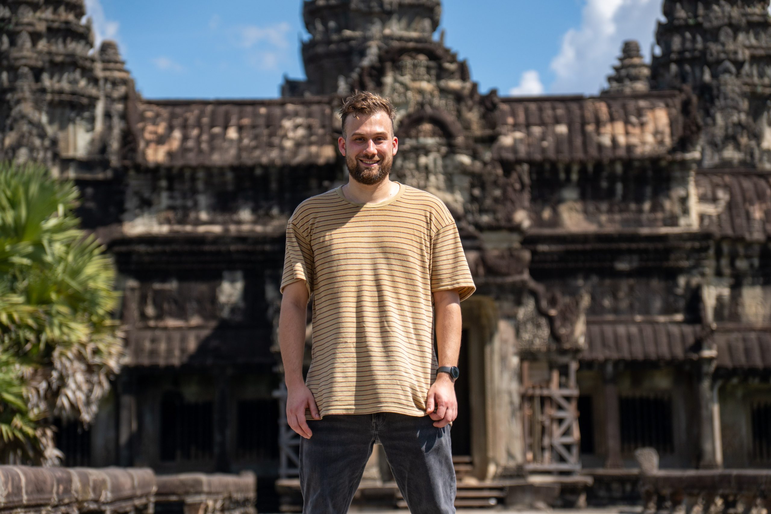 An einem Dienstagnachmittag kam ich in Kambodscha an. Es war ein kurzer Flug von Kuala Lumpur nach Siem Reap. Erst hatten wir den Golf von Thailand überquert und dann konnte ich aus der Luft schon die ersten Eindrücke von Kambodscha gewinnen. Das kleine Land in Südostasien würde ich nun einen Monat lang bereisen. Ich sah den gewaltigen Tonle Sap von oben, einen riesigen See mit hunderten Inseln und kleinen Fischerdörfern. Der Flieger setzte auf und ich war da. Zu Fuß lief ich durch den offenen Flughafen und spürte sofort die trockene Hitze auf der Haut und in den Lungen. Ich freute mich auf die kommenden Wochen. Beginnen wollte ich meine Reise in Siem Reap, dem wohl touristischsten Ort in einem ansonsten wenig besuchten Land. Hier zieht ein gigantischer Tempel rund ein bis zwei Millionen Gäste pro Jahr an. Angkor Wat wird oft als das weltgrößte religiöse Bauwerk bezeichnet. Auch ich wollte die Anlage unbedingt sehen.