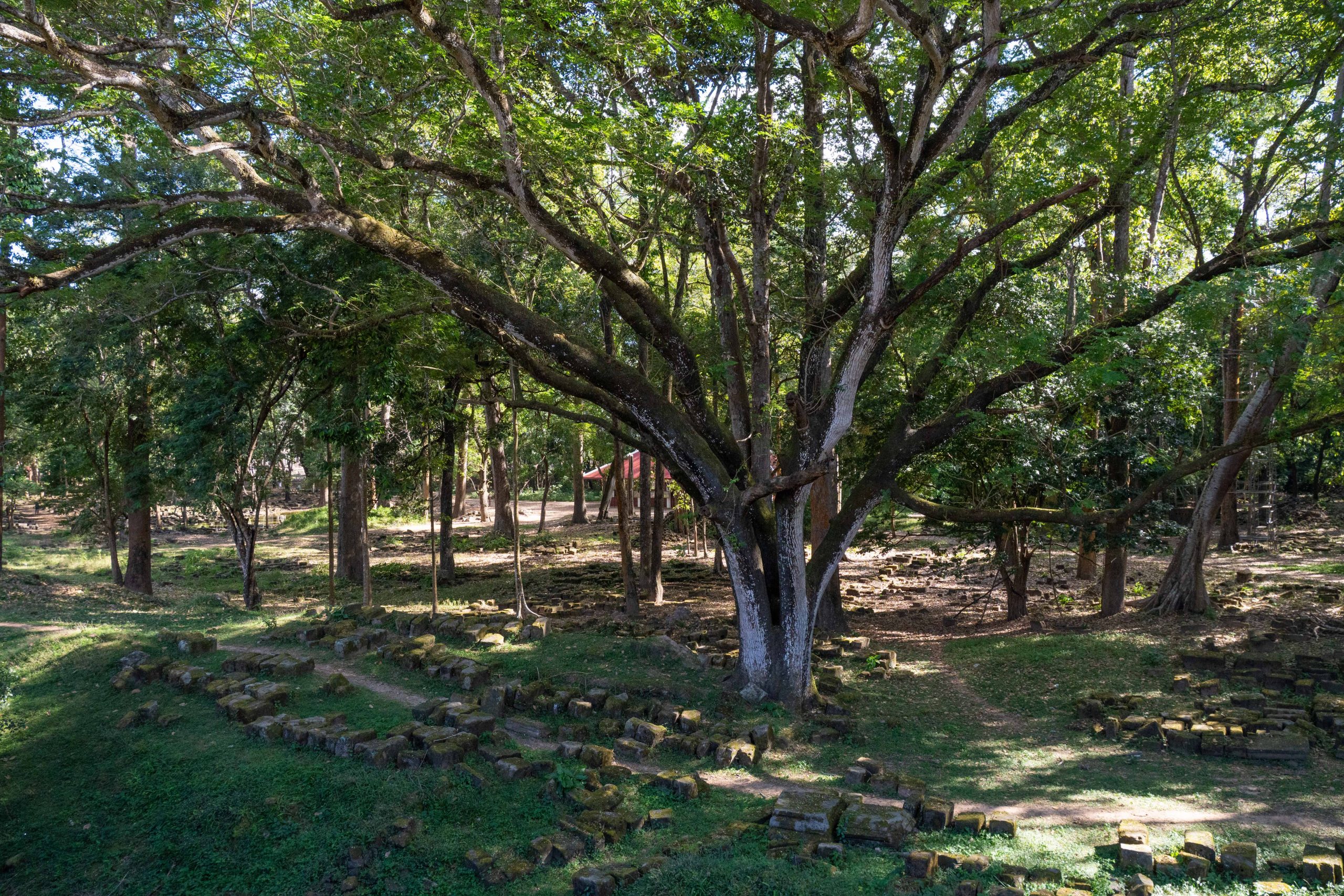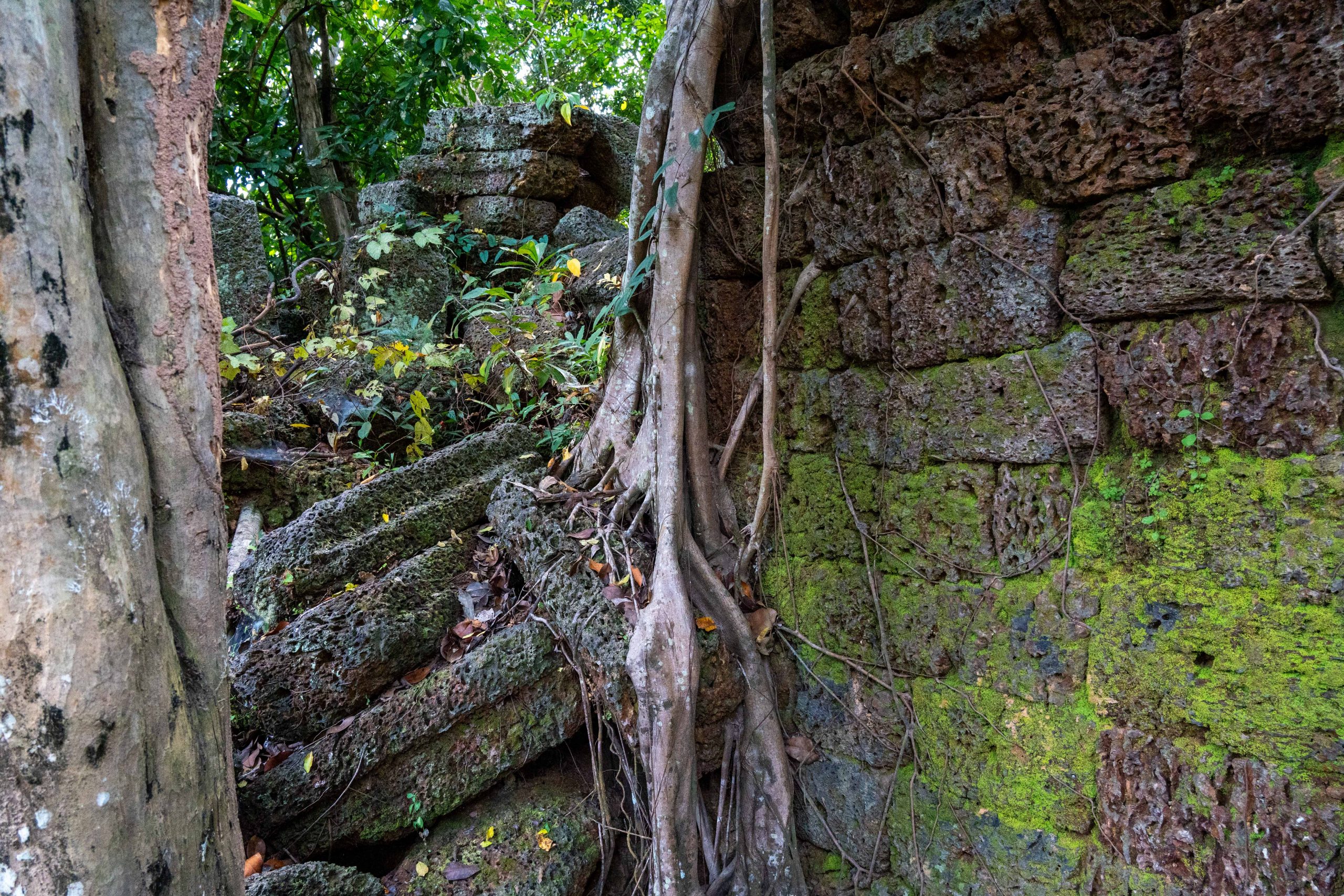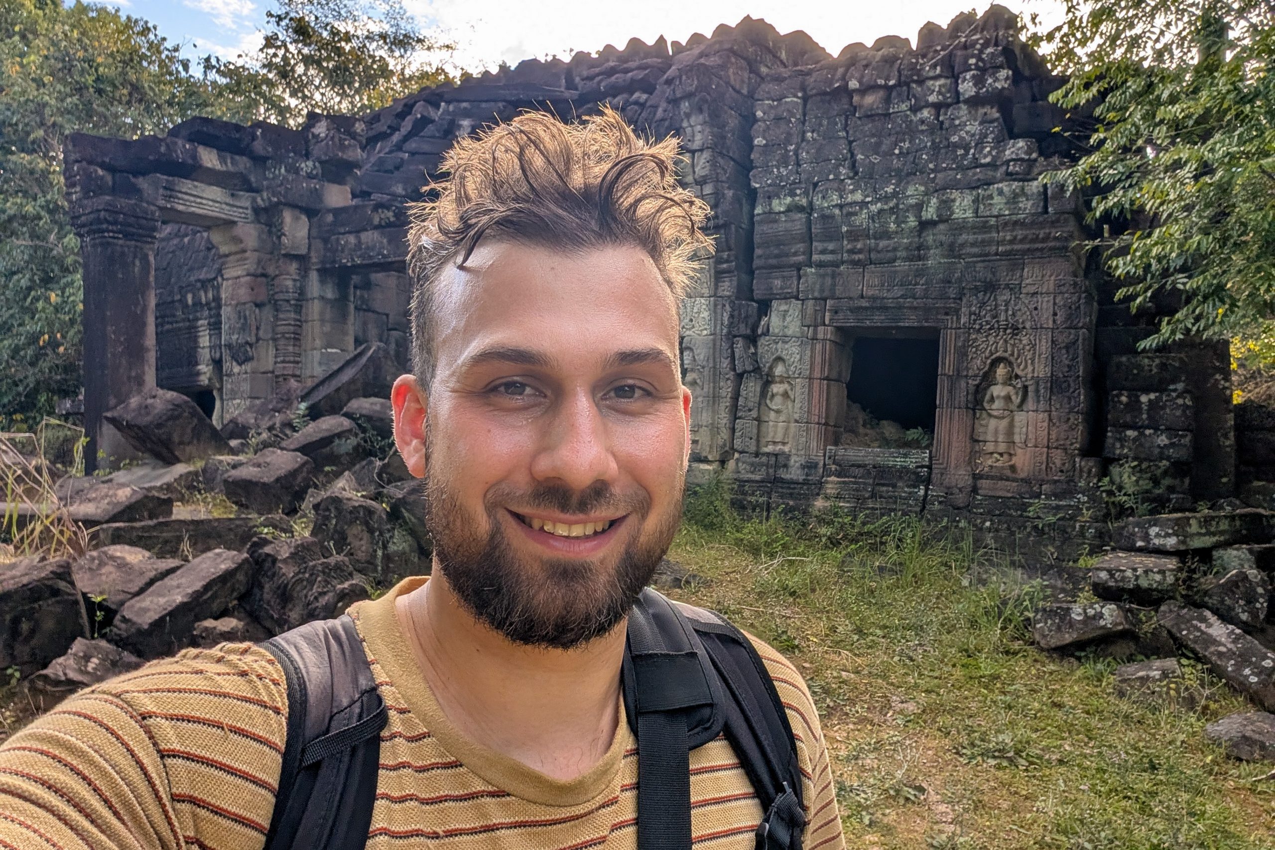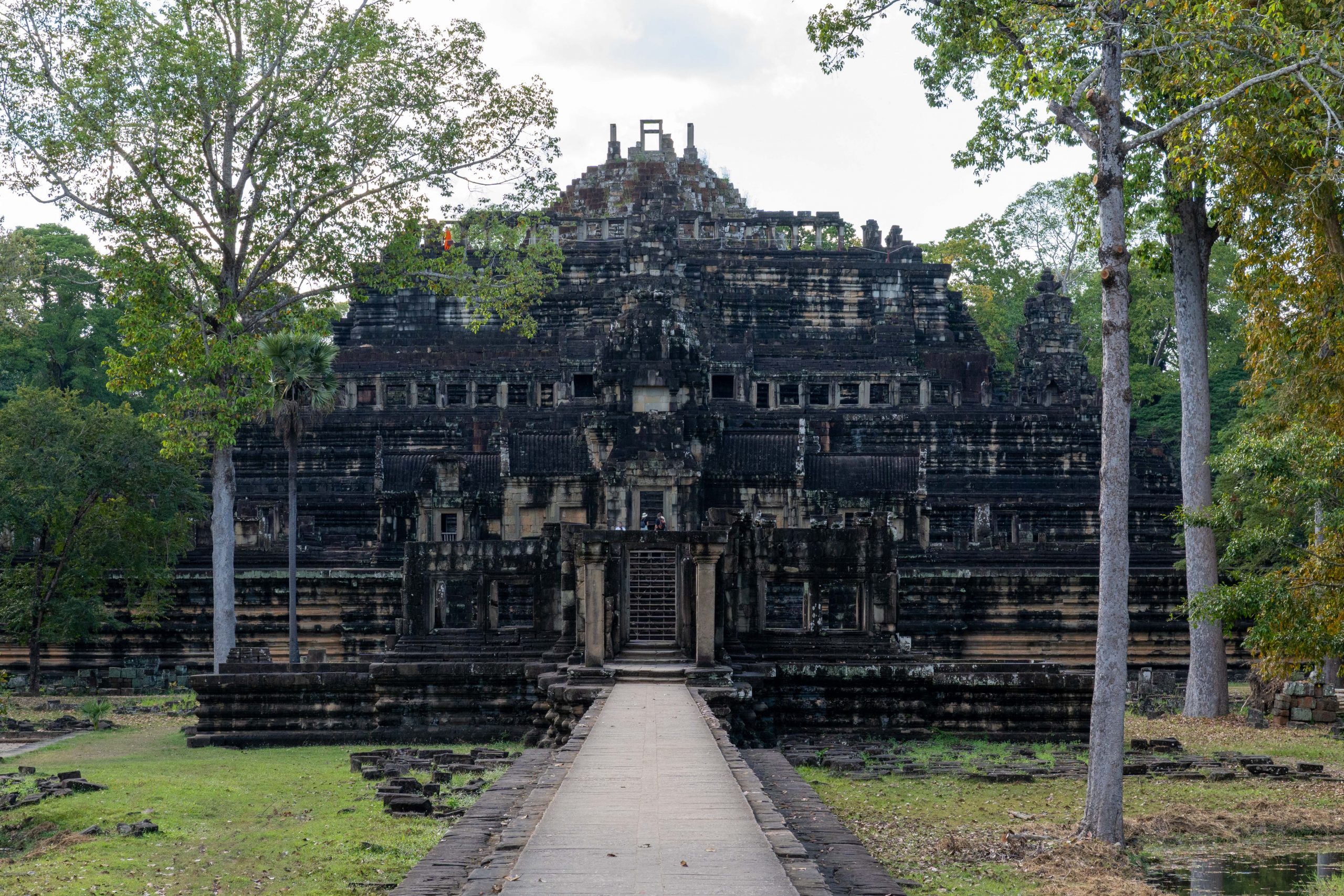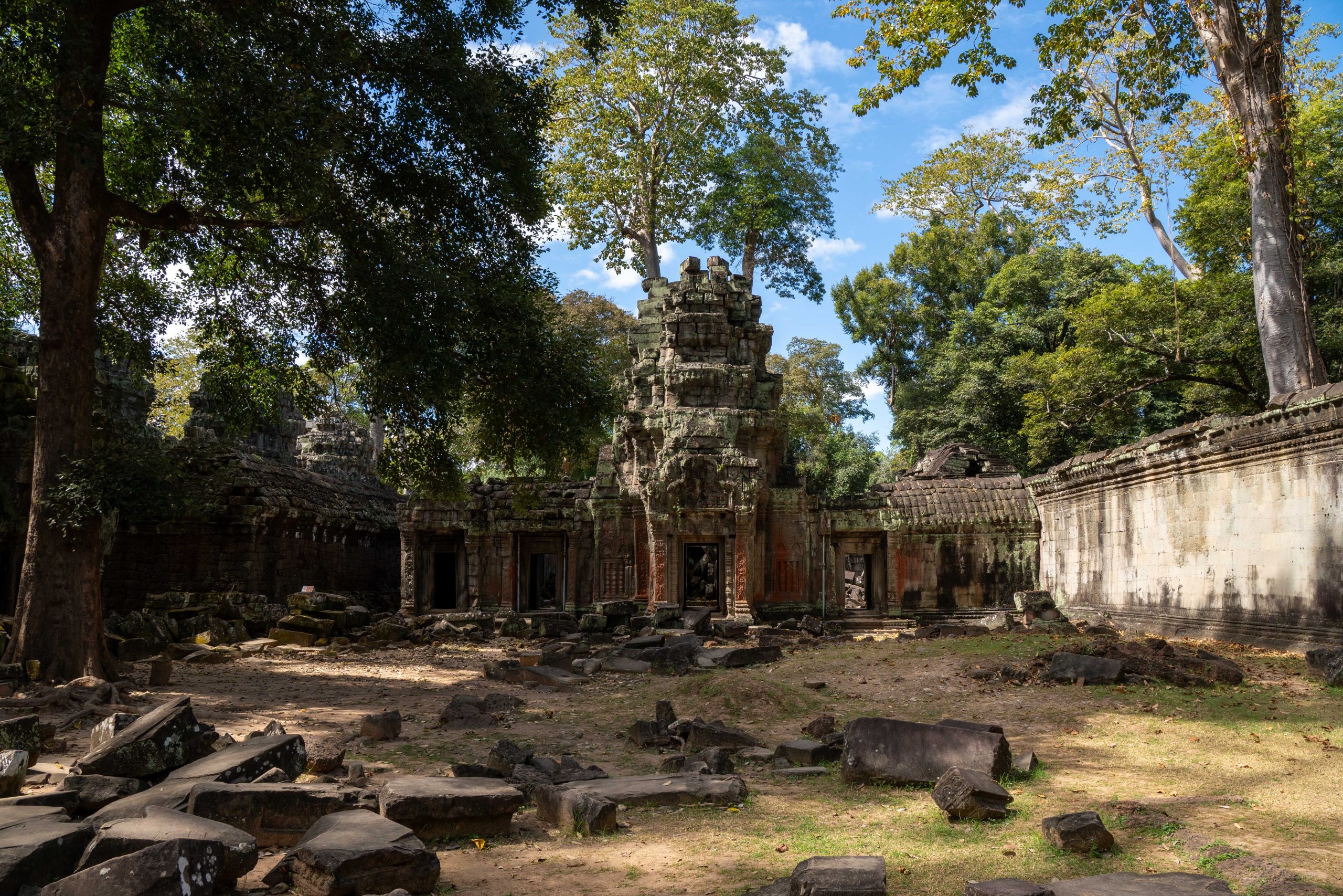 Den Rest des Tages nutzte ich, um weitere Tempel zu besuchen. Ganz in der Nähe befindet sich der Bayon Tempel, der wiederum von weiteren Bauwerken umgeben ist. Die Strukturen hier sind deutlich verfallener. Zwischen den Bäumen stapeln sich Trümmerhaufen eingefallener Mauern und Türme. Doch die einstige Pracht ist nach wie vor erkennbar und man kann Archäologen beobachten, die die Steinhaufen sortieren und wohl nach und nach wieder aufbauen werden.