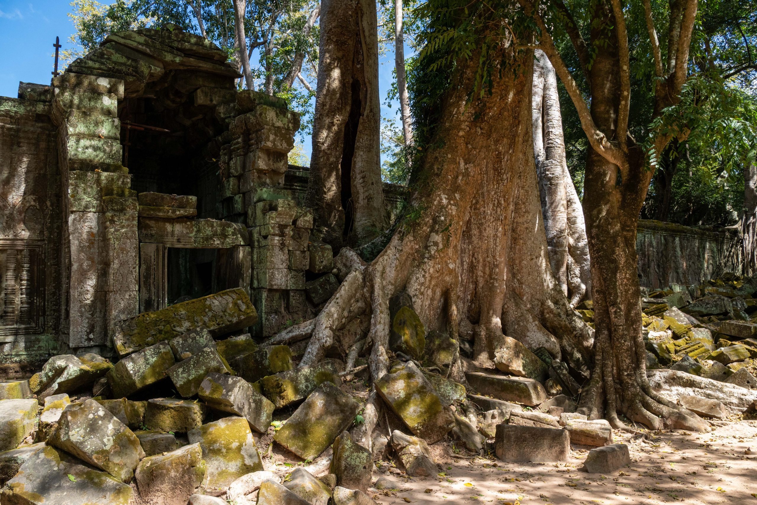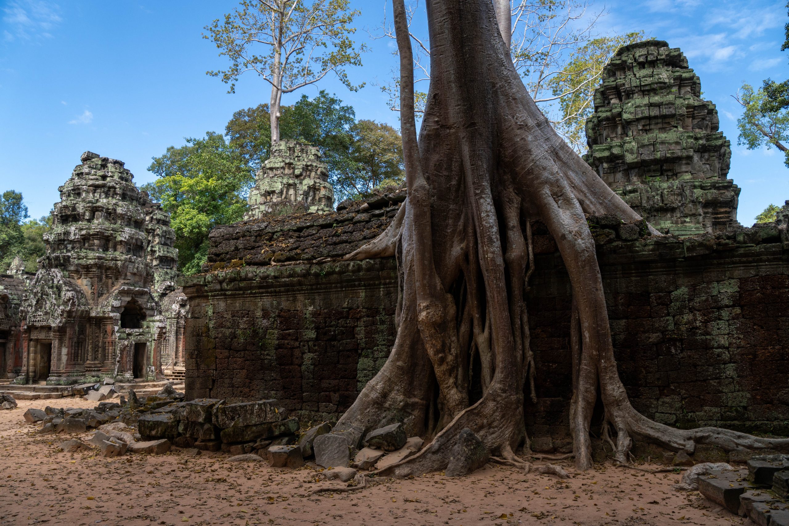 Tags darauf hatte ich ein wichtiges Ziel. Ich wollte mir das Cambodia Landmine Museum ansehen. Auf dem Weg dorthin hielt ich an einem letzten Tempel. Der Ta Prohm ist besonders schön, weil riesige Bäume die Gemäuer mit ihren Wurzeln umschlingen.