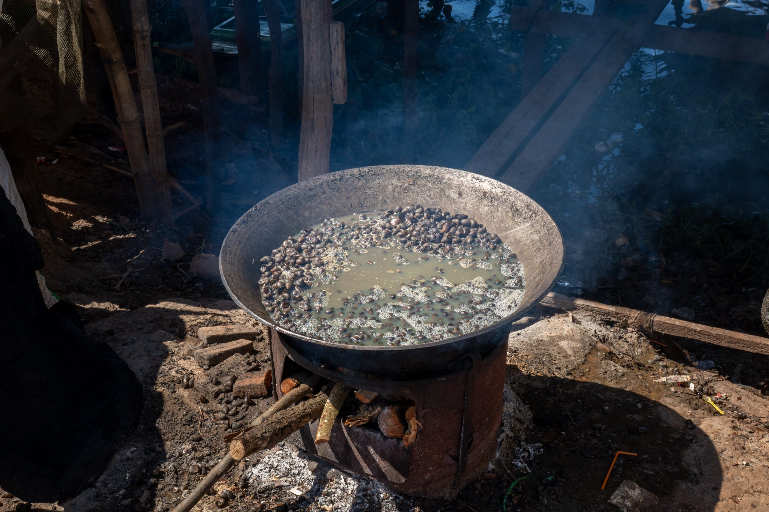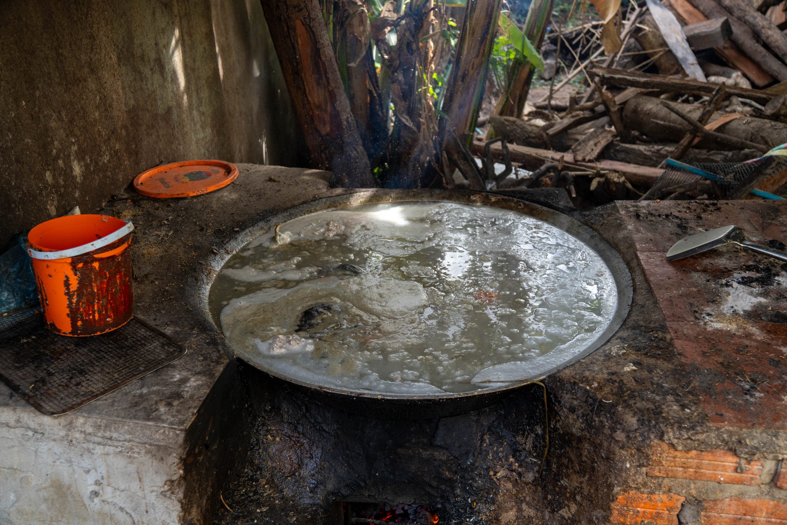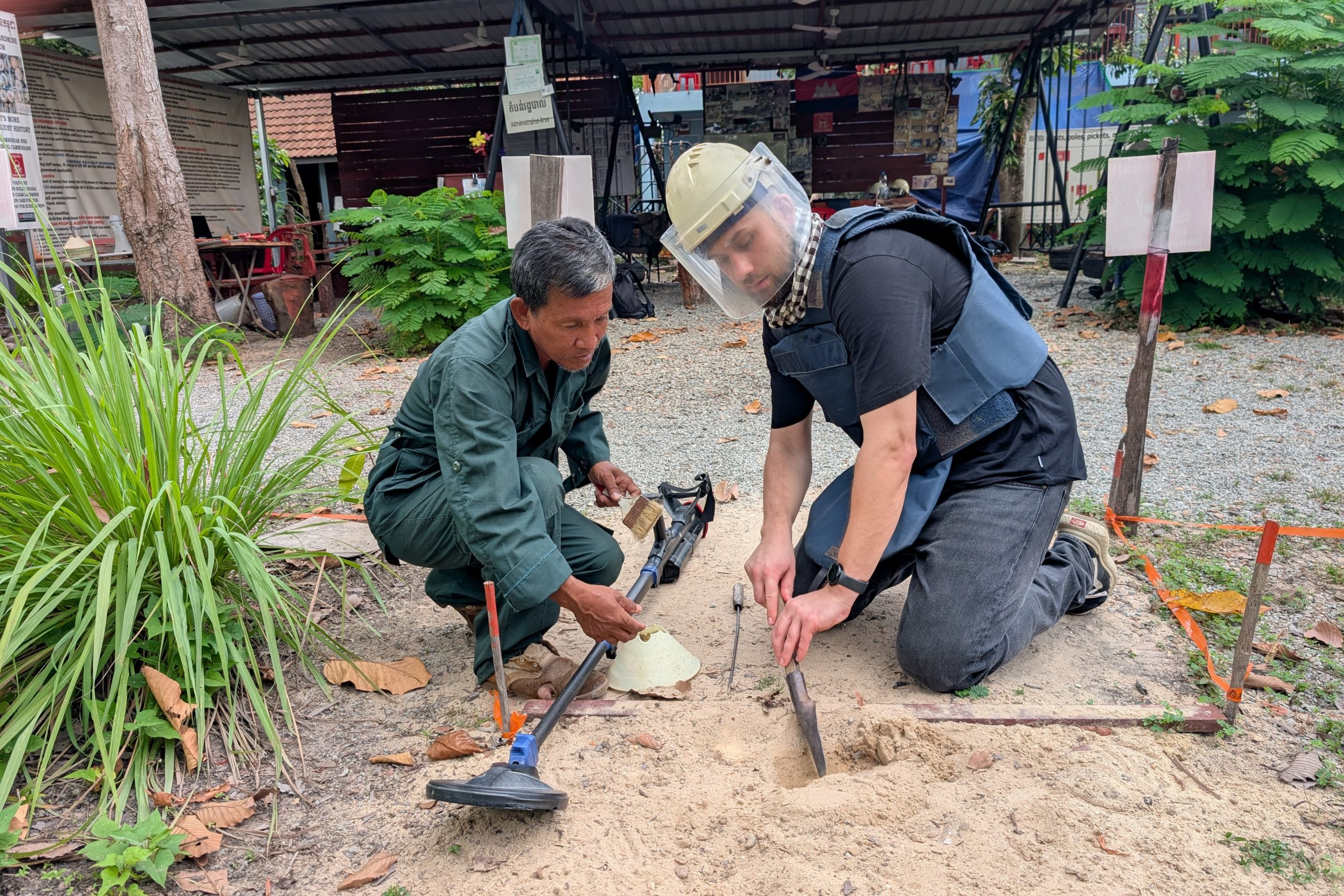 Aki Ras Bruder brachte mir bei, wie man Minen sucht und entschärft. Mit Aki Ra schlenderte ich anschließend über seine Farm. Auch das war spannend, denn hier bekam ich einen authentischen Einblick ins kambodschanische Landleben. Auf dem Feuer brodelte ein Kessel mit toten Ratten und Fröschen, die er in Fallen gefangen hatte. So stellen die Bauern hier Schweinefutter her.