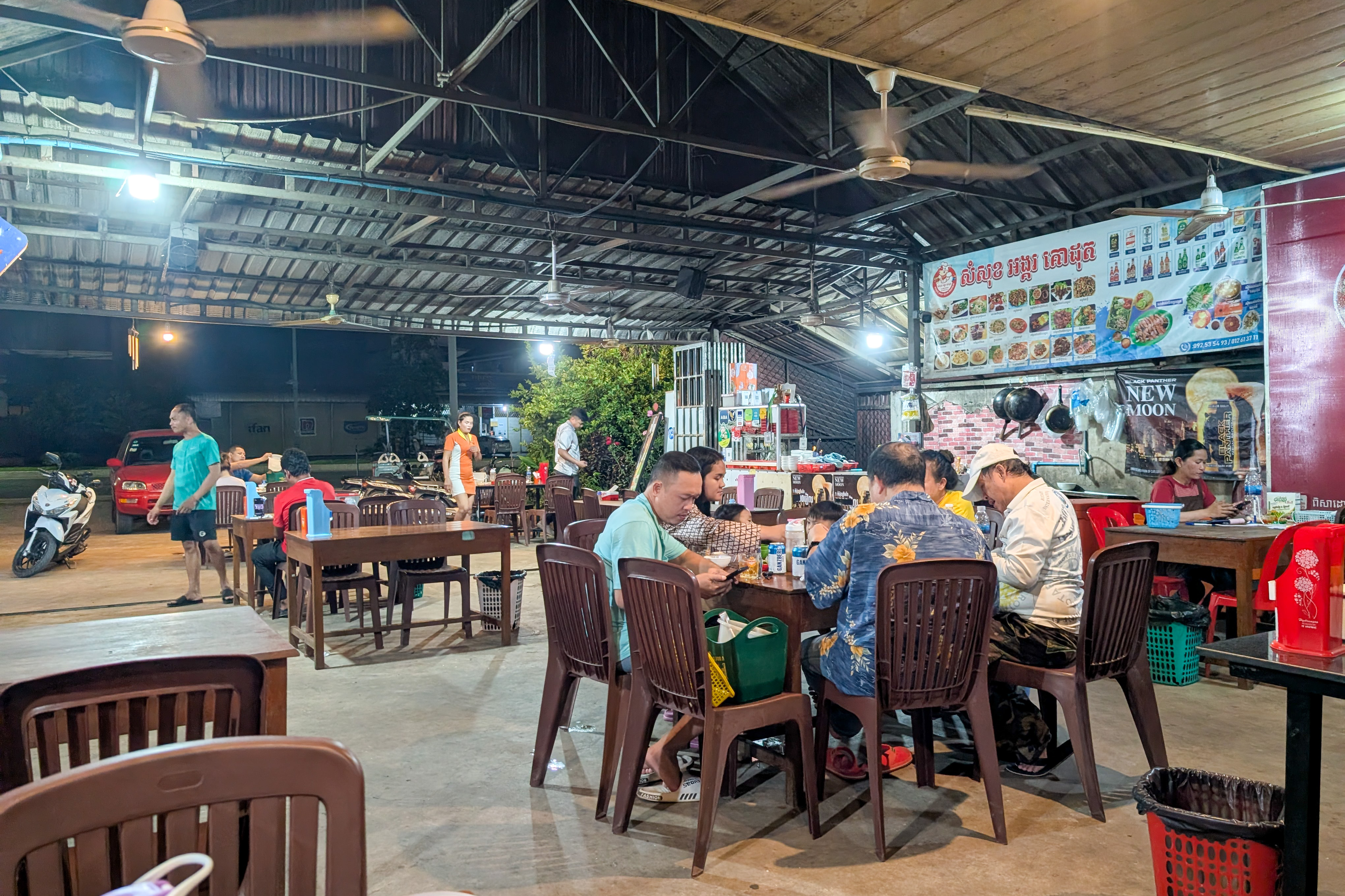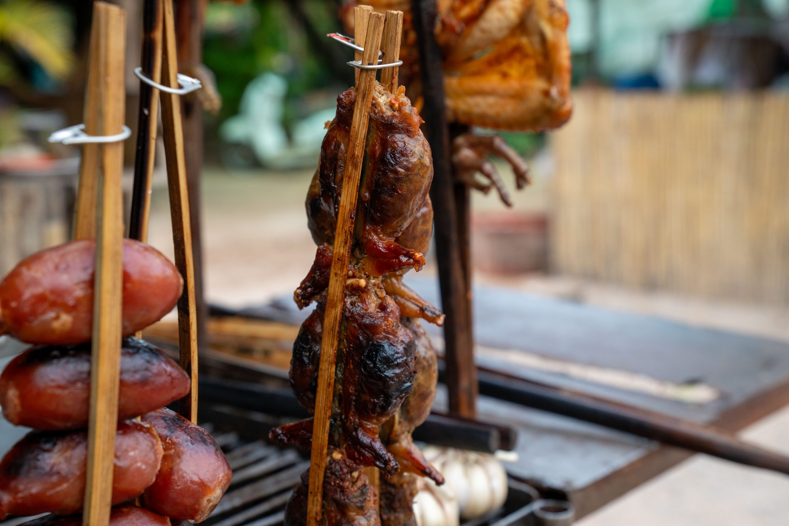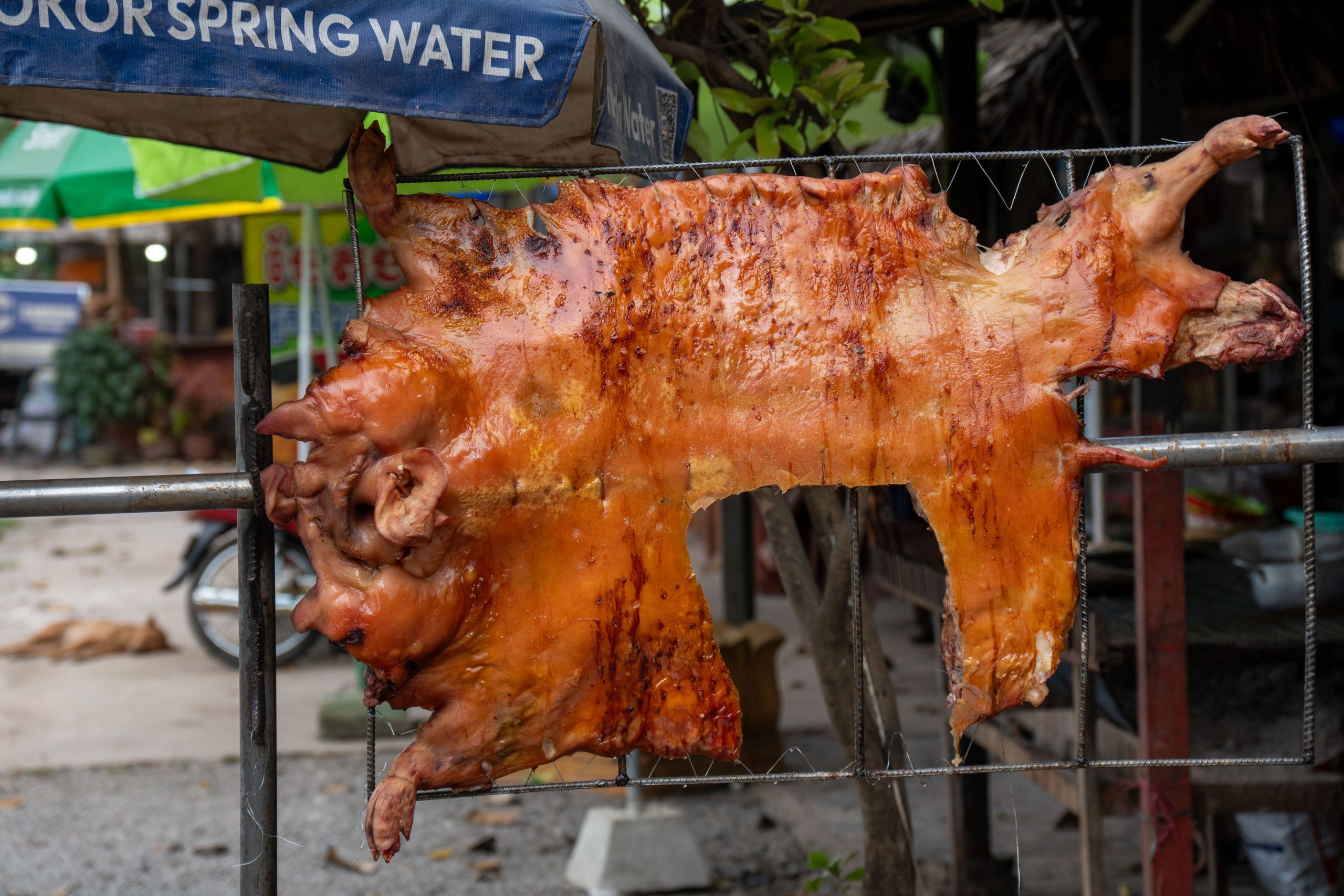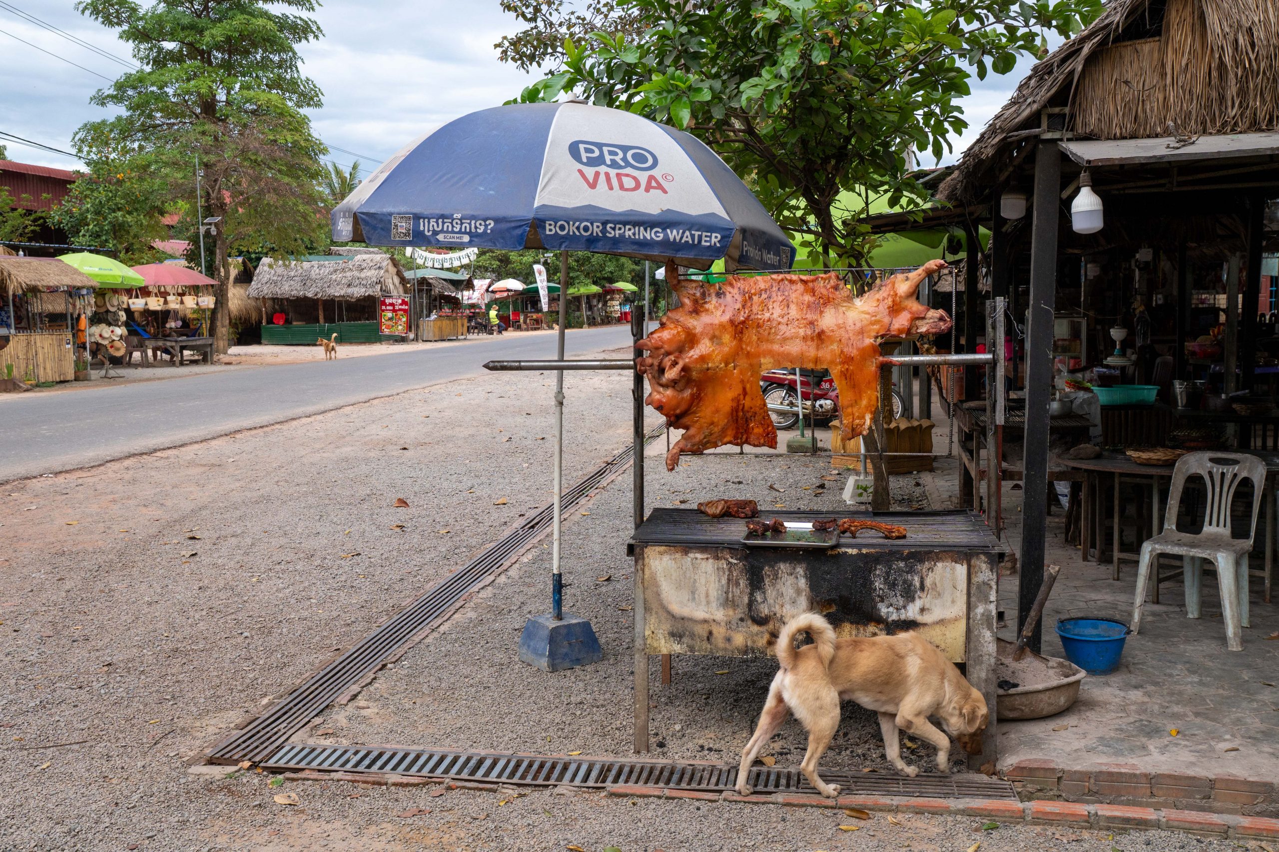 Auf dem Rückweg fuhr ich durch viele kleine Dörfer. Am Straßenrand lagen Schweine, Hühner, Frösche und Fische auf großen Grills. Warum, das erfuhr ich gleich: Ich lernte die kambodschanische Picknick-Kultur kennen. Als ich mit dem Roller durch den Wald fuhr, sah ich eine kleine Gruppe von Menschen. Sie saßen am Straßenrand vor einem gedeckten Tisch. Ich lächelte. Sie lächelten und winkten. Ich hielt an und wurde mit lautem Gelächter begrüßt. Ich setzte mich an den Tisch. Bisher hatten wir nicht gesprochen, nur Blicke ausgetauscht. Nun sprach mich eine Frau auf Englisch an. Sie freue sich über meinen Besuch und ich müsse von ihrem Picknick probieren. Obwohl sie die Einzige war, die Englisch sprach, waren nun alle um meine Versorgung bemüht. Vor mir stapelten sich plötzlich gegrillte Schweinestücke, Fische, Reis, Erdnüsse, Palmwein und Saft. Ich genoss die Mahlzeit und sprach mit der Frau, die für die Gruppe übersetzte. Es war eine tolle, ausgelassene Runde und ich fühlte mich herzlich willkommen. Nach einer Stunde machte ich mich auf den Weg. Wieder war ich ganz einfach mit freundlichen Menschen in Kontakt gekommen. Das freute mich.