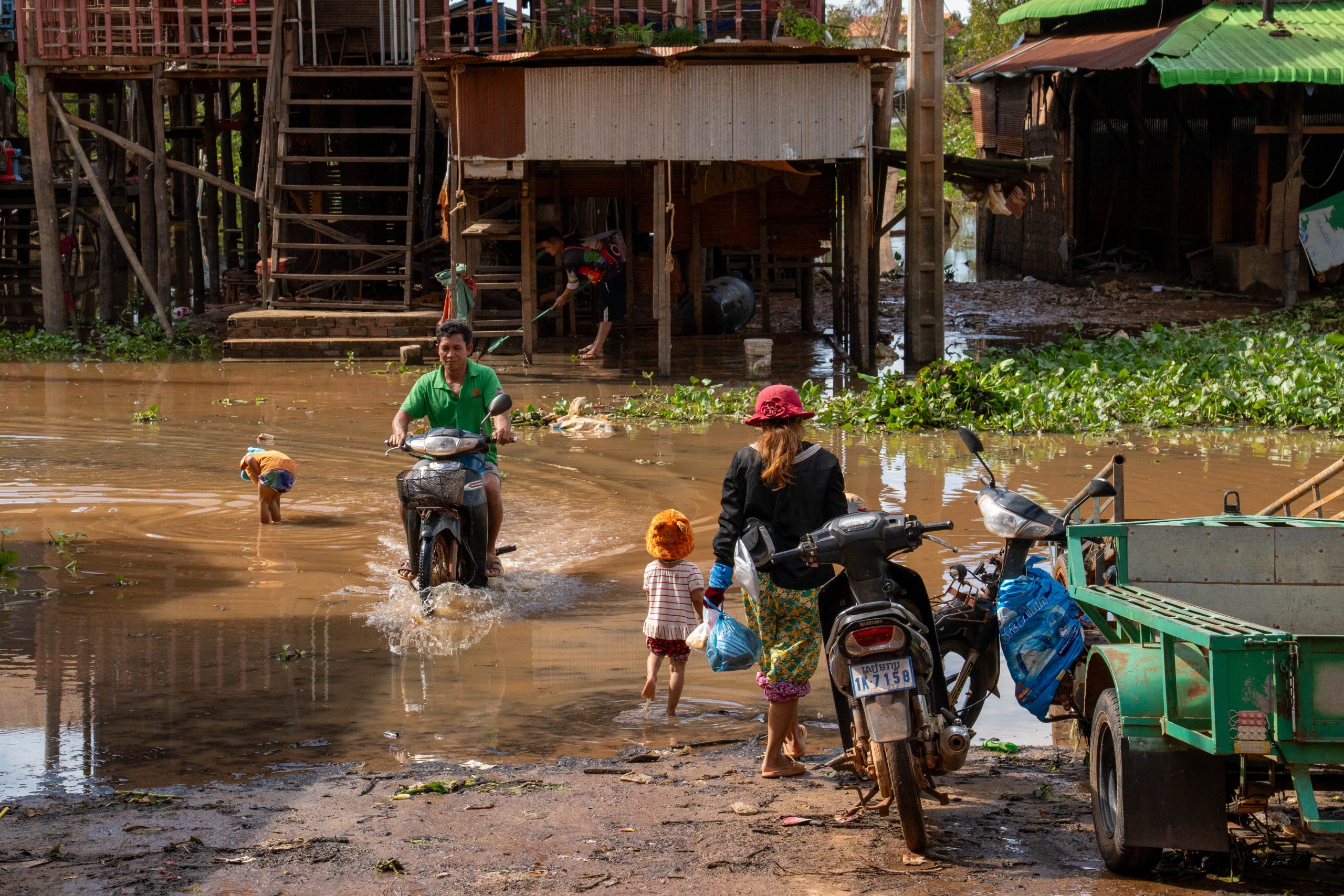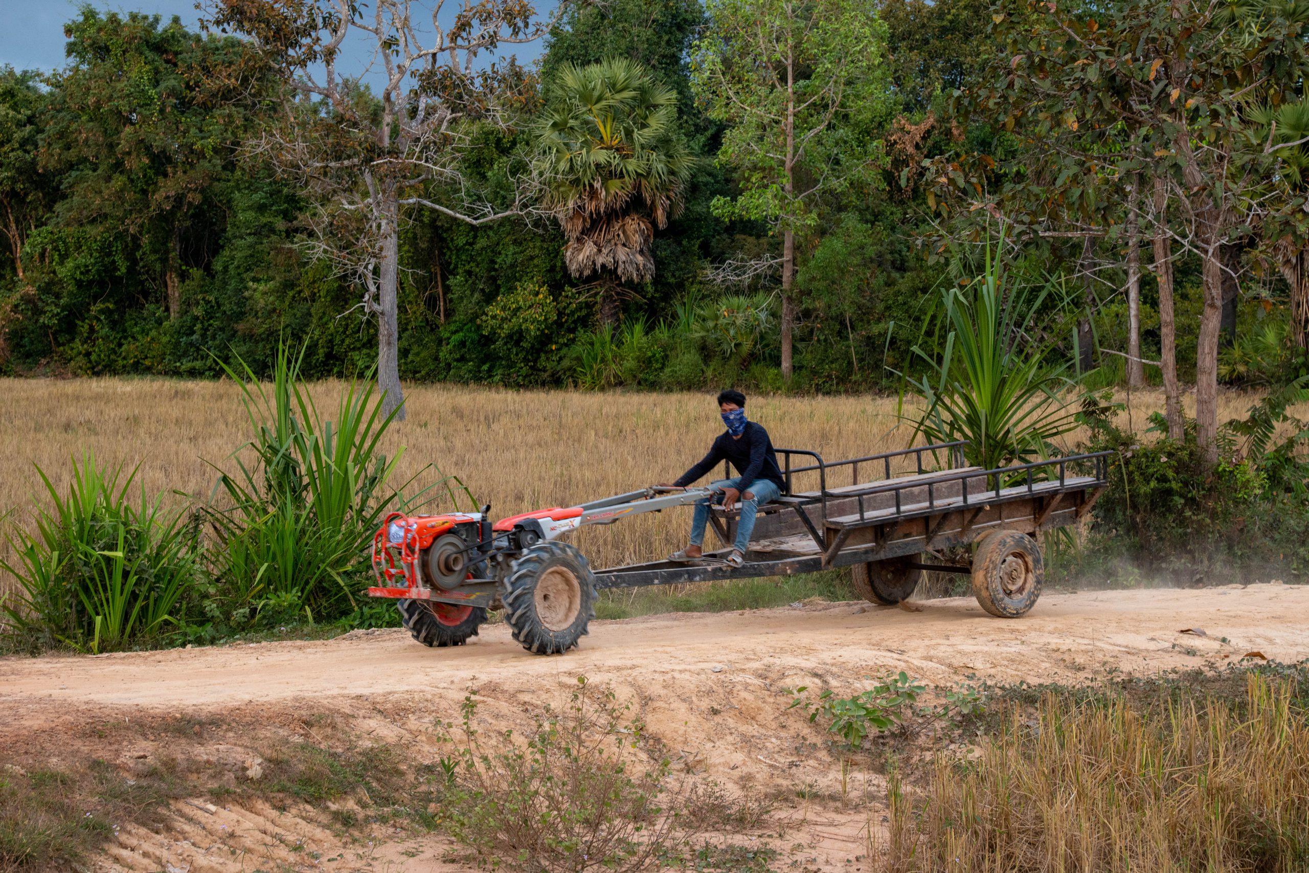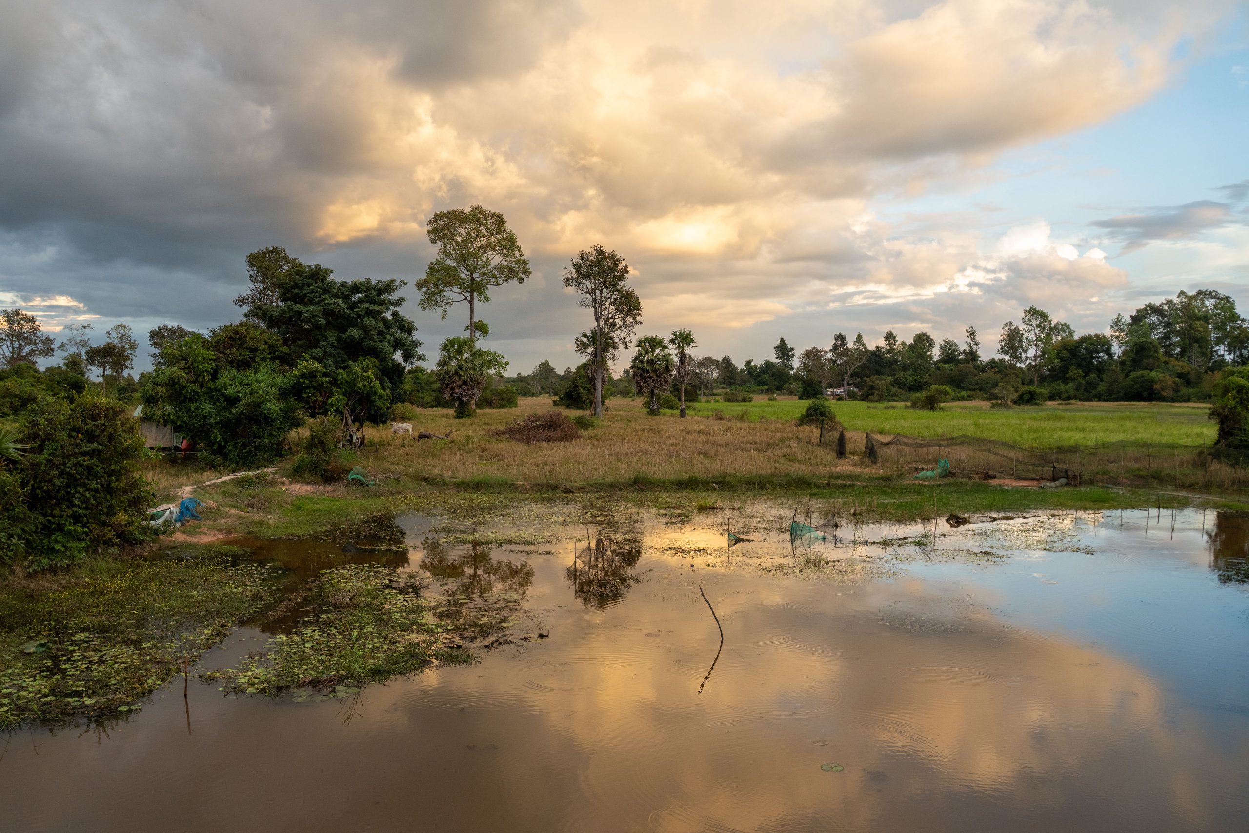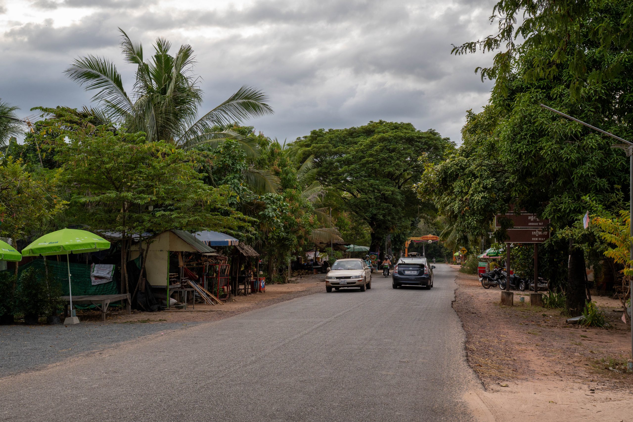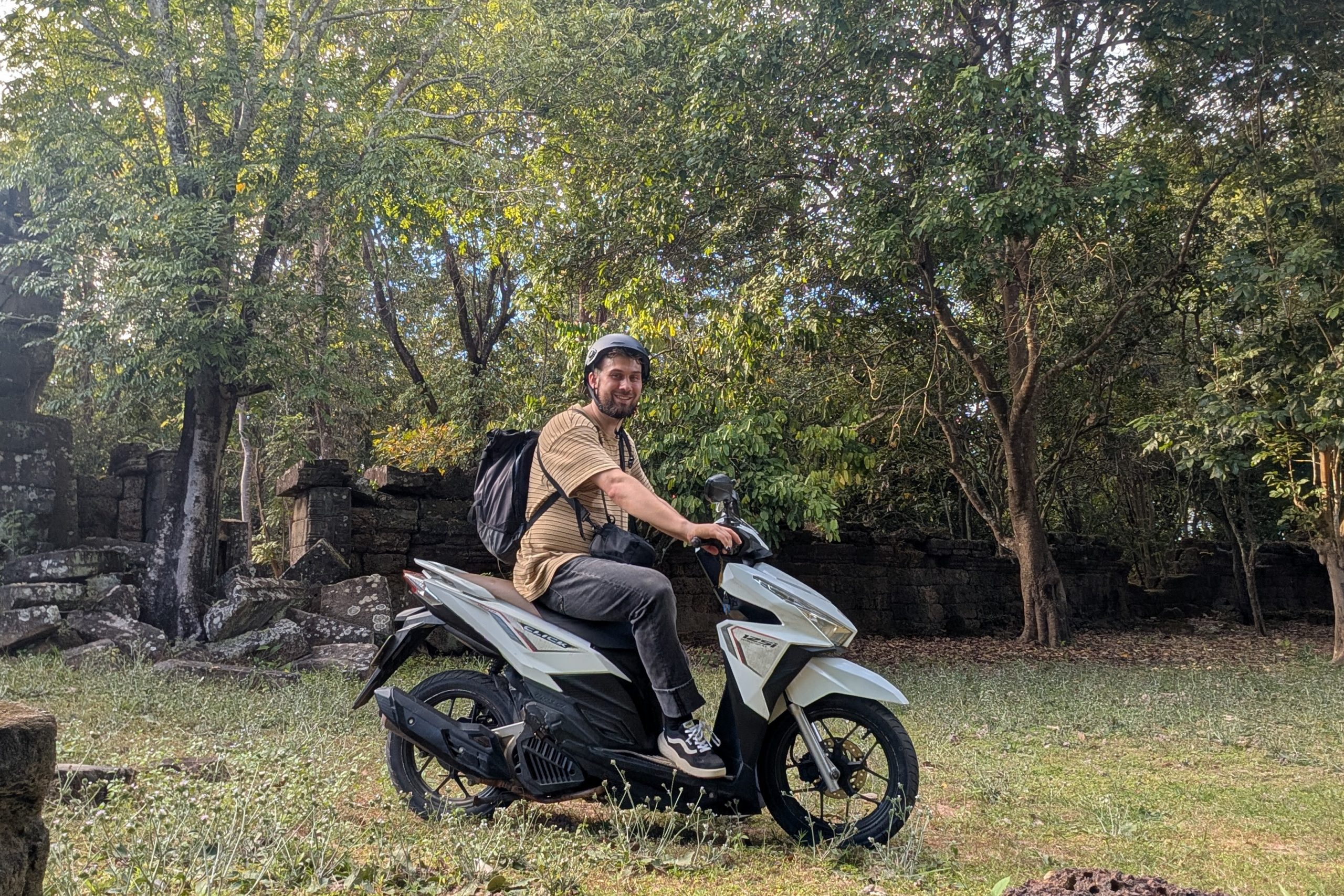 Per Taxi ging es zum Hotel am Rande von Siem Reap. Mein Fahrer war der erste Einheimische, dem ich begegnete. Ich fragte ihn eine Stunde lang aus. Gelernt habe ich unter anderem, dass Siem Reap wie zu erwarten auf den Tourismus angewiesen ist und die Corona-Pandemie hier für viele Menschen existenzbedrohend war. Er hat in dieser schweren Zeit angefangen, palettenweise gebrauchte Kleidung aus der Hauptstadt Phnom Penh heranzuschaffen und über eine Facebookseite zu verkaufen. So kam er durch, ist aber bis heute verschuldet. Es war ein erster Einblick in das Leben der Menschen in einem Land, in dem der jährliche Bruttoverdienst unter 3.000 US-Dollar liegt. Auf den Feldern sah ich Bauern und zwischendrin immer wieder Seen, in denen Menschen bis zum Hals im Wasser standen, um Netze zu verlegen. Es herrschte geschäftiges Treiben, besonders, als wir endlich die Stadt erreichten. Mein Hotel war ruhig gelegen, weit entfernt vom touristischen Zentrum des Ortes. Kaum angekommen nahm ich schon meinen Motorroller in Empfang und war startklar für die nächsten Tage.