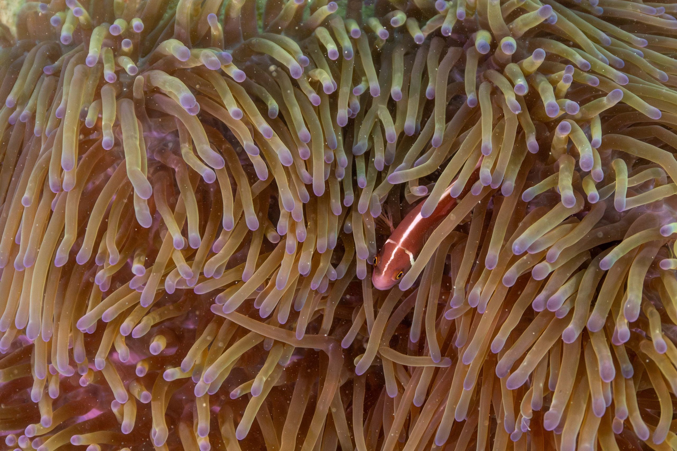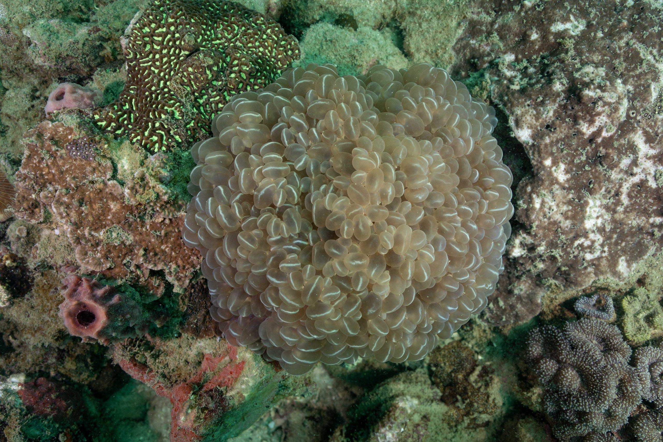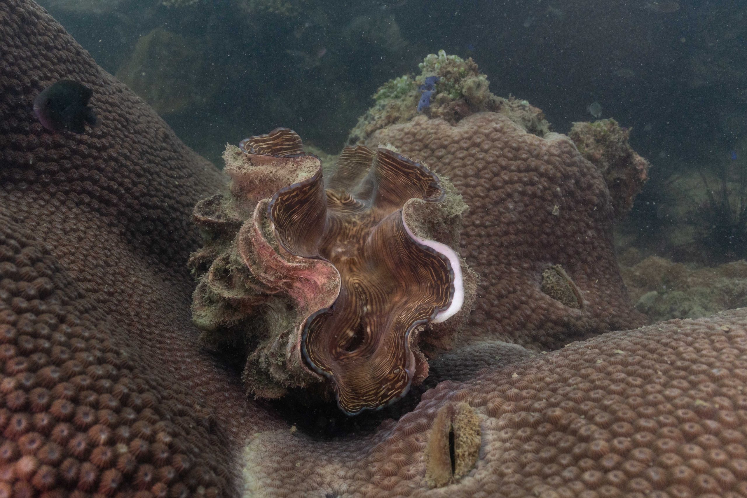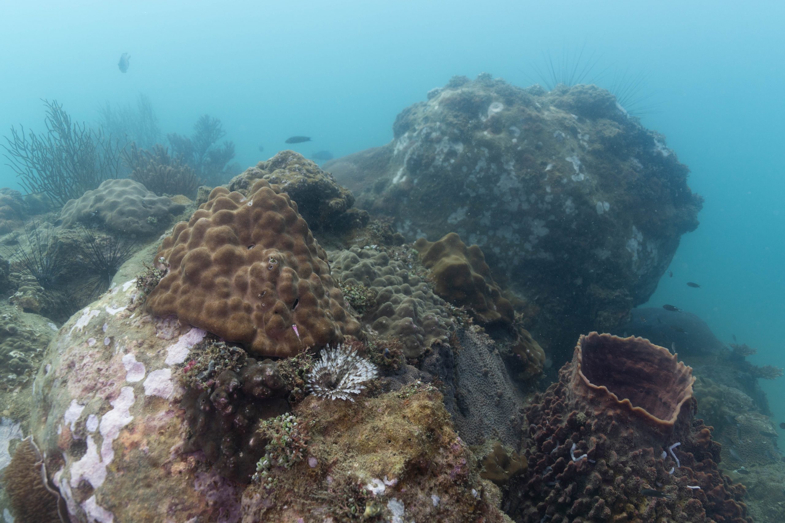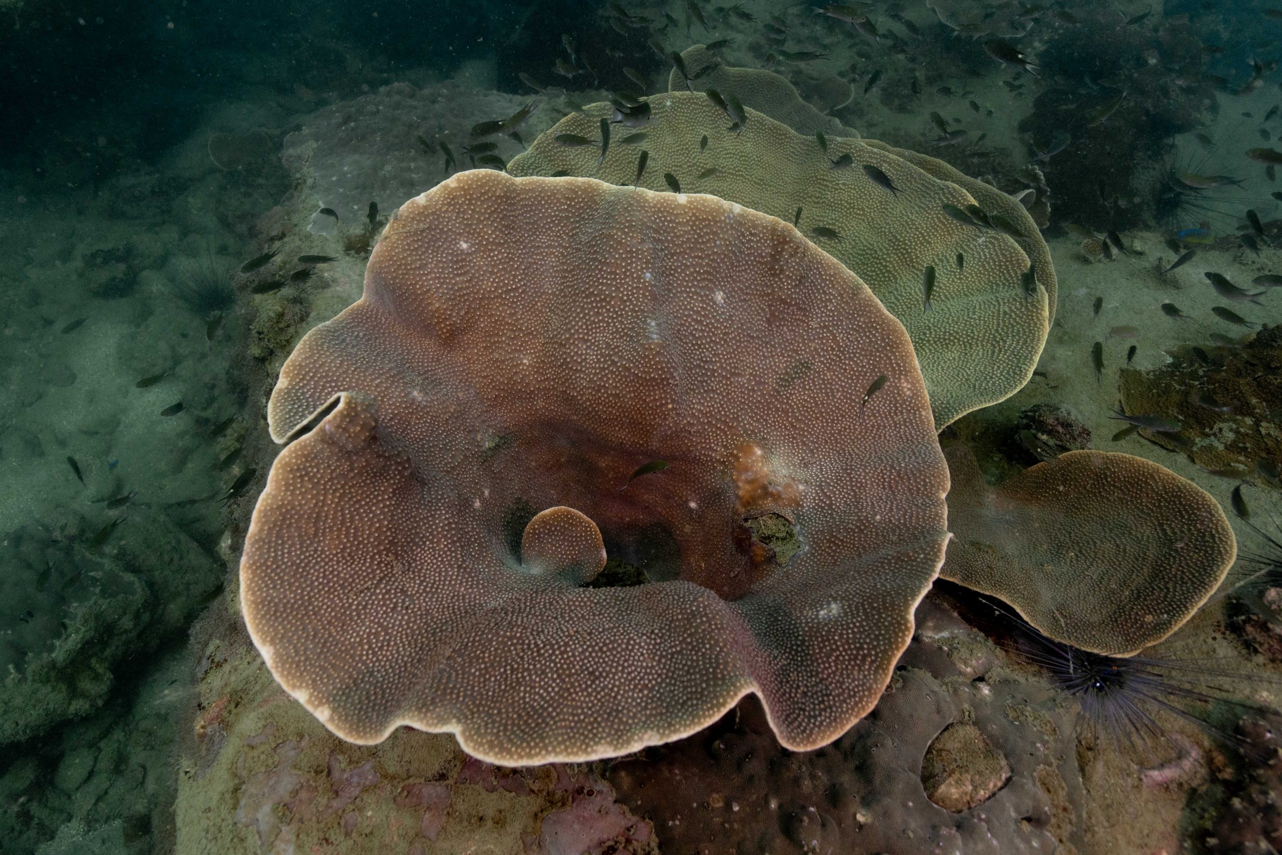 Die nächsten zwei Tage verbrachte ich auf dem Meer. Ich wollte tauchen – und war gespannt auf die hiesige Unterwasserwelt. Beim Sprung ins Meer war ich sofort von einem grauen Nebel umgeben. Das Wasser ist durch Schwebstoffe erstaunlich trüb. Man sieht nur wenige Meter weit. Das ist prinzipiell kein Problem, kann es doch bedeuten, dass das nahrhafte Wasser besonders viele Pflanzen und Tiere hervorbringt. Und so war es tatsächlich. Am Meeresgrund fand ich ein spannendes Biotop vor. Unzählige Schwämme, Korallen und verzweigte Wasserpflanzen bedeckten den Grund. Dazwischen lebten vor allem Seeigel, aber auch vielerlei Fische und Muscheln. Zwei Tage lang schwebte ich durch die schemenhafte Unterwasserwelt, aus der immer wieder bunte Fische auftauchten. Es war großartig!