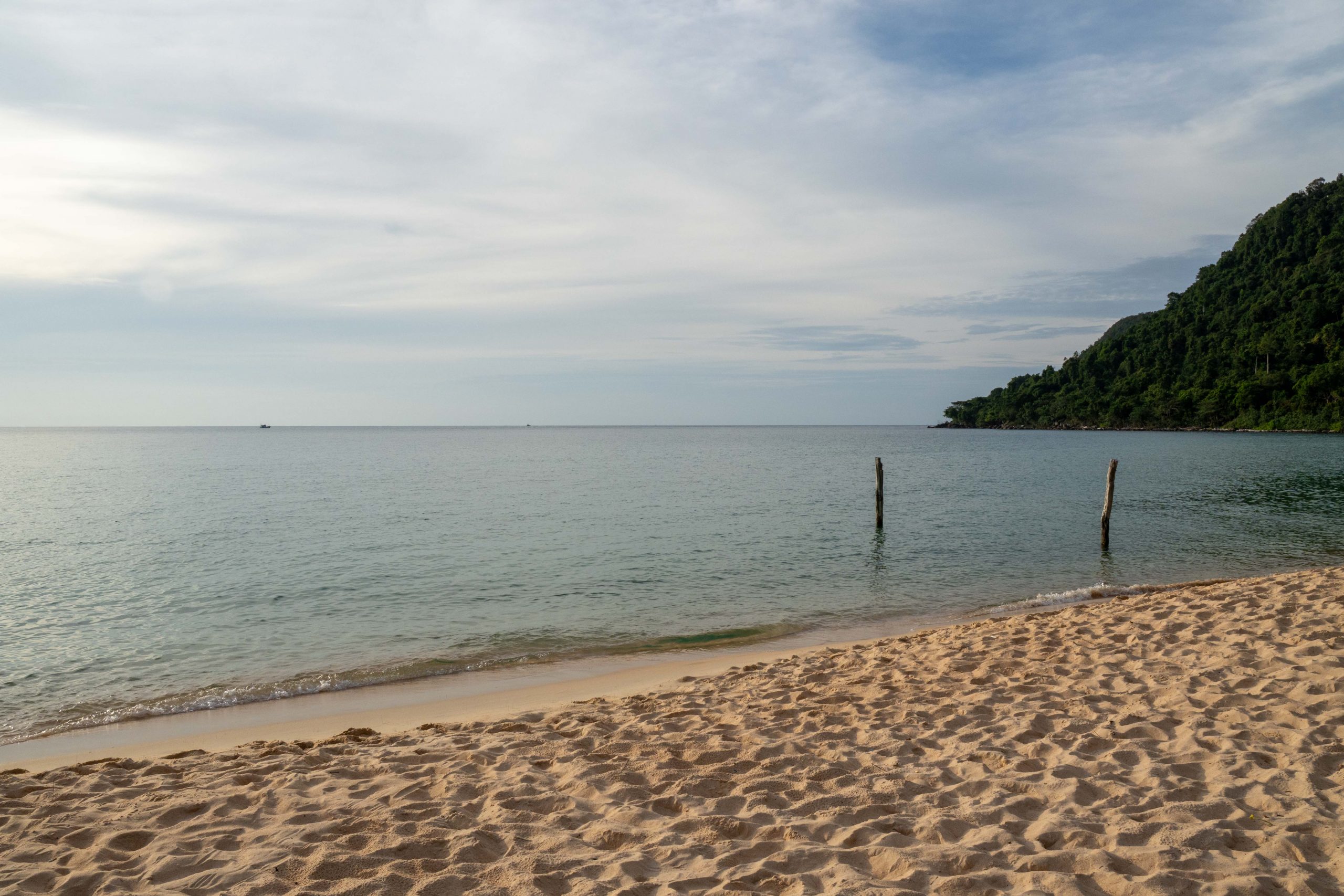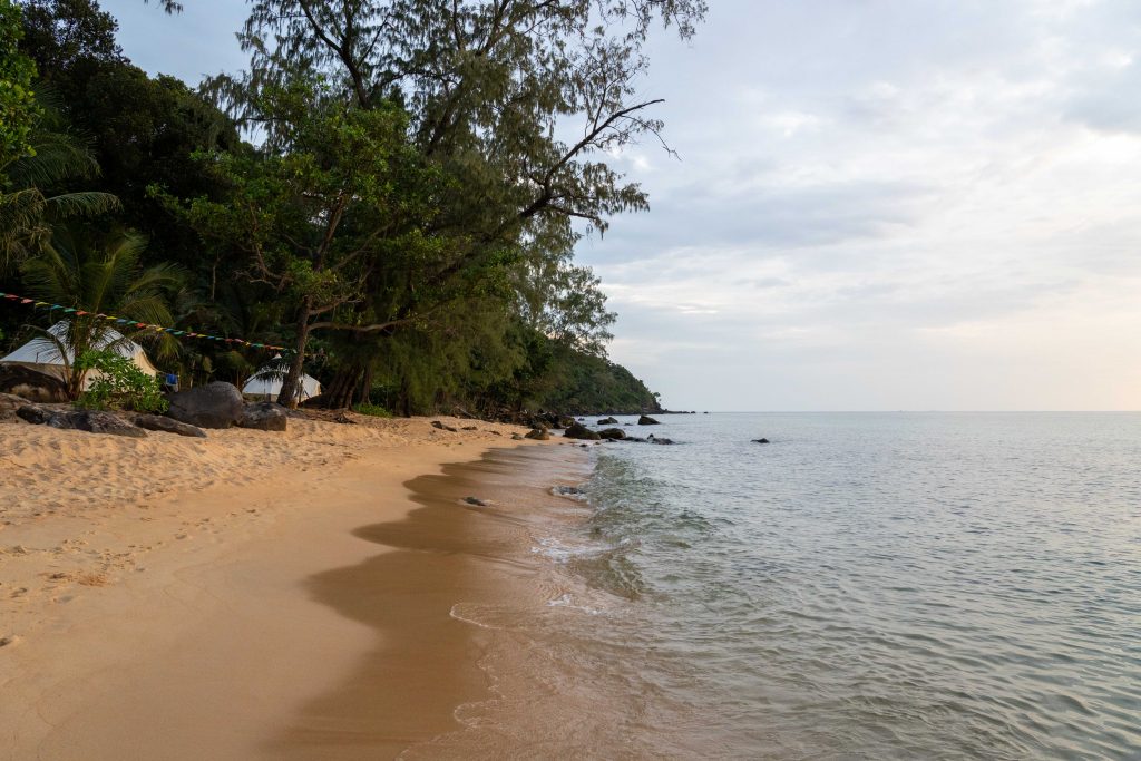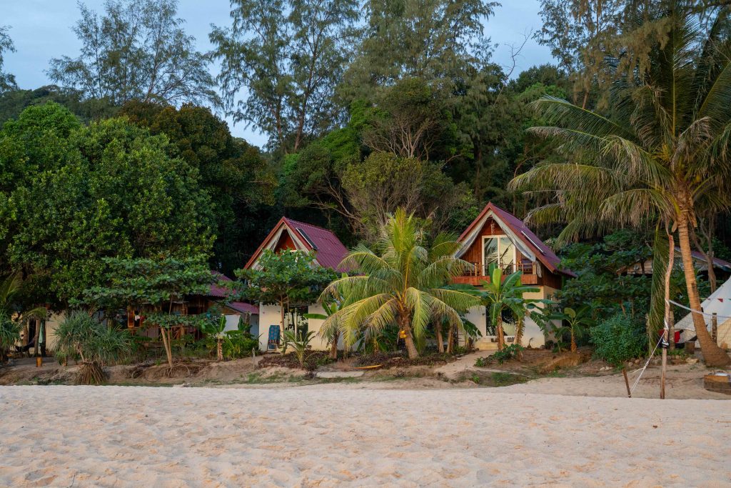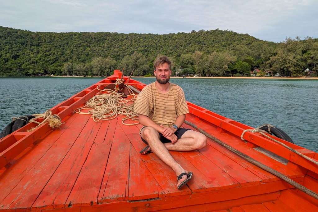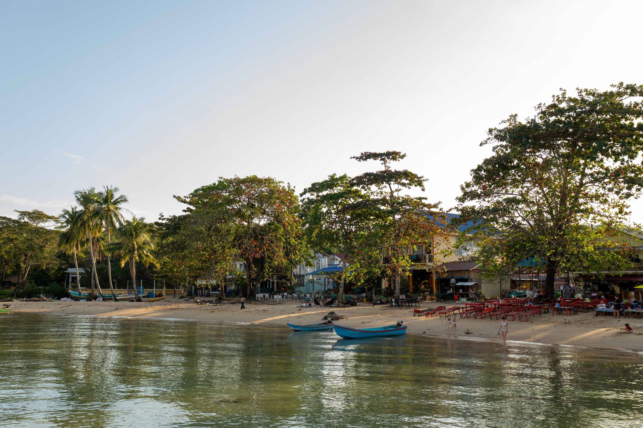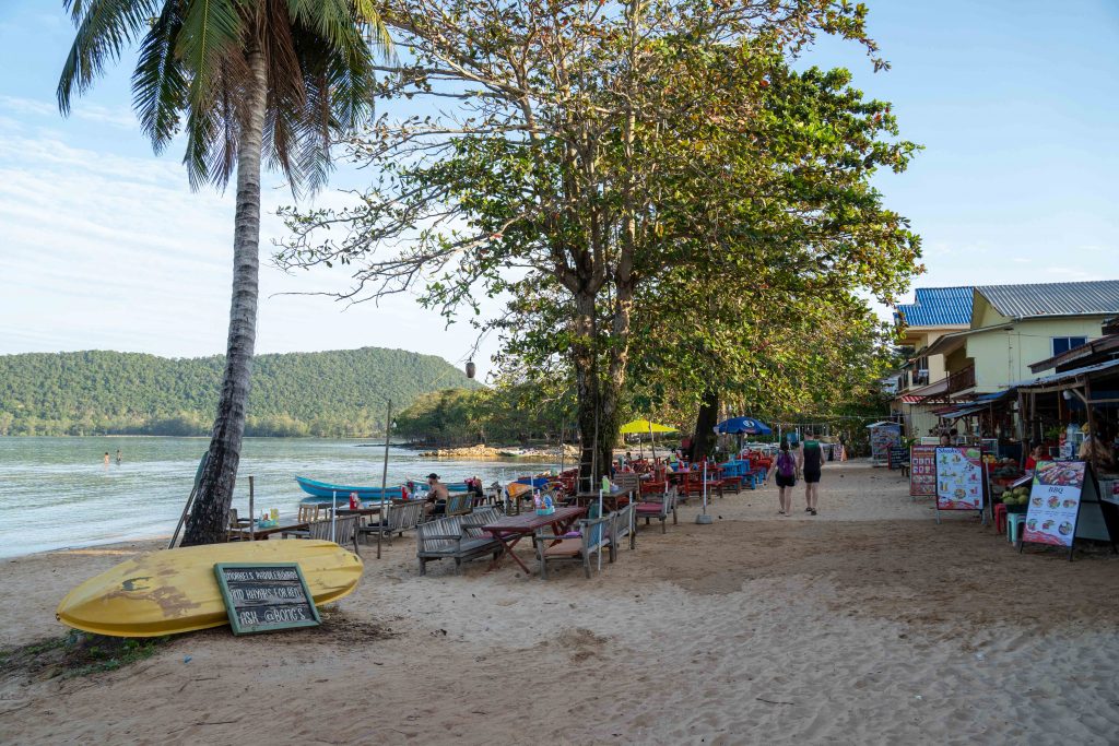 Ich wählte das Fischerdorf M’Pai Bay als mein neues Zuhause. Als sich die Fähre der kleinen Insel näherte, formten sich vor mir waldbedeckte Berge und einsame Strände. In einer Bucht waren ein paar Häuser versammelt. Wir legten an. Den Rollkoffer ziehend, begab ich mich in den Ort. Auf den ersten Blick wirkte M’Pai Bay sehr touristisch. Am Strand stapelten sich (selbstgezimmerte) Liegen. Entlang der Hauptstraße reihten sich kleine Restaurants, Läden und Hotels. Doch die Gebäude wirkten rustikal, irgendwie einfach. Auf der zentralen Straße waren viele Touristen unterwegs, doch meine Unterkunft lag am Rande der Stadt. Nach nur einer Minute hatte ich den winzigen Ort durchquert. Die Hauptstraße endete und zerteilte sich in schmalere Wege, gesäumt mit kleinen Häusern, Tieren, einer Müllhalde und verwilderten Gärten. Jugendliche spielten auf einer staubigen Fläche Fußball. Vor einer Holzhütte saß ein Franzose, der mich begrüßte und beiläufig erzählte, dass er seit Jahren hier lebe. Mein Ziel war das vorletzte Haus am Rande des Waldes. Im Erdgeschoss des Gebäudes lebte die Familie und oben lagen ein paar Gästezimmer. Die Familie hatte mich bereits erwartet und begrüßte mich begeistert. Der kleine Sohn, Tschin Tschan, versuchte sofort, mir auf den Rücken zu klettern. Keiner sprach Englisch, aber man zeigte mir das Zimmer und ich zahlte den Betrag, den sie in einen Taschenrechner getippt hatten. Ich war zufrieden: Hier war es ruhig, die Leute waren angenehm. Ich würde mich wohlfühlen.