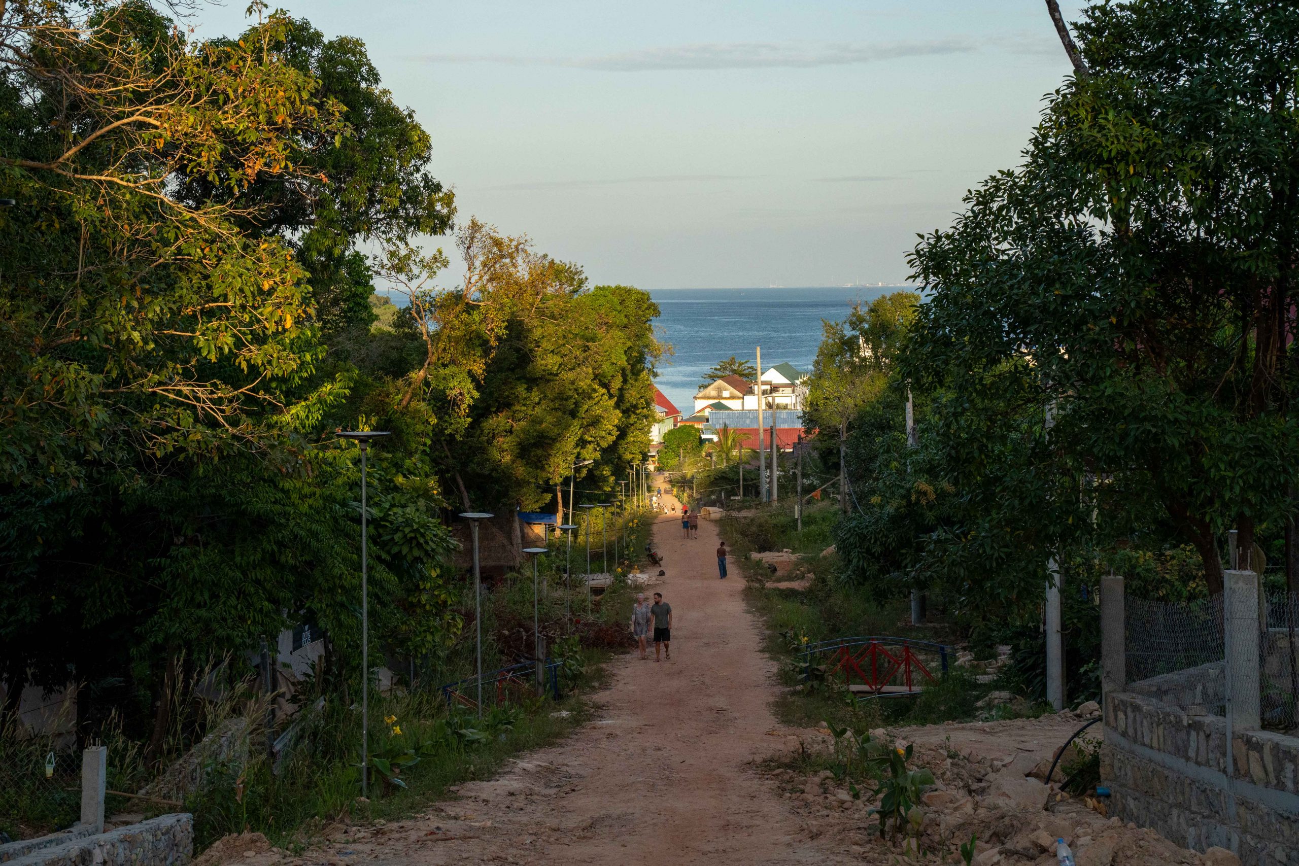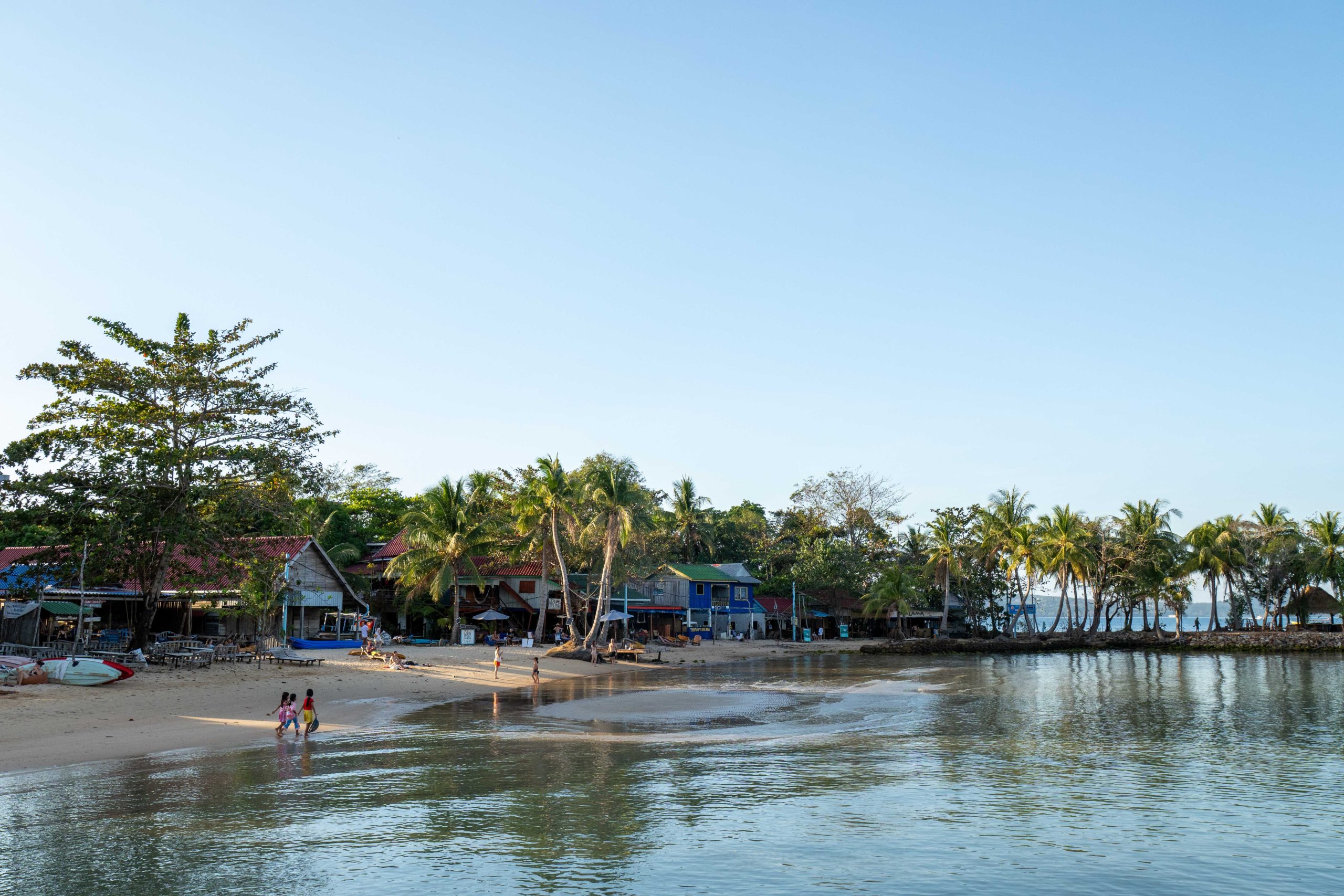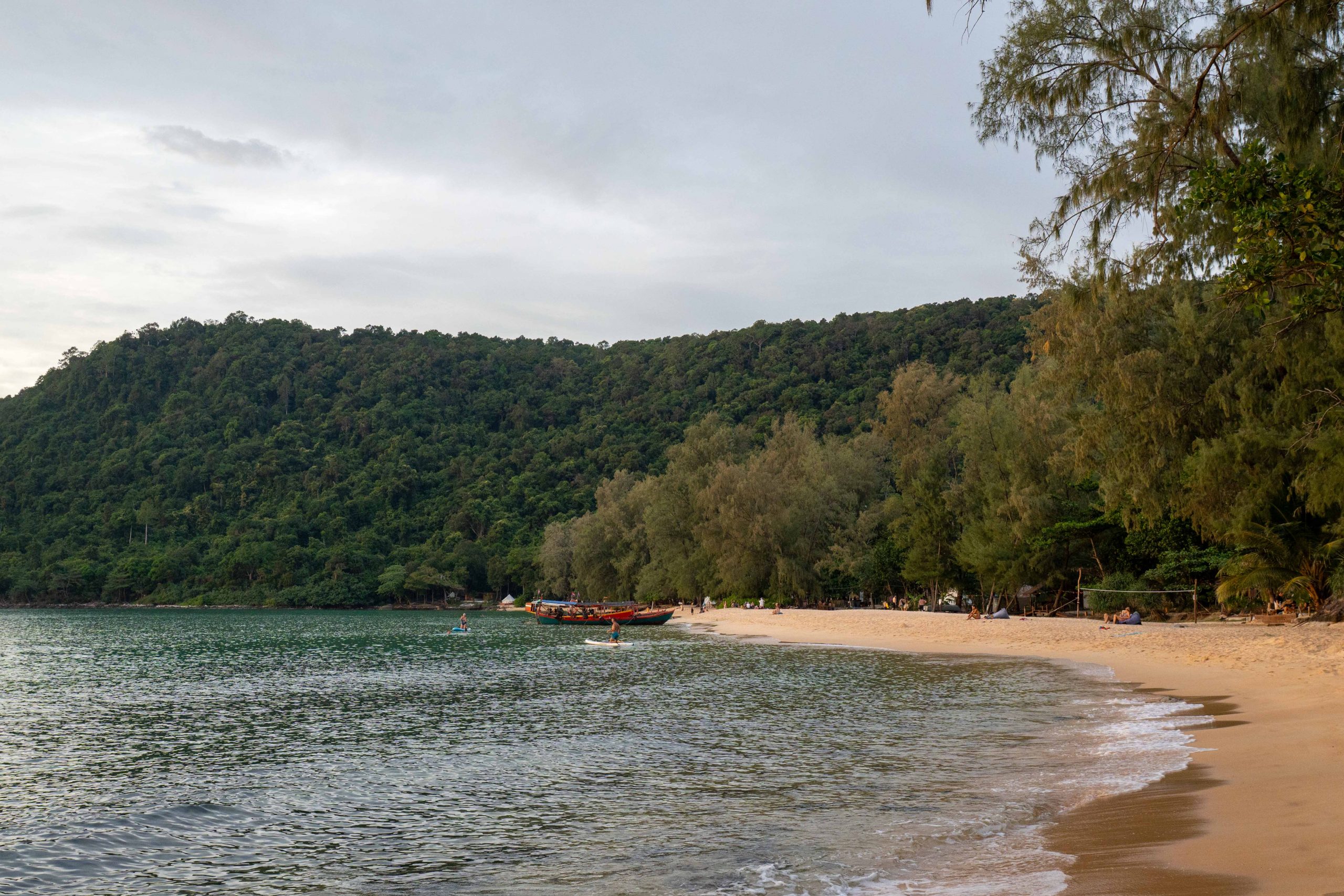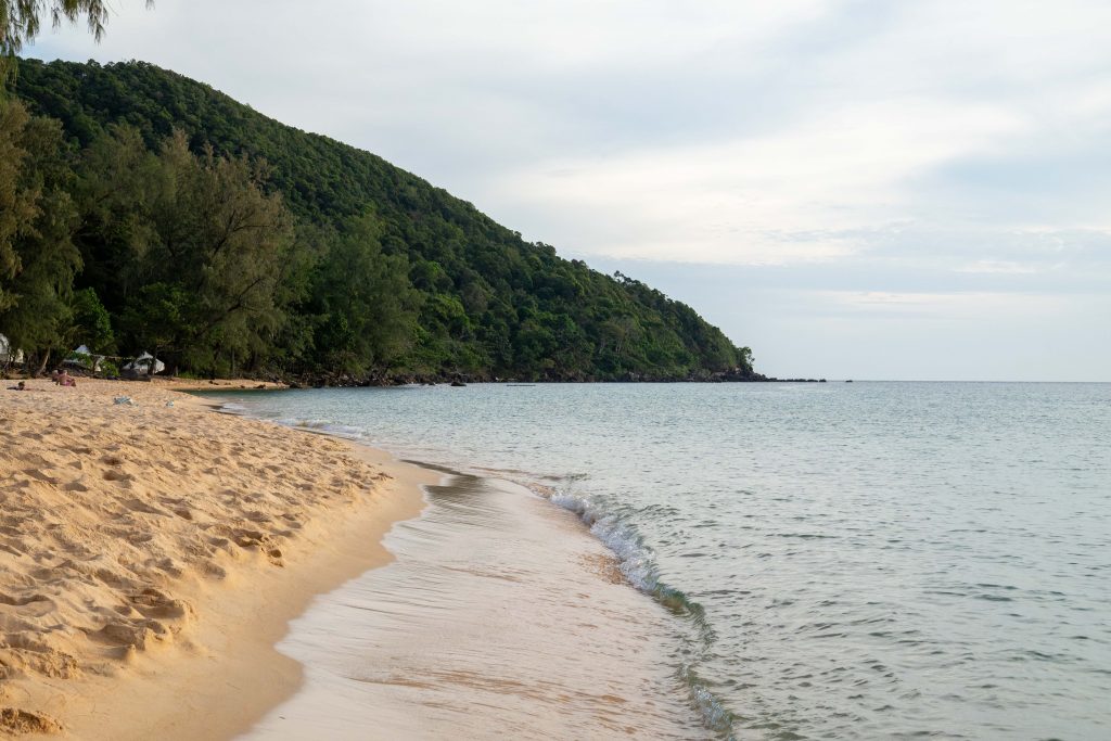Ich wählte das Fischerdorf M’Pai Bay als mein neues Zuhause. Als sich die Fähre der kleinen Insel näherte, formten sich vor mir waldbedeckte Berge und einsame Strände. In einer Bucht waren ein paar Häuser versammelt. Wir legten an. Den Rollkoffer ziehend, begab ich mich in den Ort. Auf den ersten Blick wirkte M’Pai Bay sehr touristisch. Am Strand stapelten sich (selbstgezimmerte) Liegen. Entlang der Hauptstraße reihten sich kleine Restaurants, Läden und Hotels. Doch die Gebäude wirkten rustikal, irgendwie einfach. Auf der zentralen Straße waren viele Touristen unterwegs, doch meine Unterkunft lag am Rande der Stadt. Nach nur einer Minute hatte ich den winzigen Ort durchquert. Die Hauptstraße endete und zerteilte sich in schmalere Wege, gesäumt mit kleinen Häusern, Tieren, einer Müllhalde und verwilderten Gärten. Jugendliche spielten auf einer staubigen Fläche Fußball. Vor einer Holzhütte saß ein Franzose, der mich begrüßte und beiläufig erzählte, dass er seit Jahren hier lebe. Mein Ziel war das vorletzte Haus am Rande des Waldes. Im Erdgeschoss des Gebäudes lebte die Familie und oben lagen ein paar Gästezimmer. Die Familie hatte mich bereits erwartet und begrüßte mich begeistert. Der kleine Sohn, Tschin Tschan, versuchte sofort, mir auf den Rücken zu klettern. Keiner sprach Englisch, aber man zeigte mir das Zimmer und ich zahlte den Betrag, den sie in einen Taschenrechner getippt hatten. Ich war zufrieden: Hier war es ruhig, die Leute waren angenehm. Ich würde mich wohlfühlen.