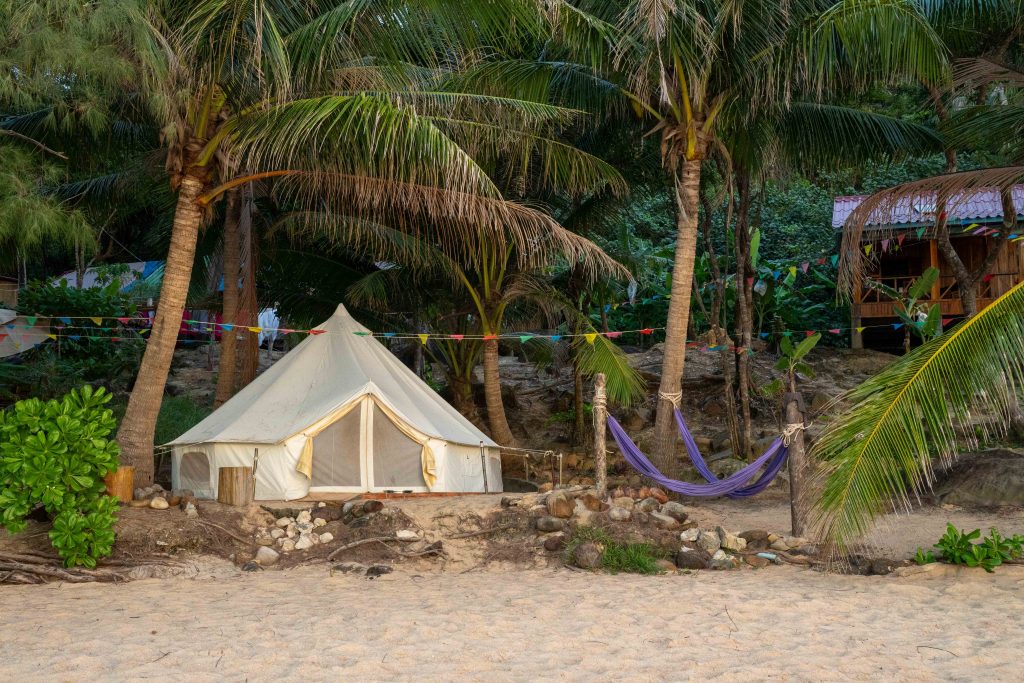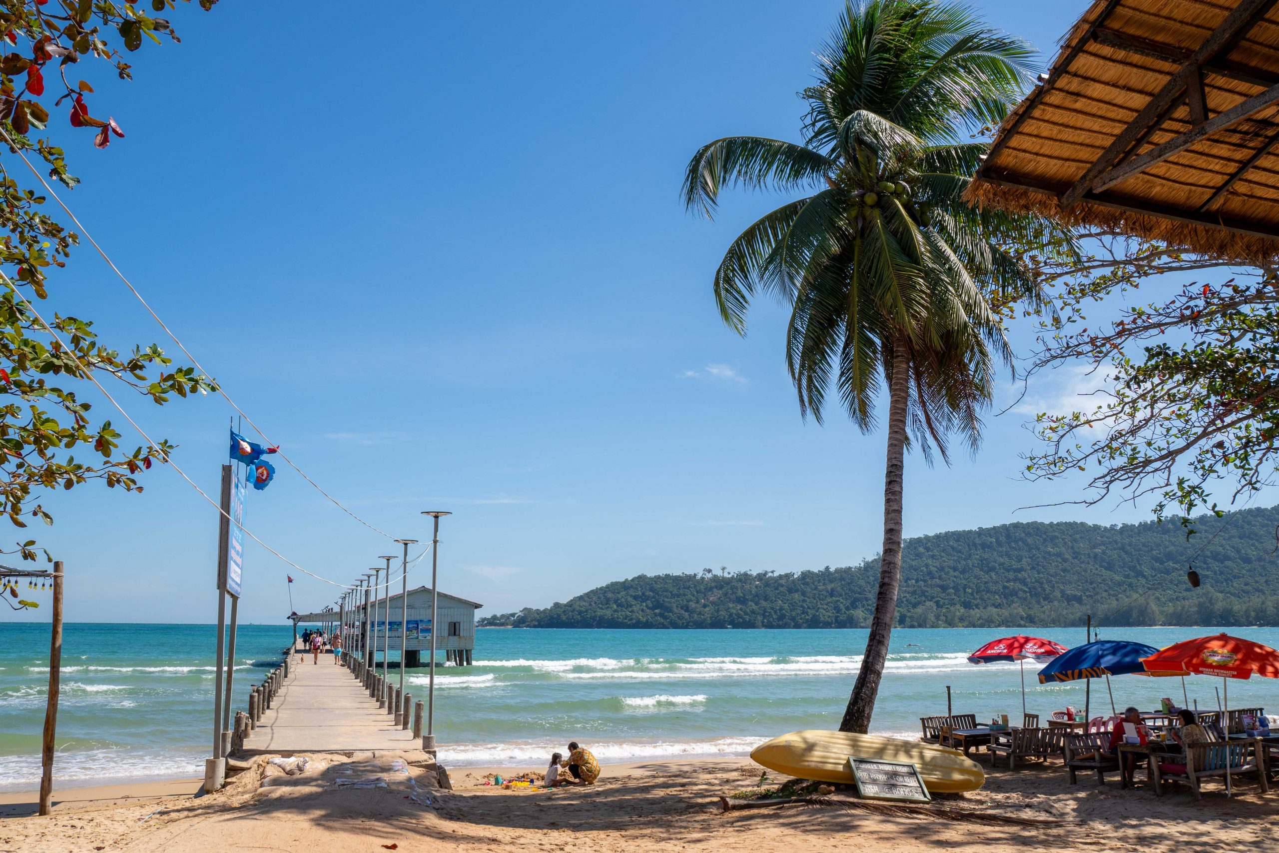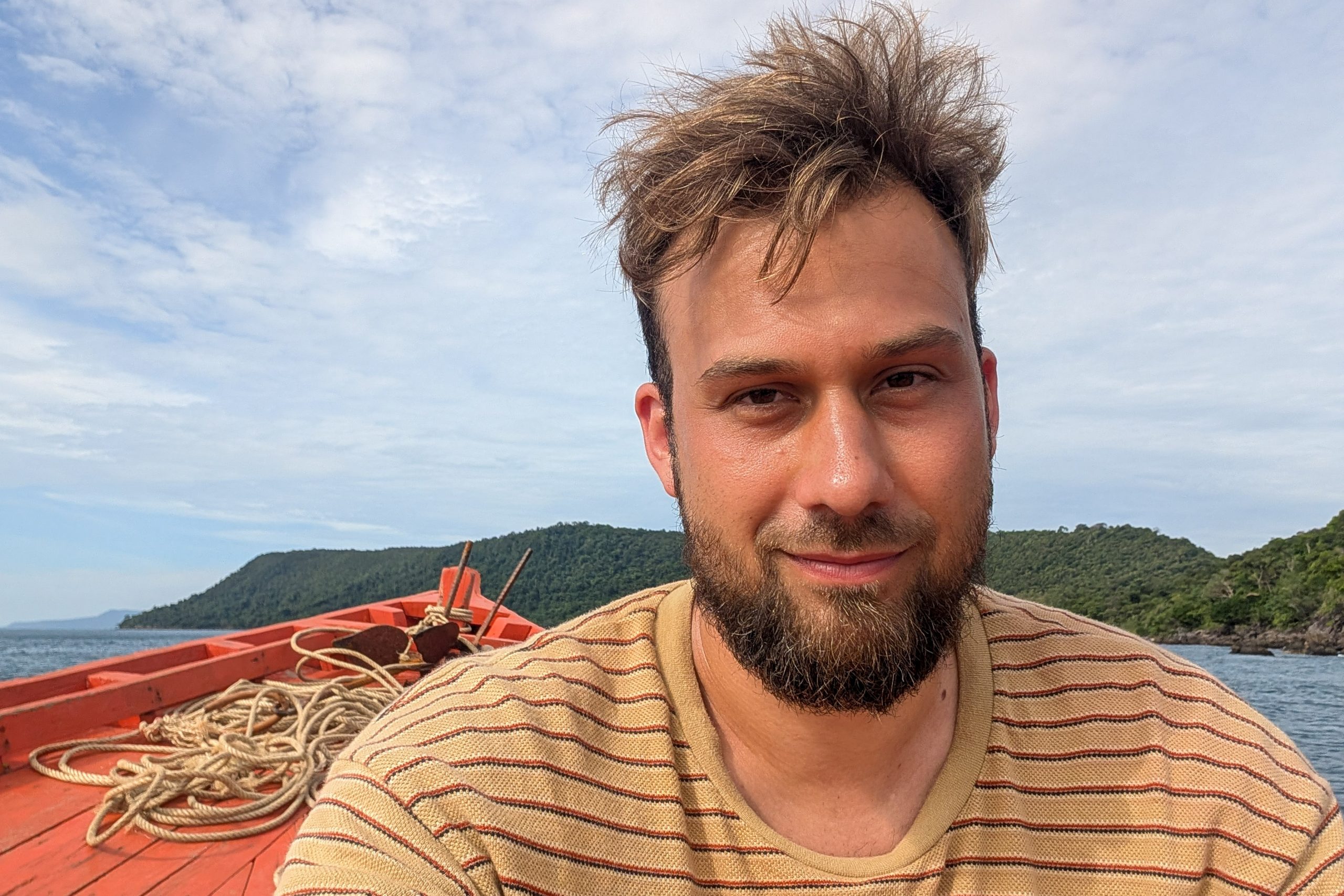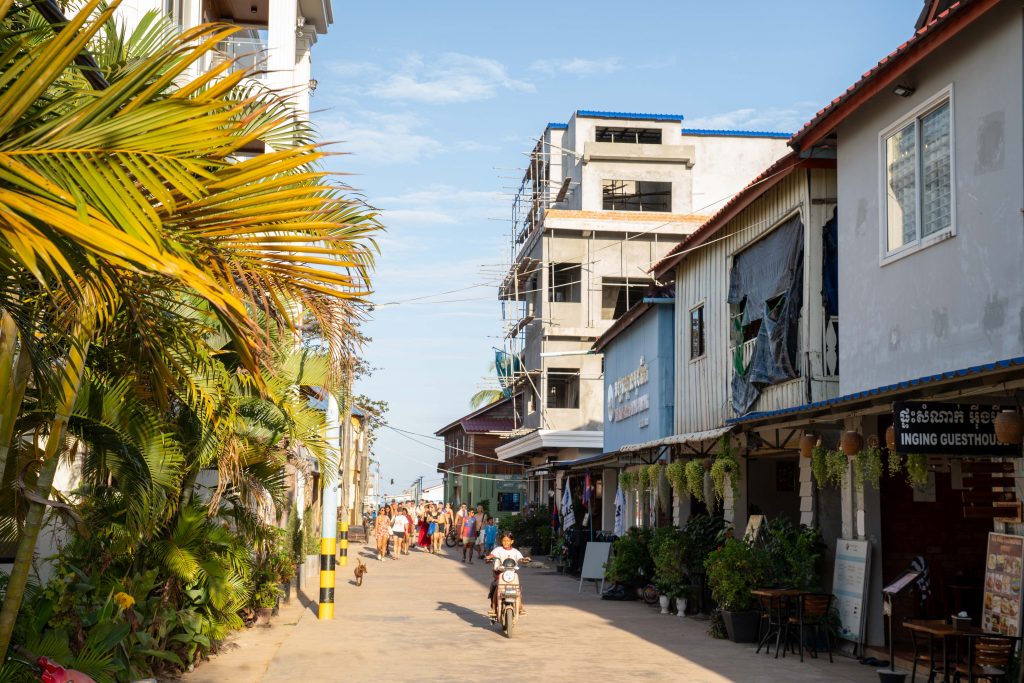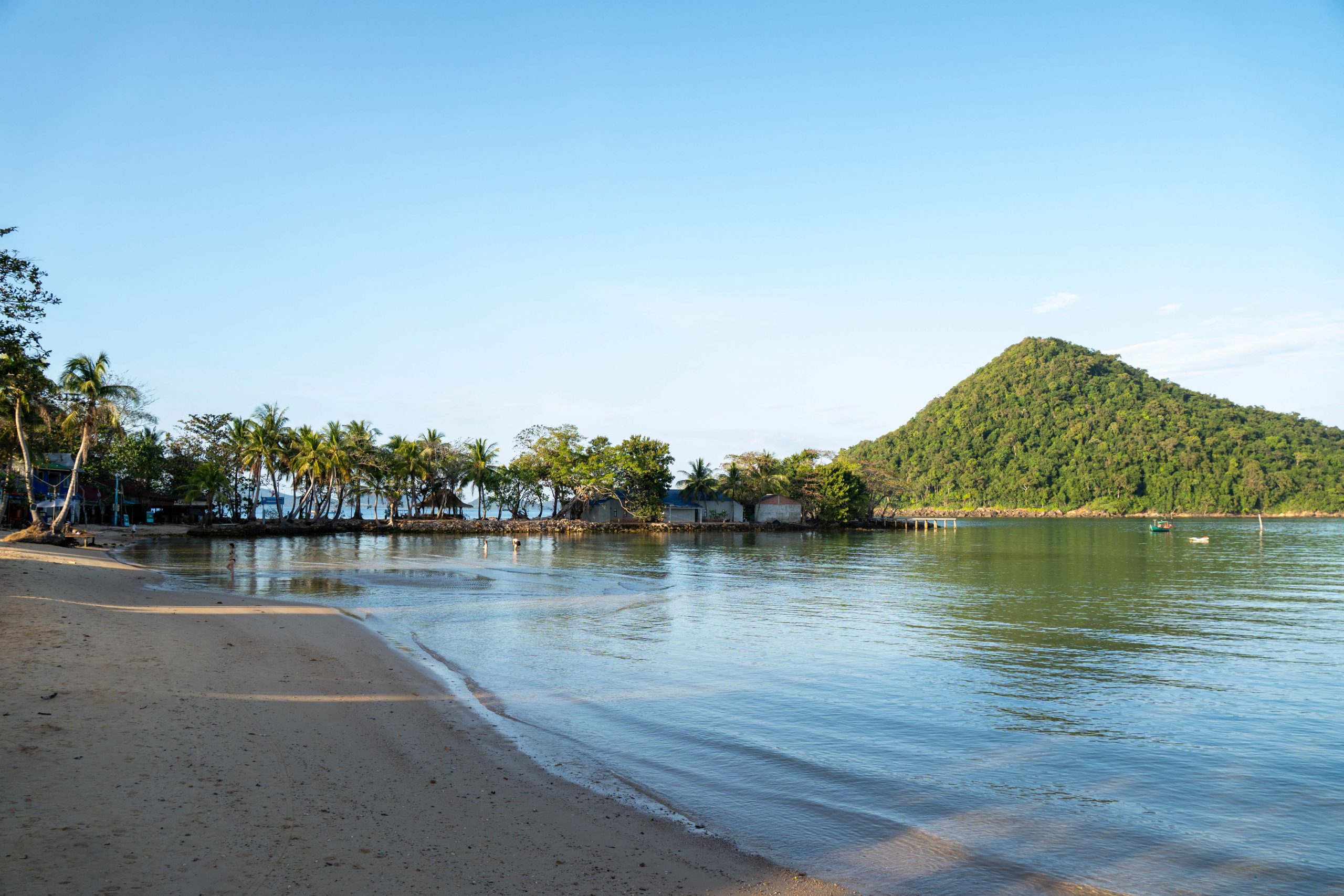 Ich wählte das Fischerdorf M’Pai Bay als mein neues Zuhause. Als sich die Fähre der kleinen Insel näherte, formten sich vor mir waldbedeckte Berge und einsame Strände. In einer Bucht waren ein paar Häuser versammelt. Wir legten an. Den Rollkoffer ziehend, begab ich mich in den Ort. Auf den ersten Blick wirkte M’Pai Bay sehr touristisch. Am Strand stapelten sich (selbstgezimmerte) Liegen. Entlang der Hauptstraße reihten sich kleine Restaurants, Läden und Hotels. Doch die Gebäude wirkten rustikal, irgendwie einfach. Auf der zentralen Straße waren viele Touristen unterwegs, doch meine Unterkunft lag am Rande der Stadt. Nach nur einer Minute hatte ich den winzigen Ort durchquert. Die Hauptstraße endete und zerteilte sich in schmalere Wege, gesäumt mit kleinen Häusern, Tieren, einer Müllhalde und verwilderten Gärten. Jugendliche spielten auf einer staubigen Fläche Fußball. Vor einer Holzhütte saß ein Franzose, der mich begrüßte und beiläufig erzählte, dass er seit Jahren hier lebe. Mein Ziel war das vorletzte Haus am Rande des Waldes. Im Erdgeschoss des Gebäudes lebte die Familie und oben lagen ein paar Gästezimmer. Die Familie hatte mich bereits erwartet und begrüßte mich begeistert. Der kleine Sohn, Tschin Tschan, versuchte sofort, mir auf den Rücken zu klettern. Keiner sprach Englisch, aber man zeigte mir das Zimmer und ich zahlte den Betrag, den sie in einen Taschenrechner getippt hatten. Ich war zufrieden: Hier war es ruhig, die Leute waren angenehm. Ich würde mich wohlfühlen.