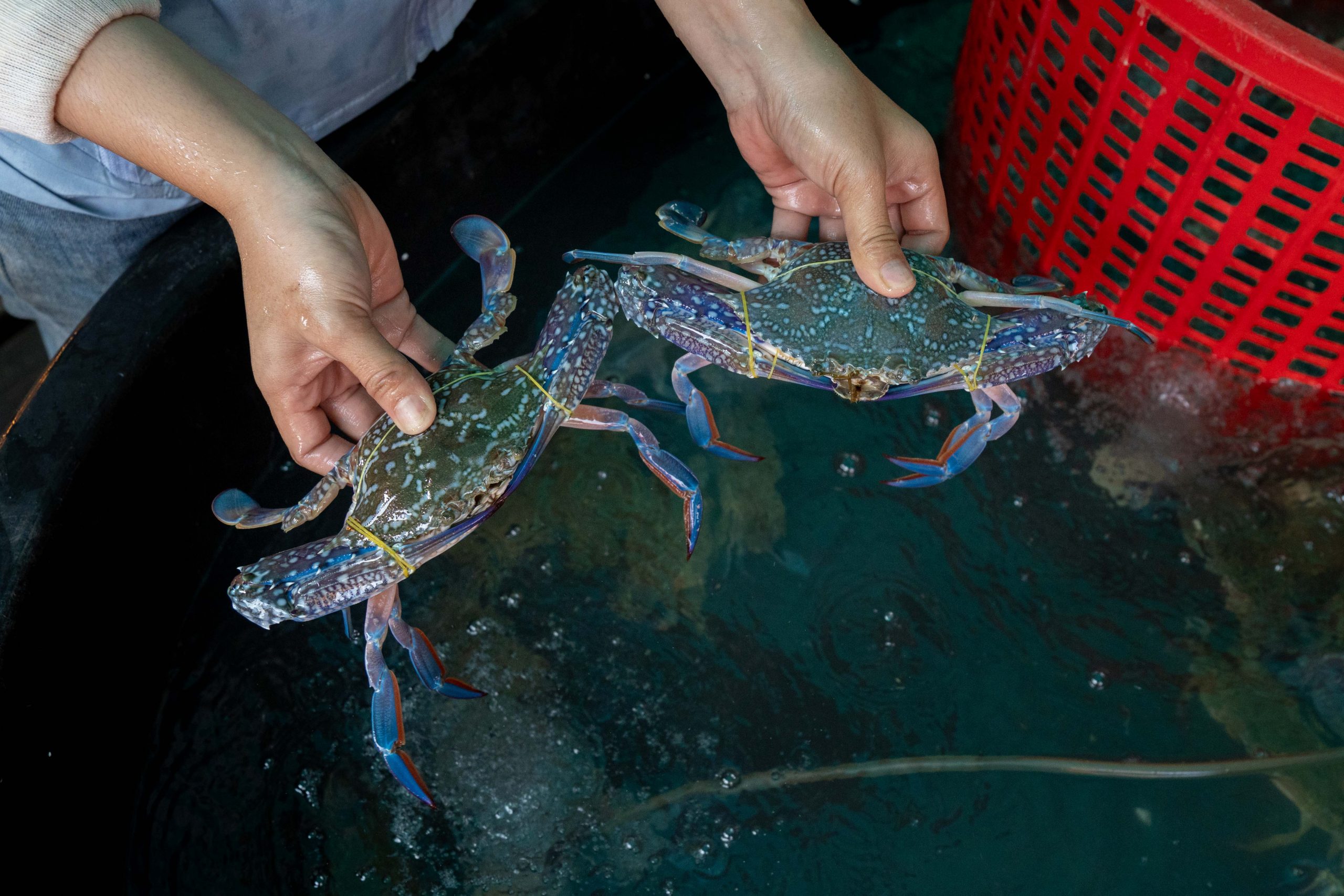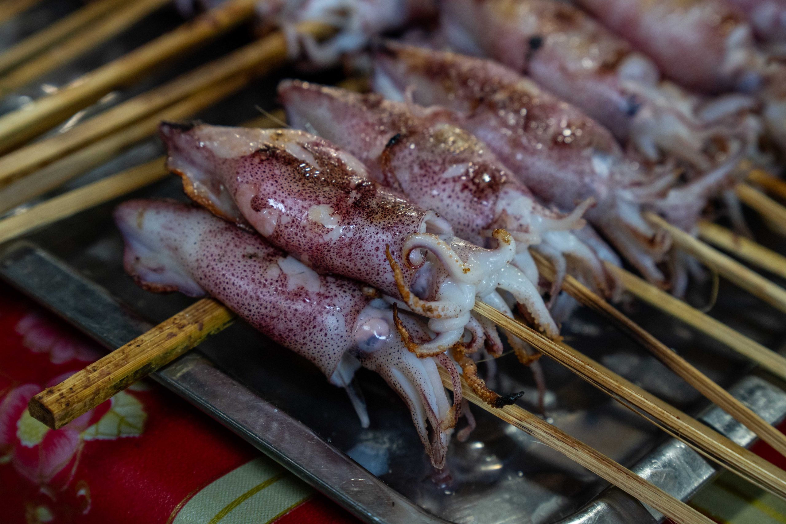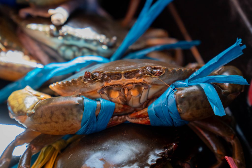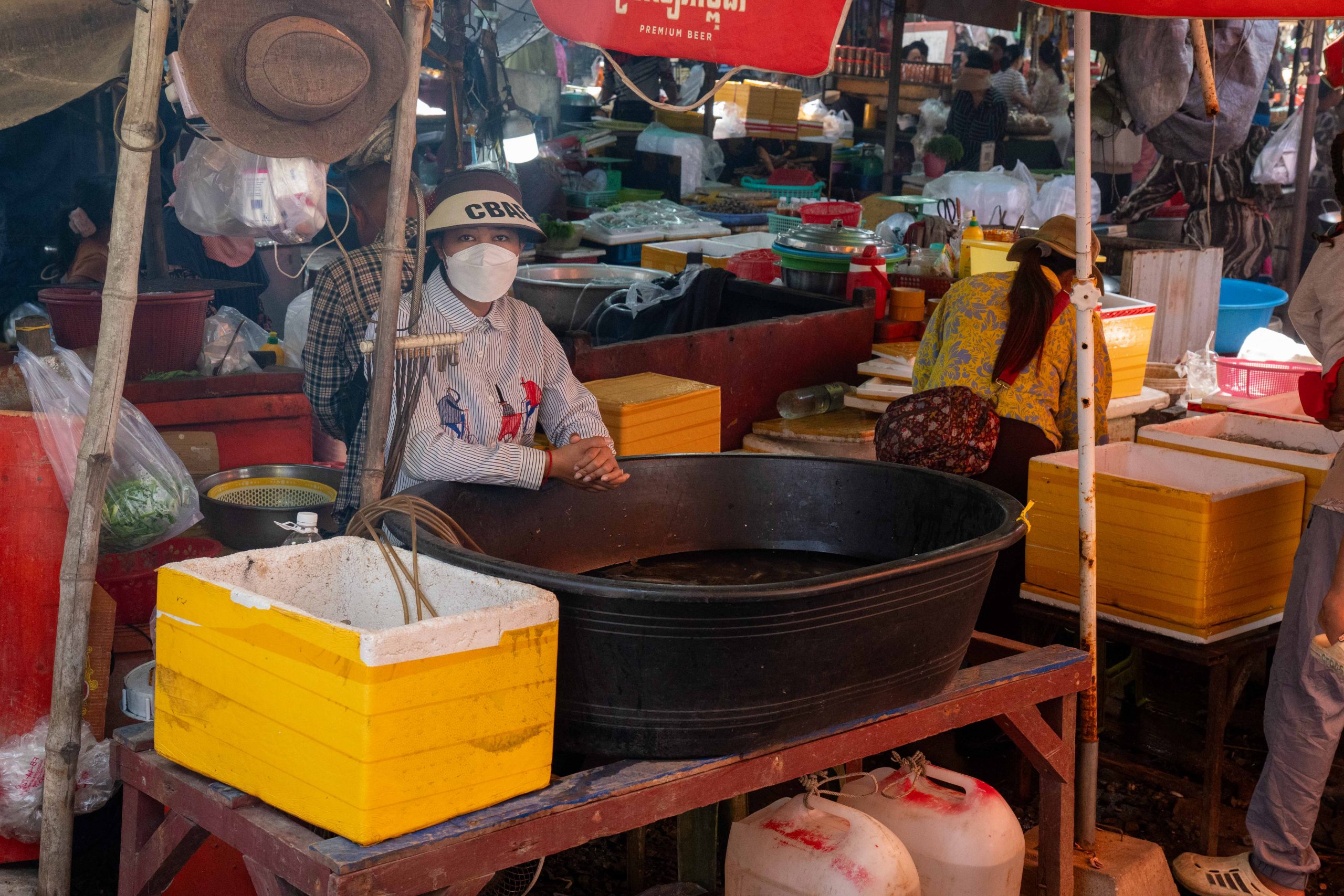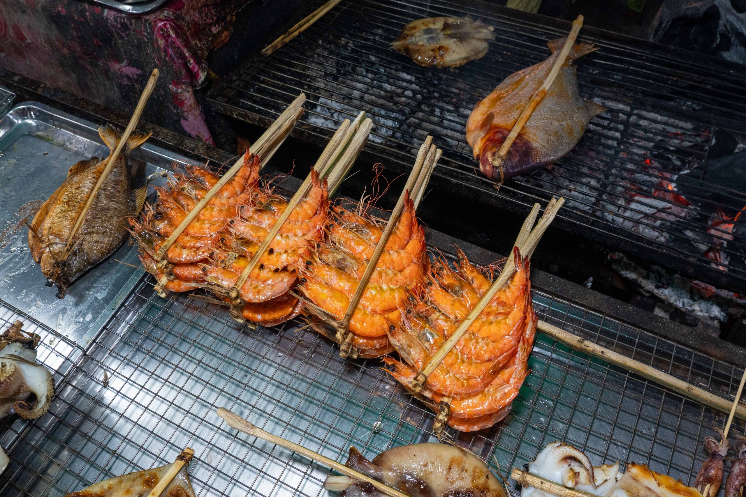 Ich erreichte Sihanoukville und nahm einen Bus nach Kampot, die letzte Station auf meiner Reise. Die kleine Stadt liegt an einem Fluss, und ganz in der Nähe befindet sich das Meer. Nun fühlte es sich schon nach Abschied an. Ich trauerte der Insel hinterher und machte mich widerwillig, aber pflichtbewusst auf den Weg, Kampot und Umgebung zu erkunden. Mit dem Motorroller fuhr ich nach Kep, einer kleinen Stadt in der Nähe. Dort gibt es einen Krabbenmarkt. Der begeisterte mich dann doch. Unter den bunten Dächern von Schirmen und Zelten reihten sich die Stände der Verkäufer aneinander. Auf Tischen und Kisten stapelten sich Krebse und Fische. Die konnte man kaufen und auch direkt vor Ort zubereiten lassen. Der Markt war völlig vernebelt vom Rauch der Grills.