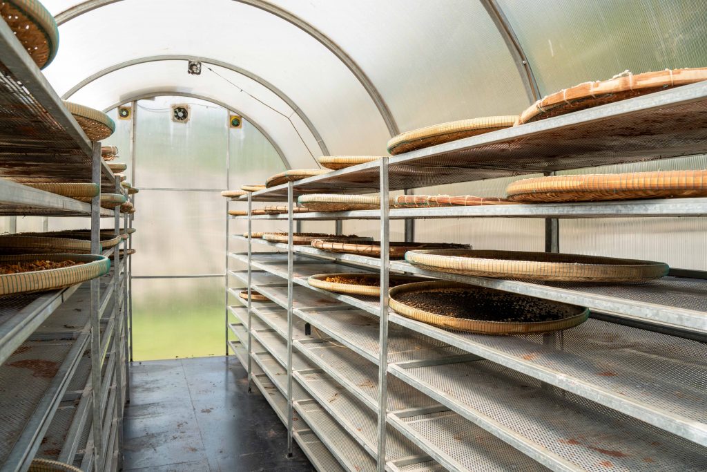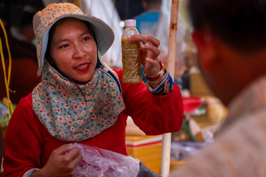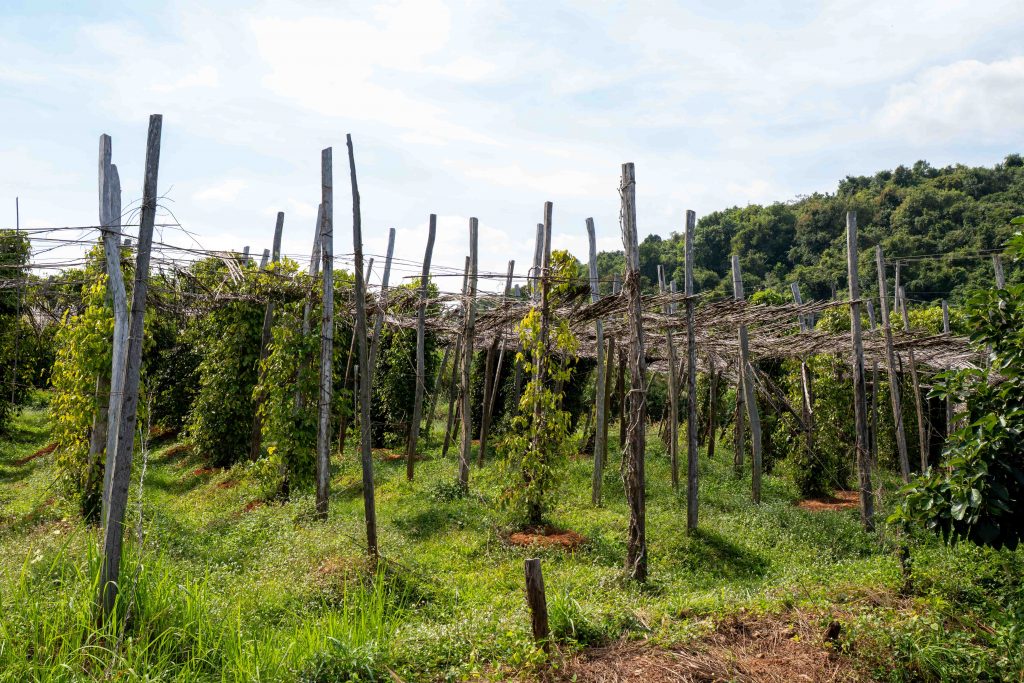 Stolz zeigte uns Kim die Felder. Der quarzhaltige Boden in Kombination mit der salzigen Seebrise ermöglicht den einzigartigen Geschmack, so erklärte er. Dazu kommt eine aufwendige Pflege der Pflanzen. Auf Sothys Pfefferfarm wird der Dünger von Hand hergestellt. Die wichtigste Zutat ist Fledermauskot. Es war spannend, in die Geheimnisse der Pfefferwelt einzutauchen. Und von den Herausforderungen zu lernen. Das veränderte Klima tötet viele Pflanzen bereits nach rund 20 Jahren – früher konnten sie oft 30 Jahre alt werden.