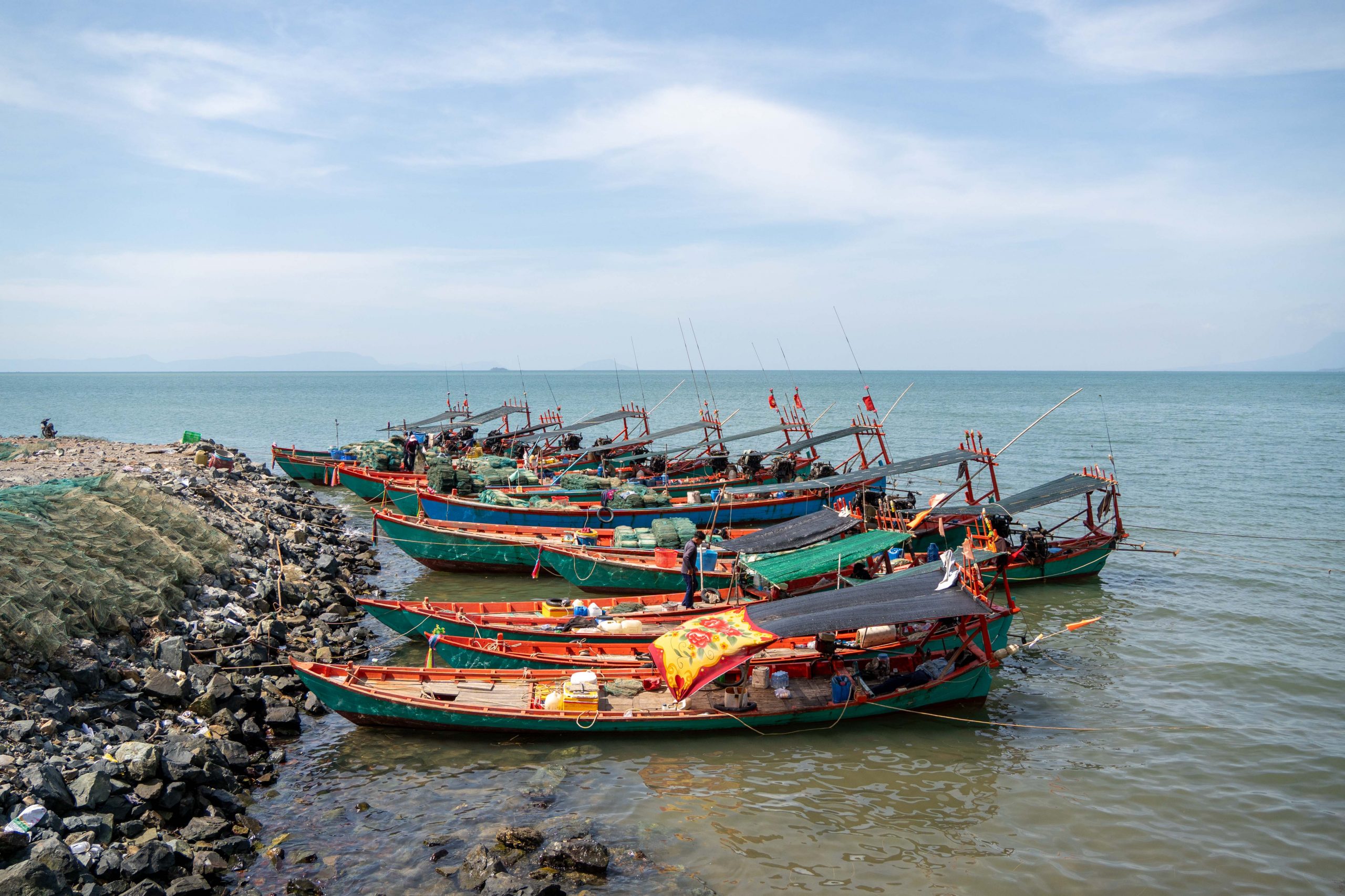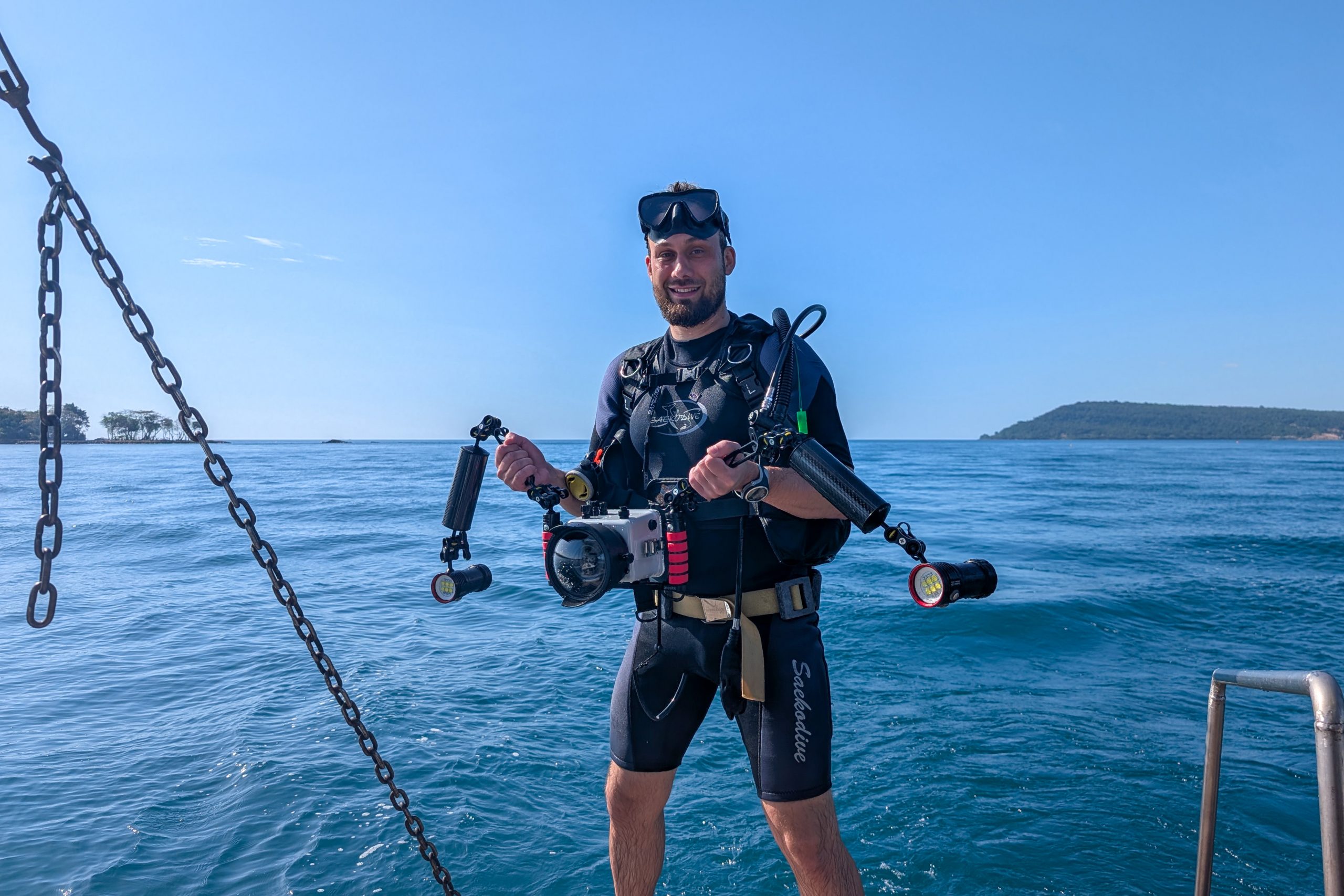 Zum Abschluss meiner Reise durch Kambodscha wollte ich ans Meer. Das Land hat eine 400 Kilometer lange Küstenlinie am Golf von Thailand. Den westlichen Teil musste man Ende Dezember jedoch meiden, weil sich der Grenzkonflikt mit Thailand zuspitzte. Ich wollte vor allem tauchen – und hatte extra meine große Unterwasserkamera im Gepäck. Ich entschied mich für die kleine Insel Koh Rong Sanloem.