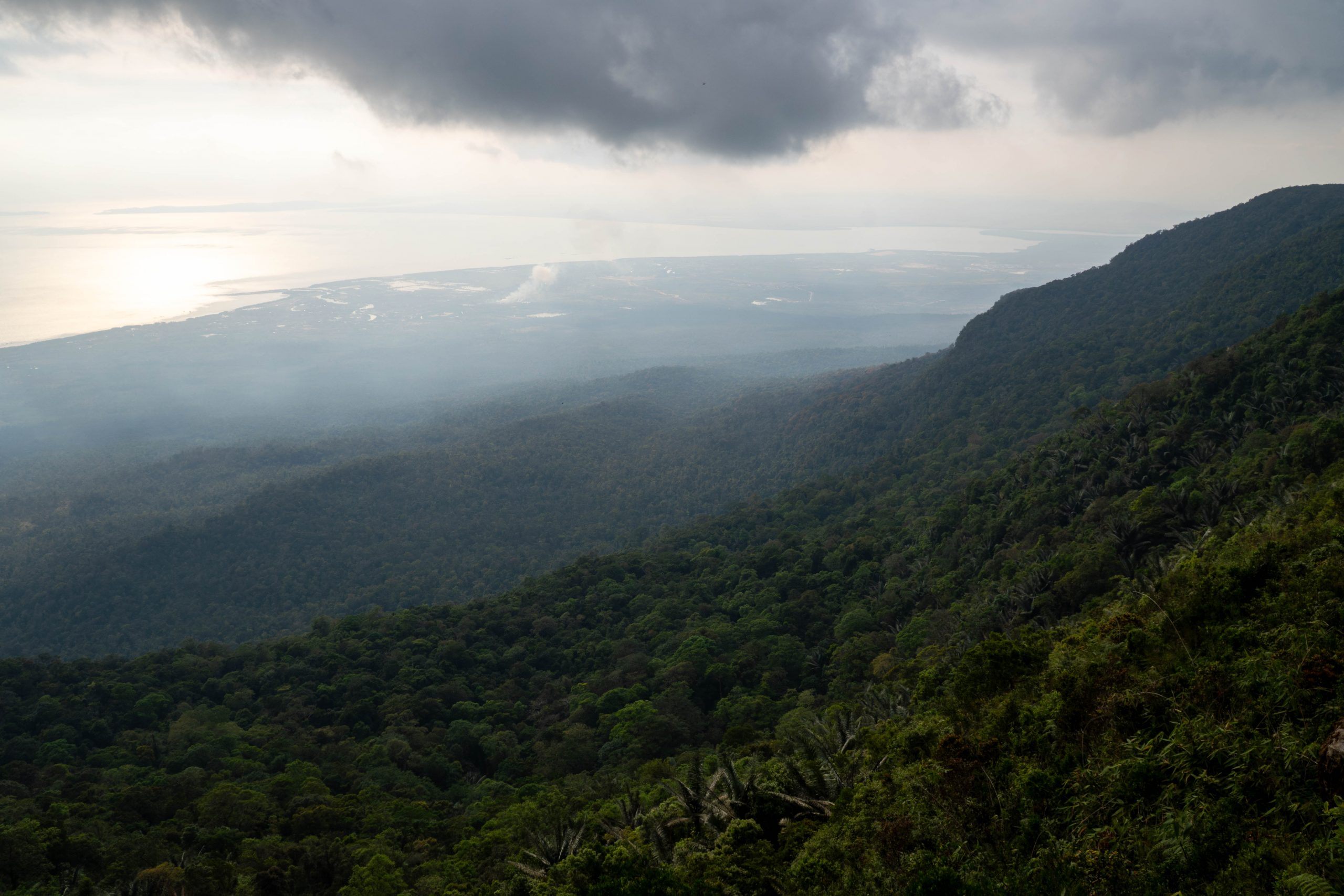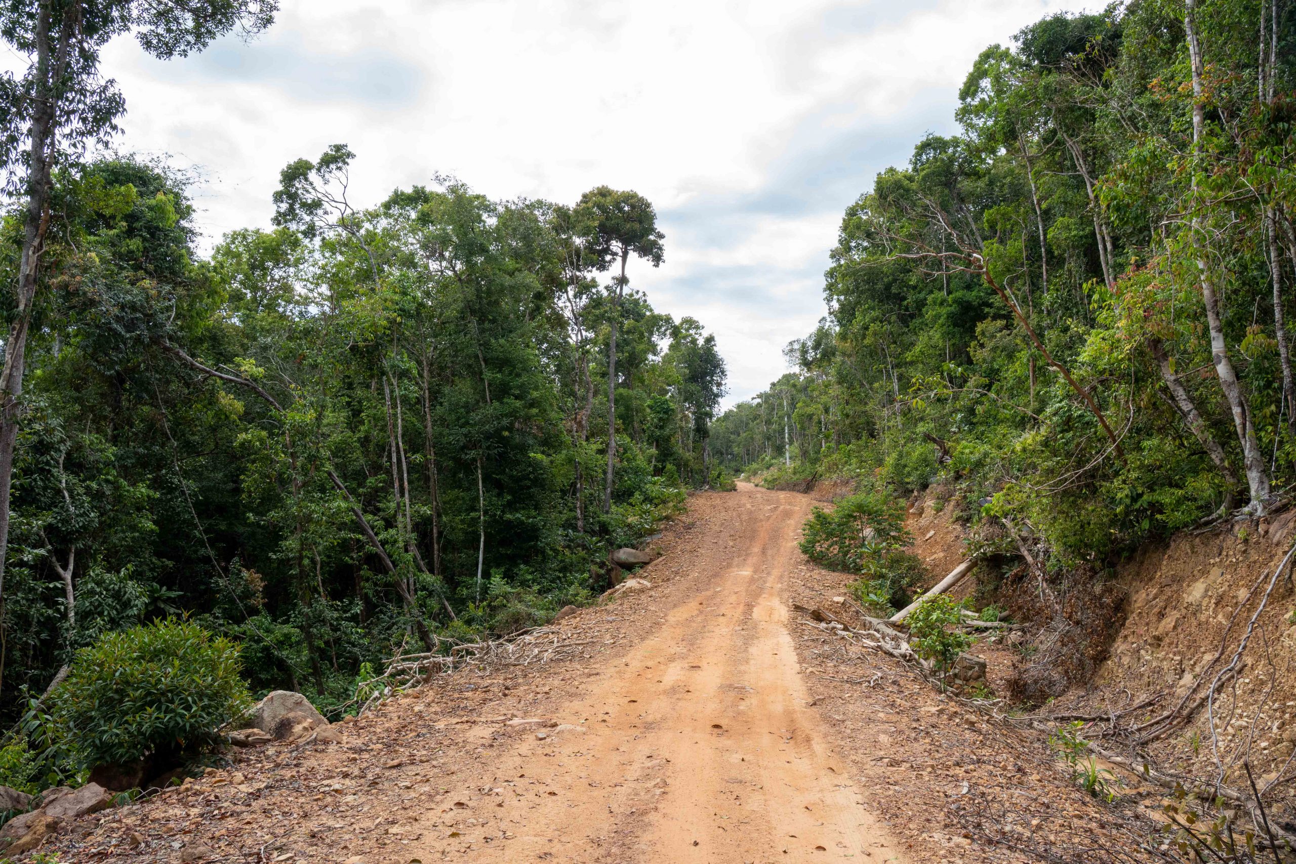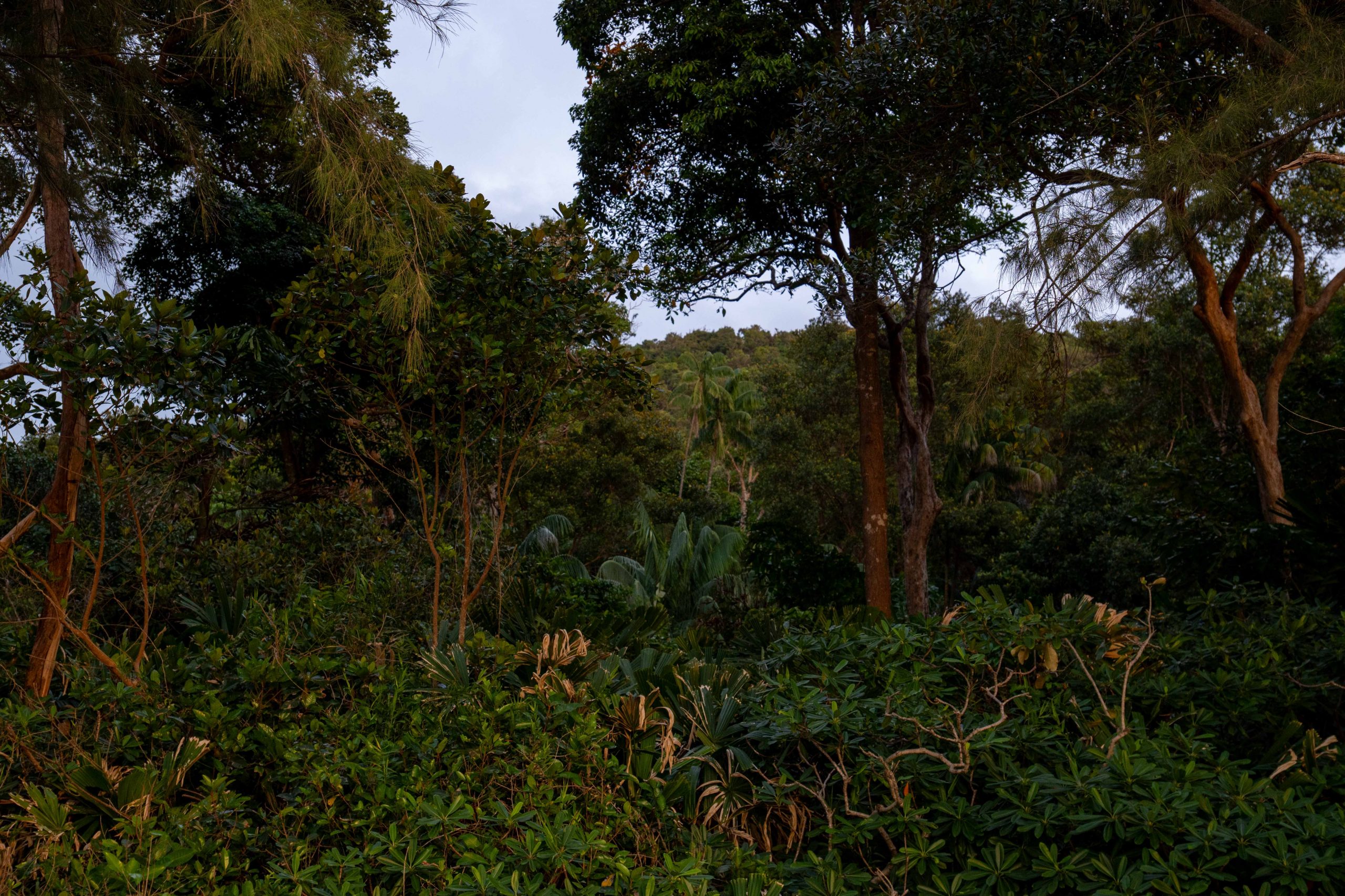 Am nächsten Tag wurde ich dann aber doch unruhig und so machte ich mich auf den Weg zur anderen Seite der Insel. Ein schmaler Pfad führt dorthin. Im Wald wurde ich von Moskitos verfolgt. Doch nach einer halben Stunde entdeckte ich breite Wege, die in den dichten Wald geschlagen wurden. Beginnt auch hier die Abholzung? Ich weiß es nicht. Kurz darauf erreichte ich Saracen Bay. Das ist der touristischste Ort der Insel. Fischer sucht man hier vergeblich, doch Häuser gibt es viele. Hotels, Resorts, Bungalows und Hostels reihen sich aneinander. Sogar ein Supermarkt steht am Strand. Hunderte Touristen saßen auf den Liegen im Sand und zogen lange Gesichter. Denn das Meer wütete. Ein Sturm peitschte die Wellen über den Sand. Es war kalt, grau und ungemütlich. Nach einigen Minuten trat ich den Rückzug an. Auf meiner Seite der Insel war alles friedlich und das Meer spiegelglatt. Die hohe Bergkette im Inneren der Insel hält den Wind wohl sehr gut zurück.
