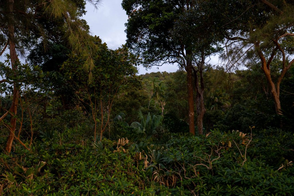 Nach zwei Tagen unter Wasser wollte ich noch andere Ecken der Insel erkunden. Auf der Südseite liegt der Sunset Beach. Der Strand ist von Dschungel umgeben und kann nur mit dem Boot oder durch eine mühsame Wanderung über einen Bergkamm erreicht werden. Ich entschied mich für ein kleines Motorboot, das mich von M’Pai Bay zum Sunset Beach brachte. Ich schleppte meinen riesigen Rollkoffer über den Sandstrand. Sunset Beach war eine eigene kleine Welt: ein Streifen aus Sand zwischen wogenden Wellen und einer dichten grünen Wand des steilen Bergwaldes. Ein paar wenige Häuser standen hier. Ich hatte ein Einzelzimmer in einem kleinen Hotel. Außerdem gibt es noch ein paar Hütten und Zelte, die man mieten kann. Das ist alles. Viel ist hier nicht los, aber genau das ist der Reiz. Zwei Nächte und einen Tag lang wollte ich bleiben. Baden, den Strand hinauf und hinunterlaufen, im Sand liegen, den Sonnenuntergang beobachten. Mehr gab es nicht zu tun. Und tatsächlich fühlte sich das ganz eigenartig an. Nachdem ich wochenlang in einem hohen Tempo durch das Land gereist war, musste ich erst einmal wieder lernen, mit dem Nichtstun klarzukommen. Ich sprach mit niemandem, denn die anderen Besucher des isolierten Strandes waren in Bücher vertieft oder saßen schweigend im Sand. Es war so still wie in einer Kirche. Doch das ruhige Leben begann, mir Spaß zu machen. Ich sprang immer wieder ins Meer und bestellte viele leckere Mahlzeiten, die ich direkt am Strand verzehren konnte. Es gab deutsches Schnitzel mit Pilzsoße, dazu Dosenbier. Was will man mehr? Am Abend machte der Sunset Beach seinem Namen alle Ehre, als die sinkende Sonne das Wasser glänzend gold färbte.